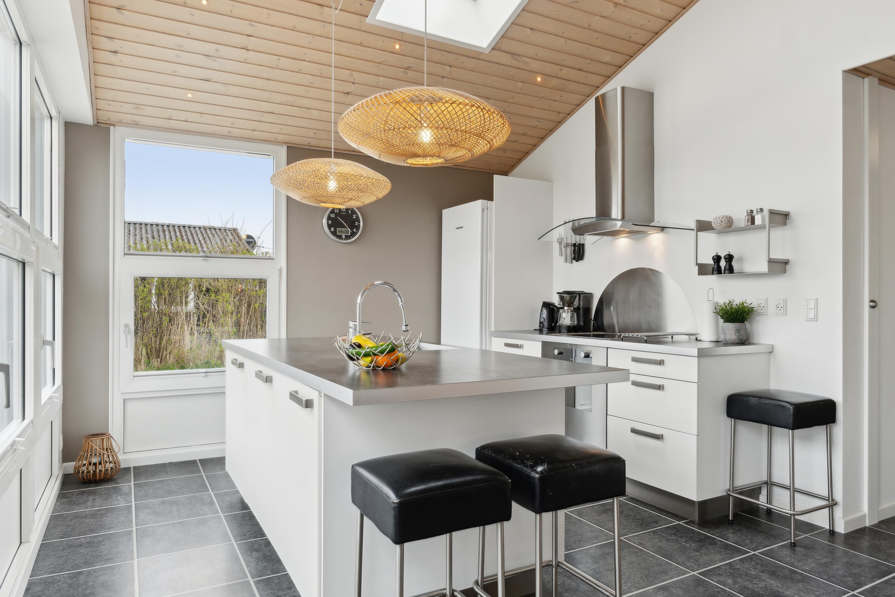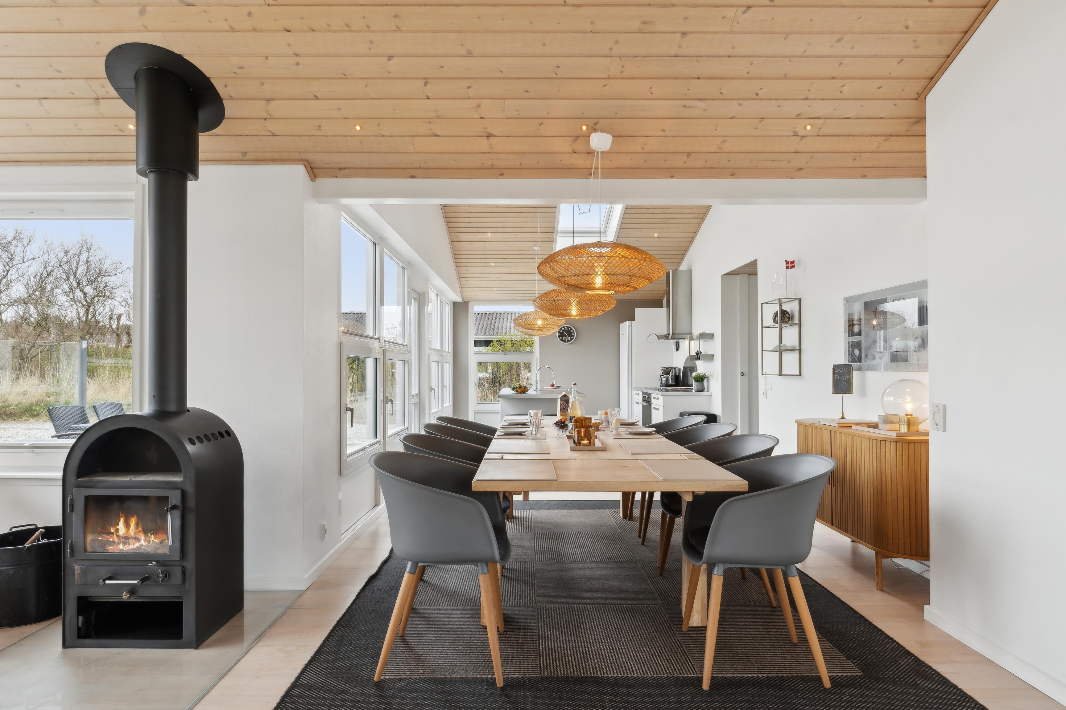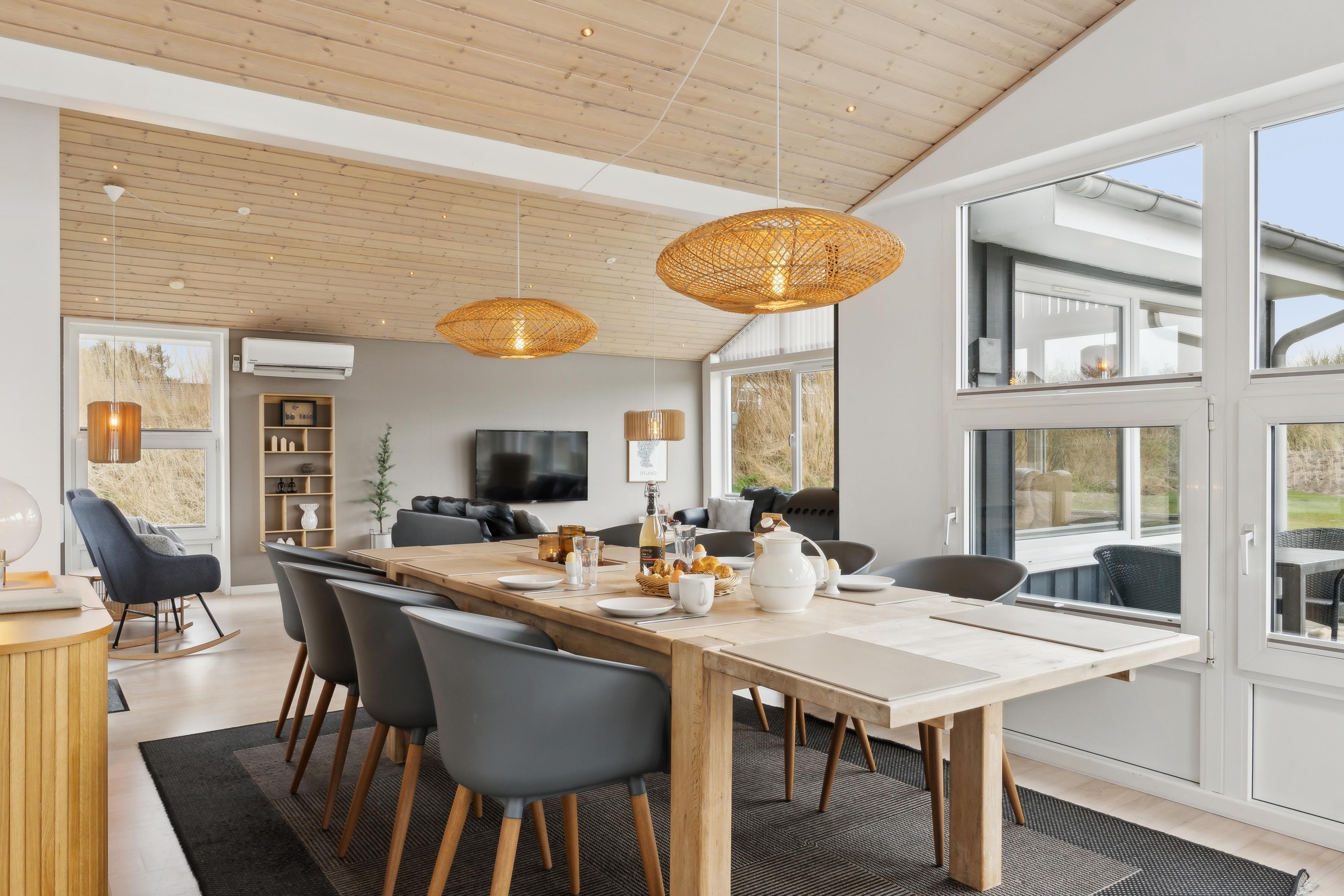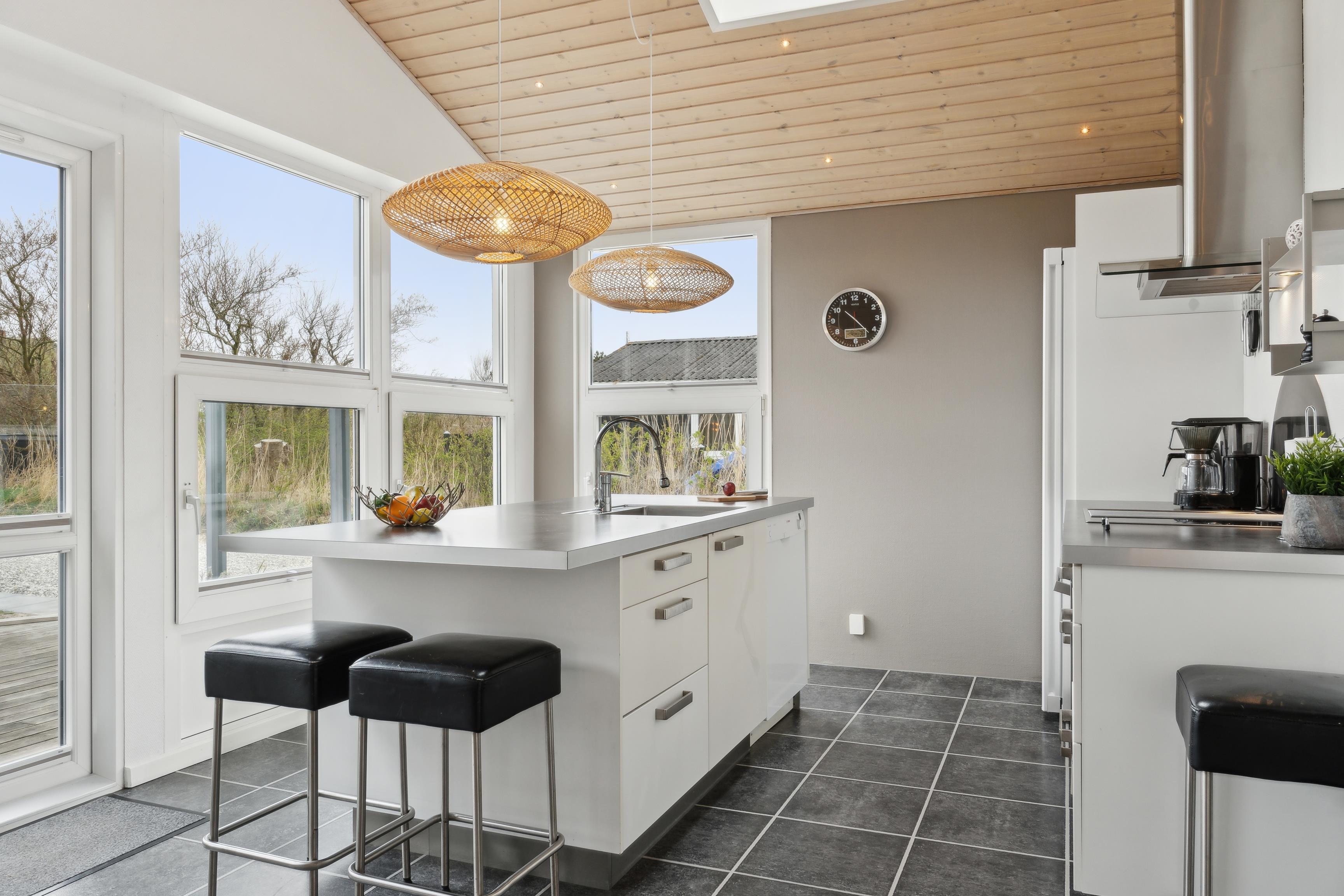 Det velindrettede sommerhus har en varm og indbydende stemning med højt til loftet og store vinduer, der lader lyset strømme ind og skaber en ægte feriefornemmelse.