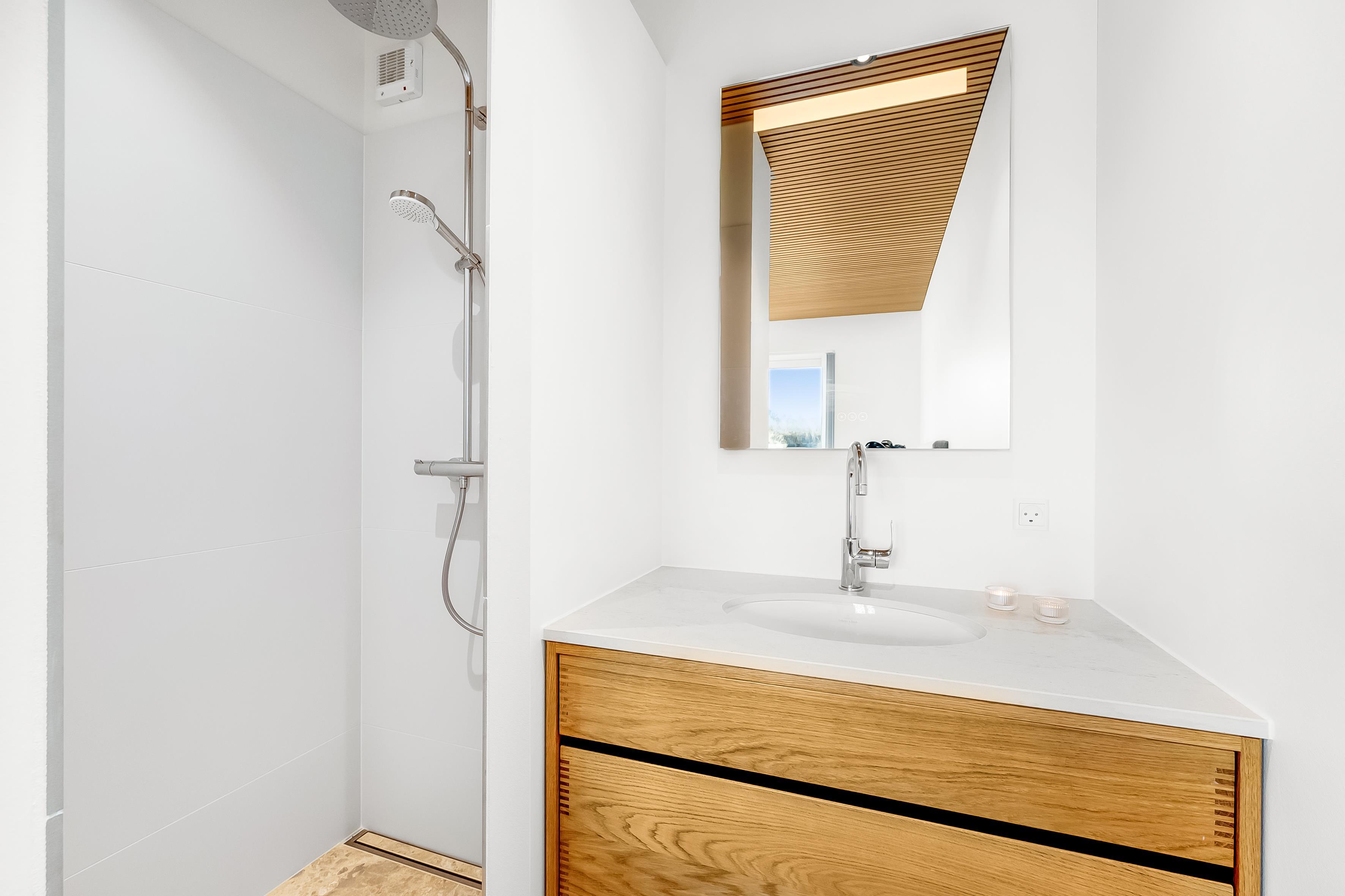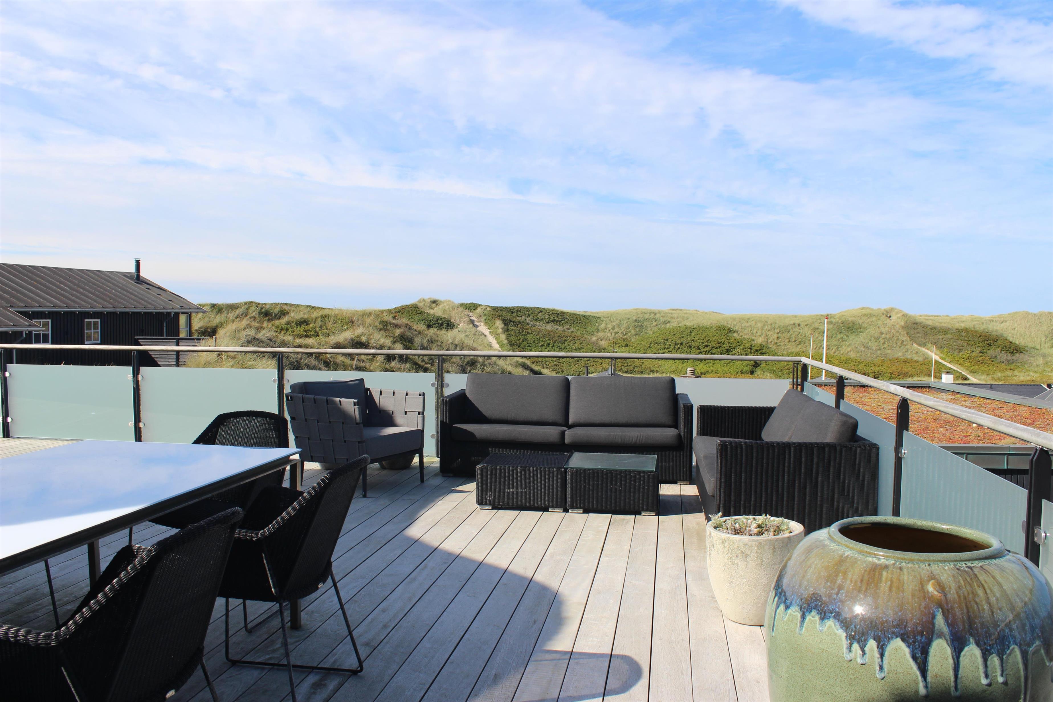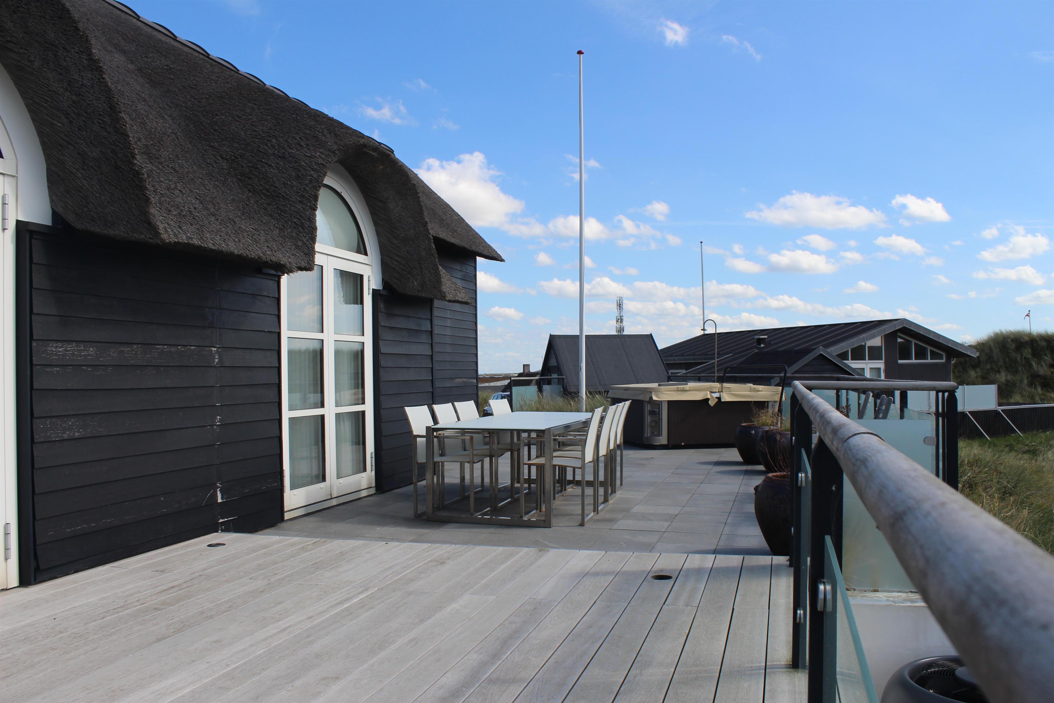Glæd dig til uforglemmelige øjeblikke i det fantastiske udendørs wellness-område, hvor en stor pool, et indbygget spabad og en forfriskende udendørsbruser venter på dig og tilbyder ultimativ afslapning og nydelse. Den enorme træterrasse, der strækker sig over flere niveauer, tilbyder en betagende udsigt over det fantastiske klitlandskab og inviterer dig til at tilbringe lange, afslappende timer udendørs.
