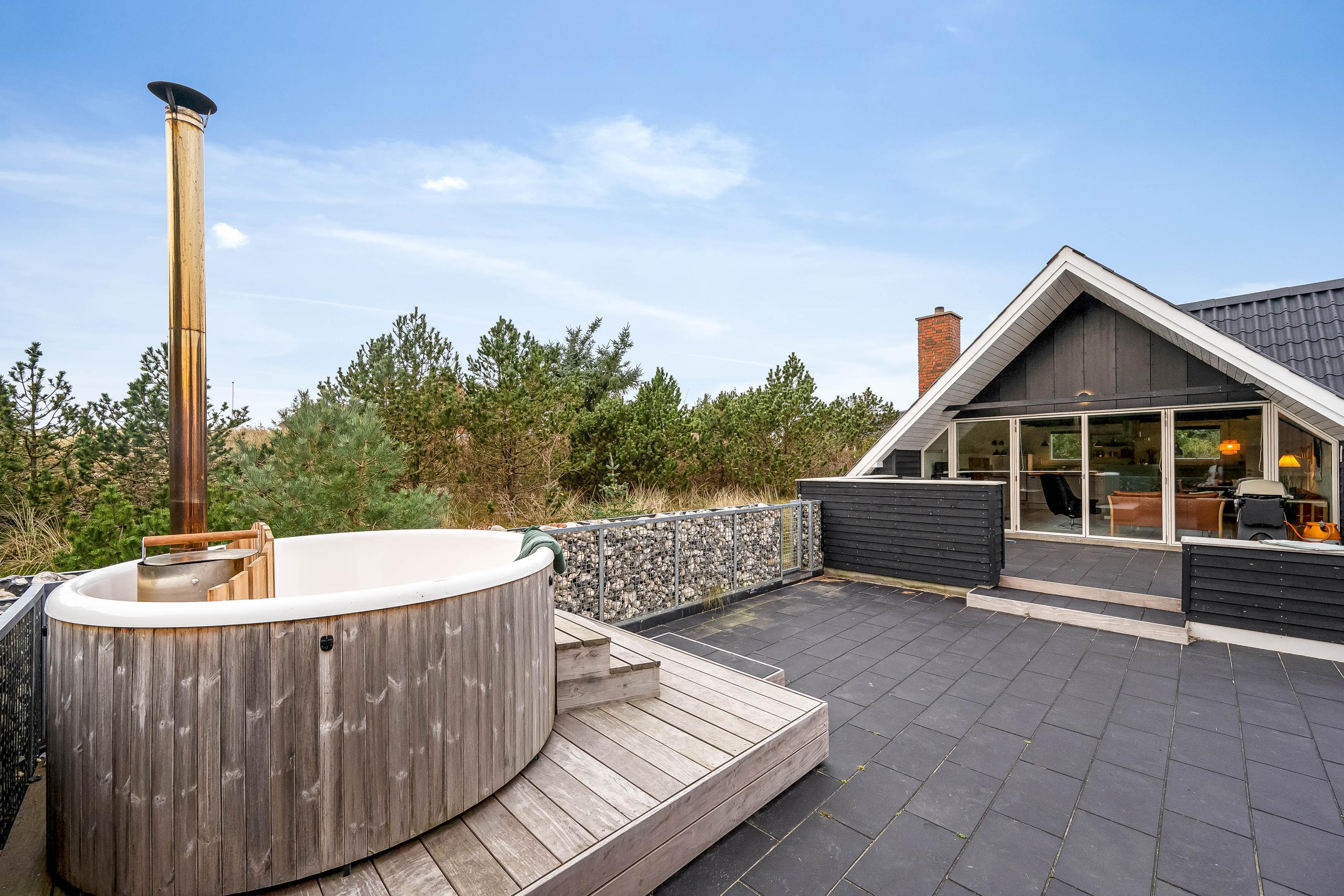 Tag en dyb indånding på den rummelige terrasse, nyd den friske havluft og lyt til naturens lyde. Skab varige minder med en grillfest, og forlæng sommeraftenerne under den overdækkede terrasse i det indbydende, rummelige siddeområde. Men det er ikke alt! Tag en pause fra hverdagen i vores 6-personers spabad, hvor I kan slappe af under stjernerne og lytte til nattens lyde. Fuldend denne unikke oplevelse med et forfriskende udendørs brusebad, inden I vender tilbage til huset og falder i en god søvn.