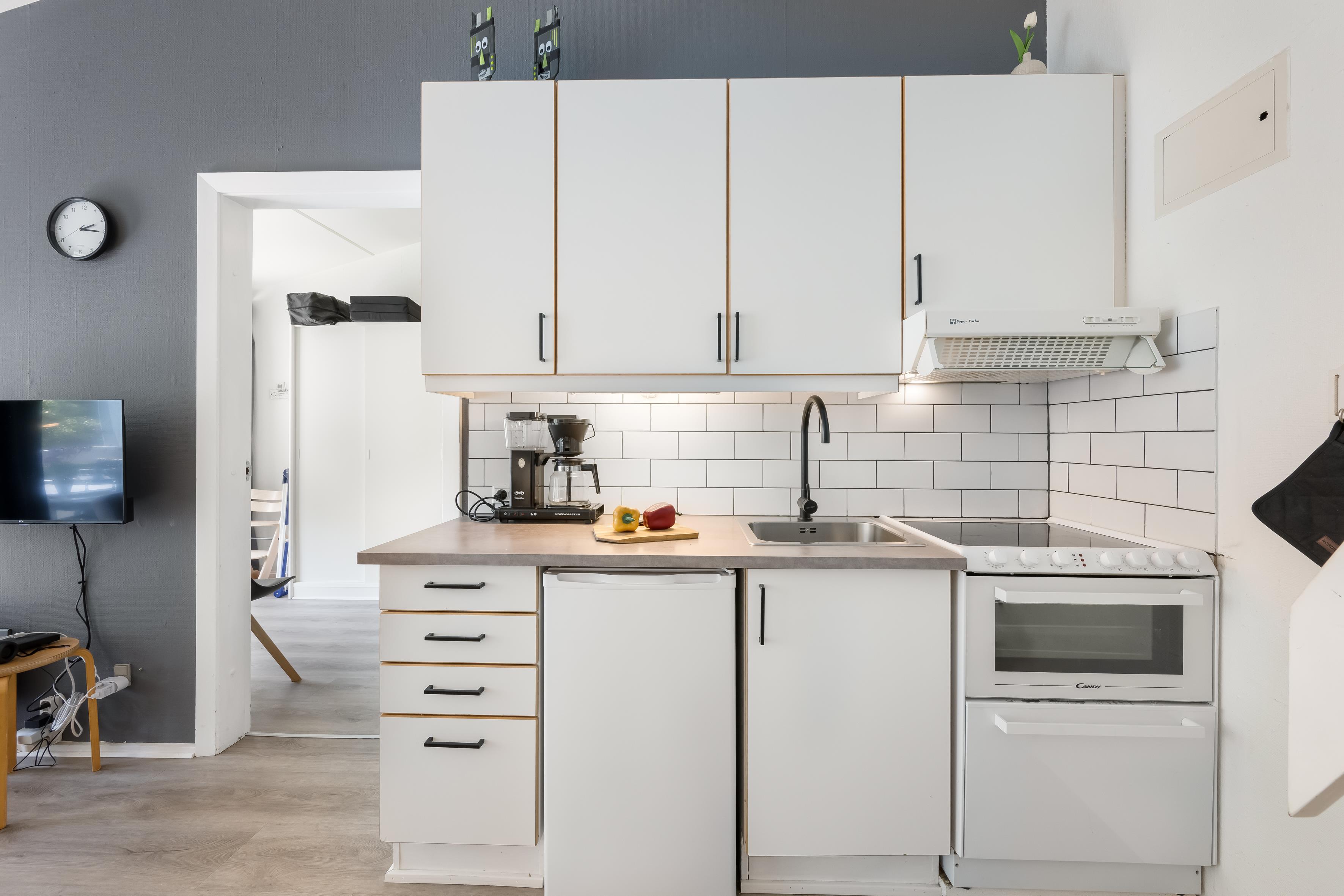 Køkkenet er udstyret med et kølefryseskab, samt et keramisk komfur, med en kombineret ovn og opvaskemaskine, hvilket giver dig mulighed for at tilberede lækre måltider til hele familien. Der er også en kaffemaskine, så du kan starte dagen med en god kop kaffe, og en mikrobølgeovn til de nemme løsninger.
