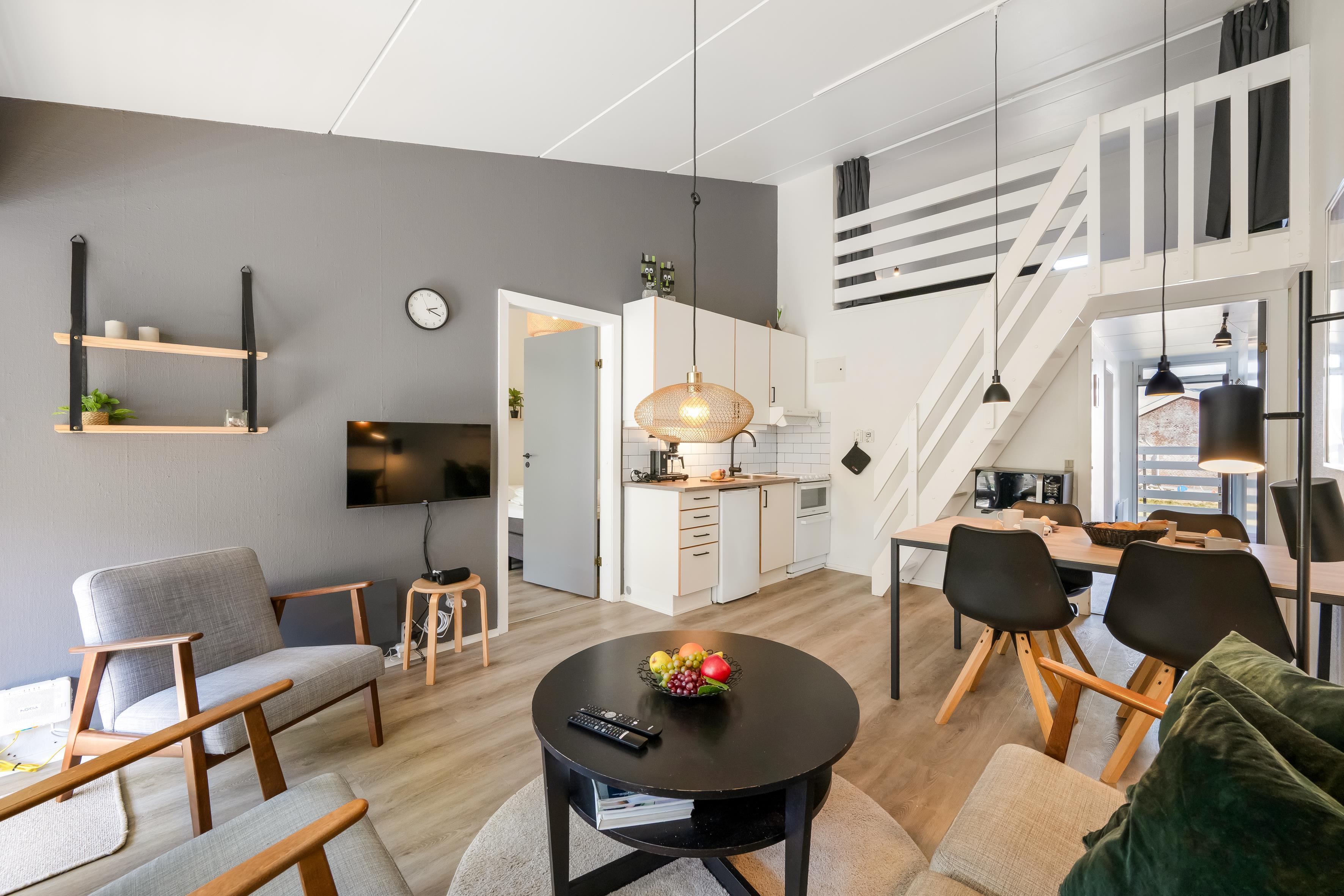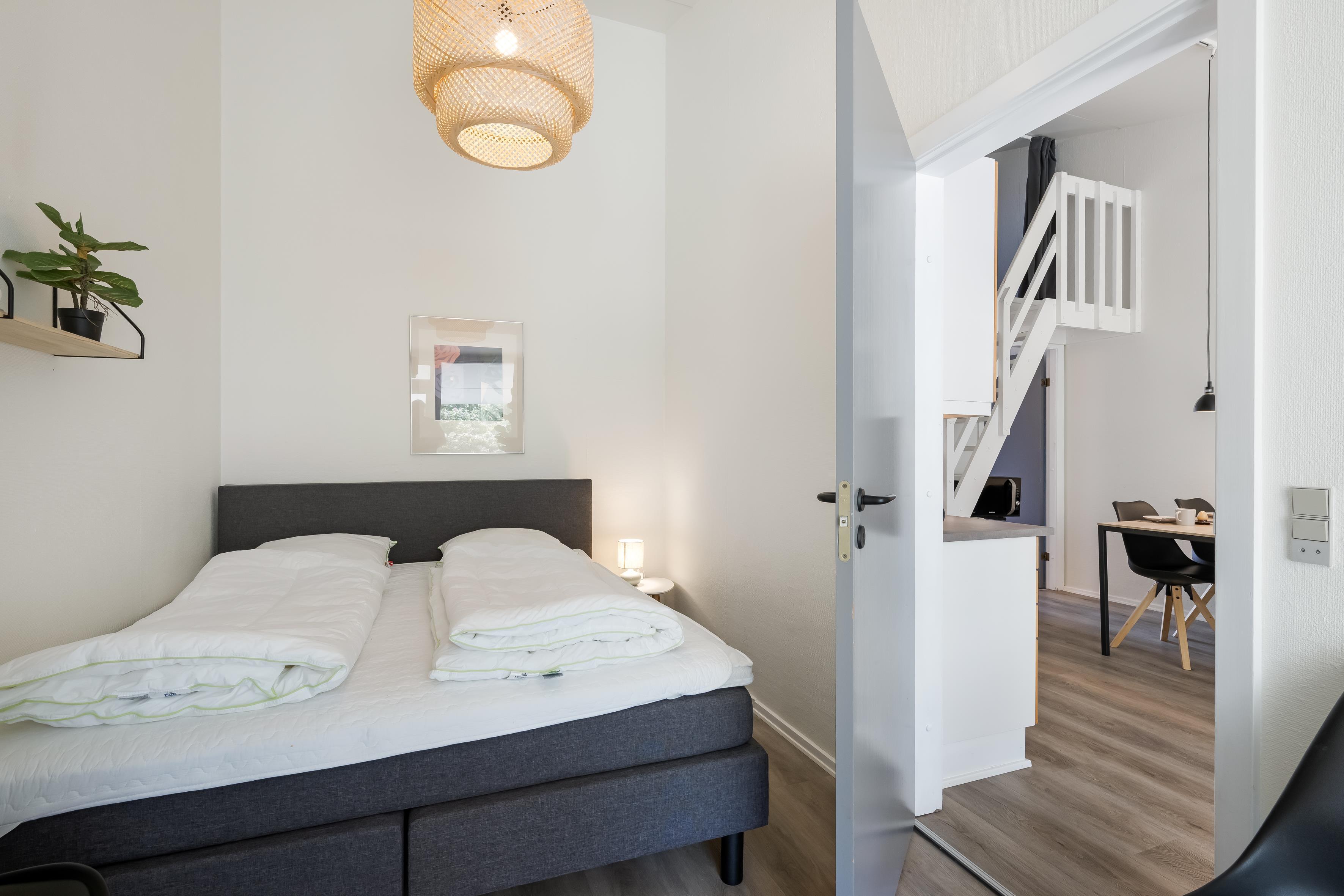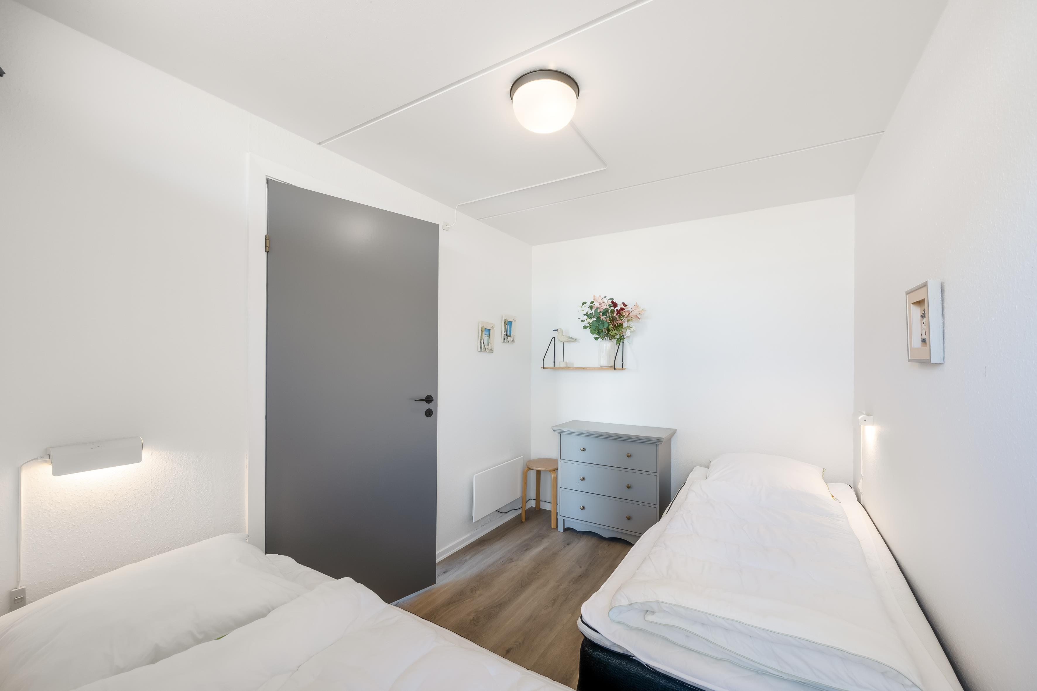 Lejligheden byder på to komfortable soveværelser. Det første soveværelse er udstyret med en dobbeltseng, mens det andet soveværelse har en køjeseng, hvilket gør det ideelt til både par og børn. Der er også en stor hems med en dobbeltseng, hvilket giver plads til to ekstra personer. Med de i alt 6 sovepladser er der rigeligt med plads til hele familien.