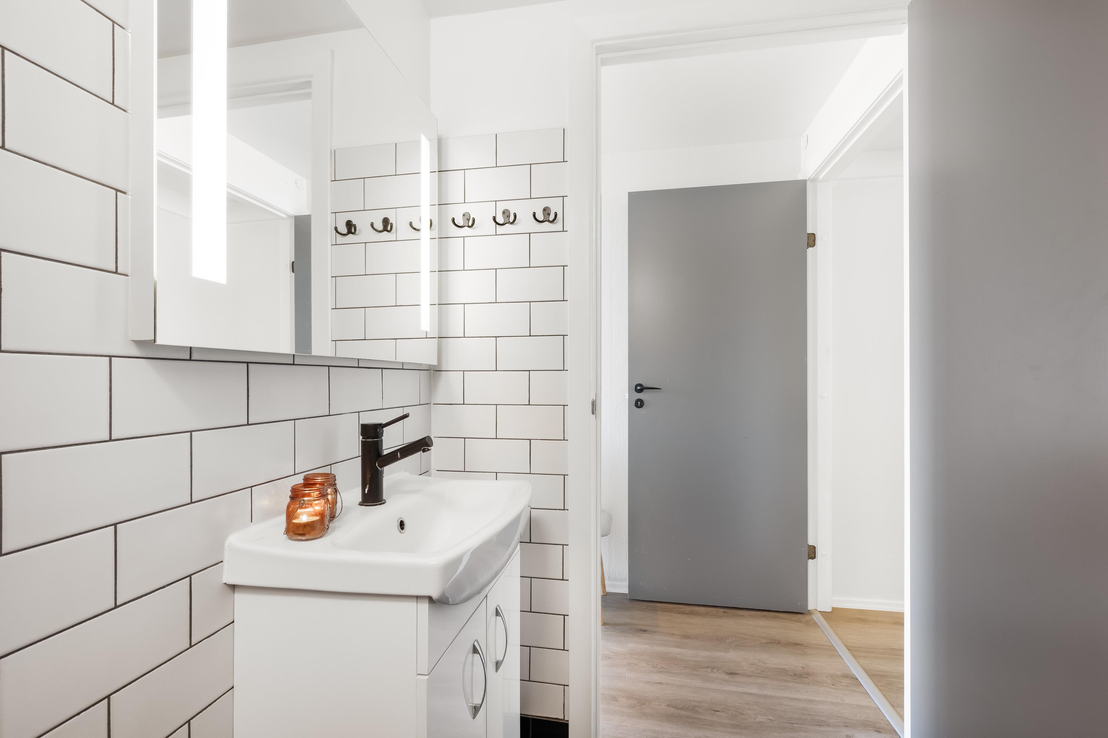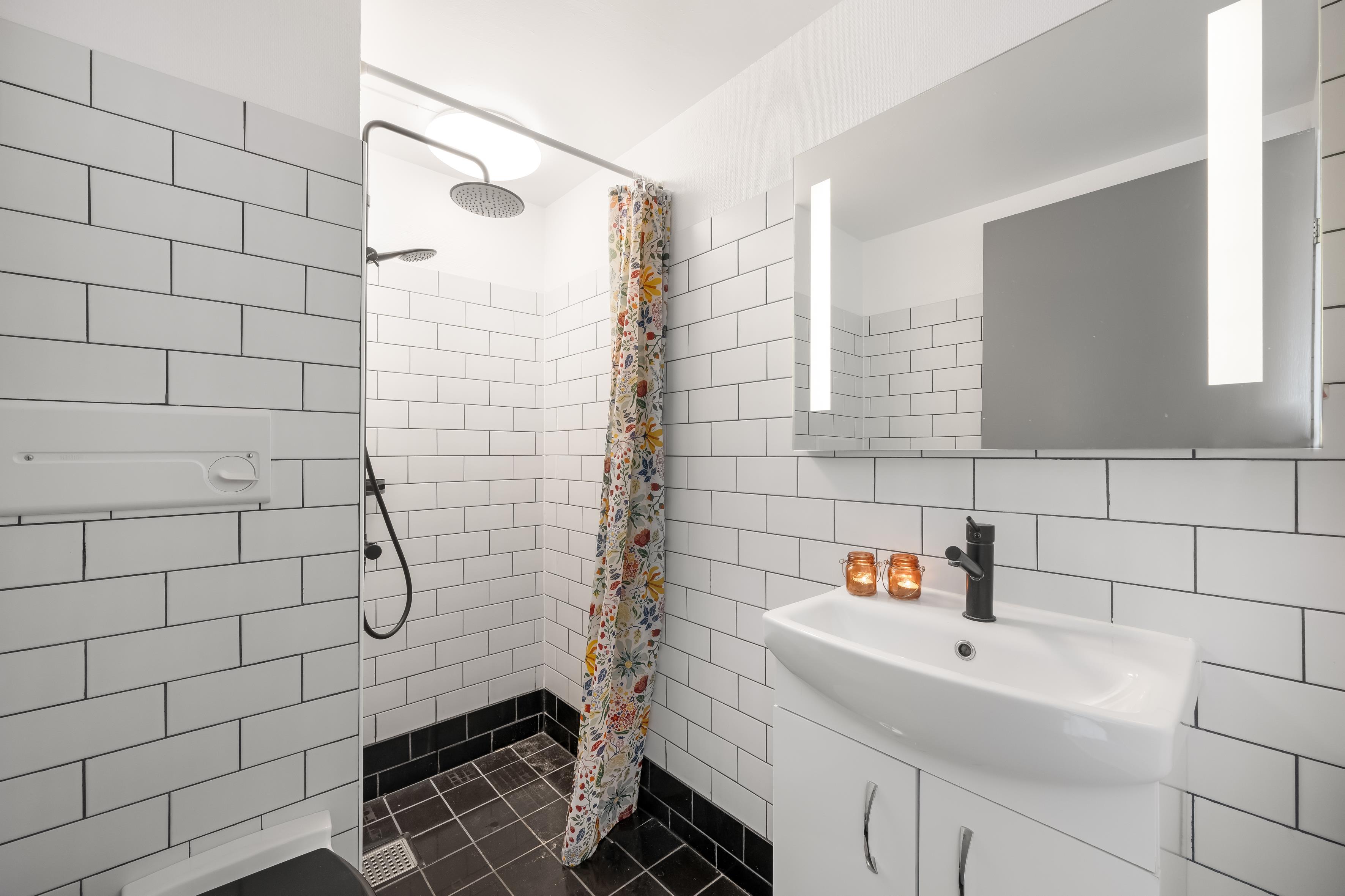 For underholdning er der et fjernsyn med både dansk og tysk TV, samt Chromecast, så du kan streame dine yndlingsprogrammer. Badeværelset er udstyret med gulvvarme, hvilket giver en ekstra komfort, især på køligere dage. Her finder du også en bruser og toilet, hvilket gør det praktisk for hele familien.