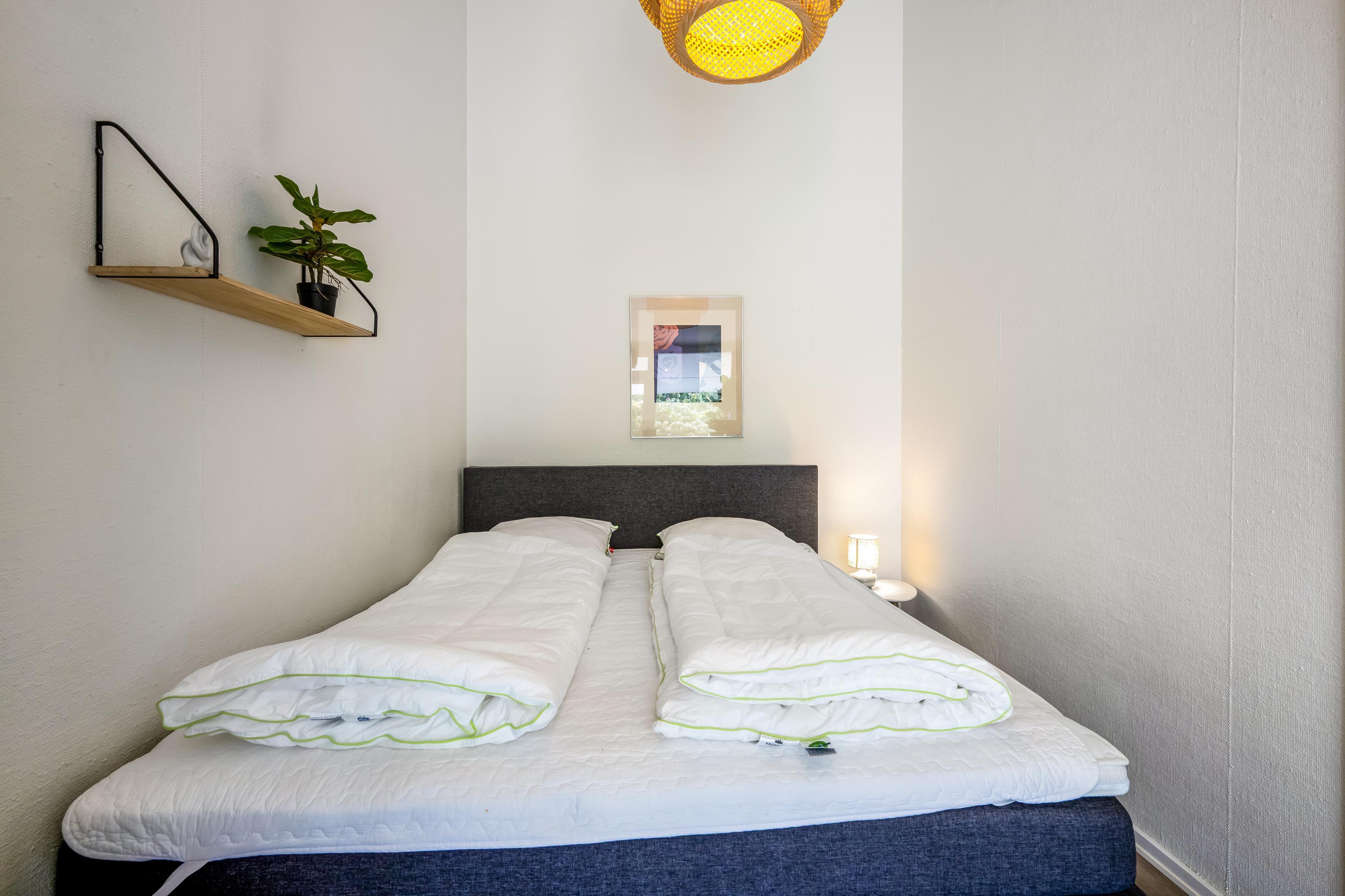 Lejligheden byder på to komfortable soveværelser. Det første soveværelse er udstyret med en dobbeltseng, mens det andet soveværelse har to enkeltsenge, hvilket gør det ideelt til både par og børn. Der er også en stor hems med en dobbeltseng, hvilket giver plads til to ekstra personer. Med de i alt 6 sovepladser er der rigeligt med plads til hele familien.