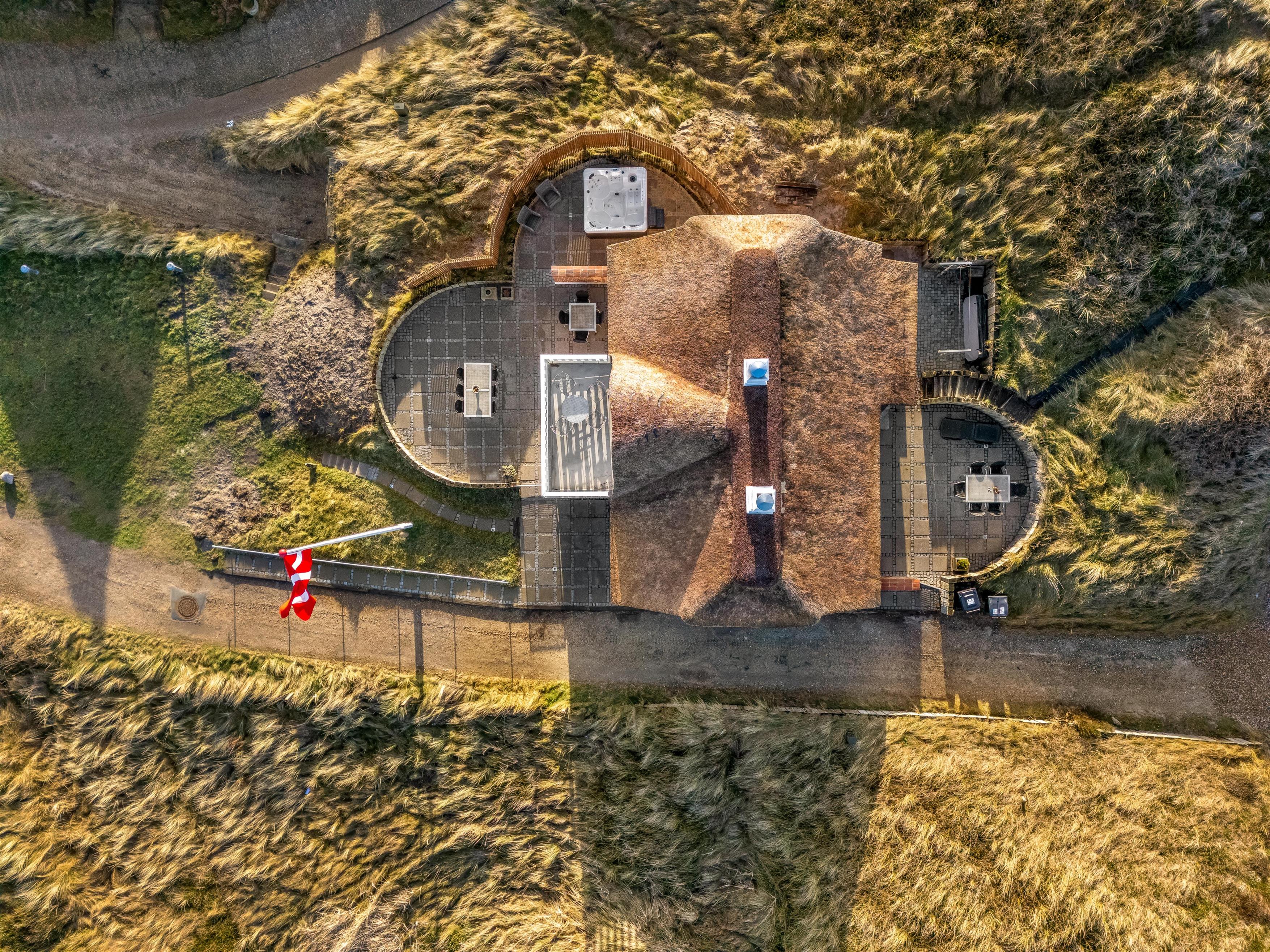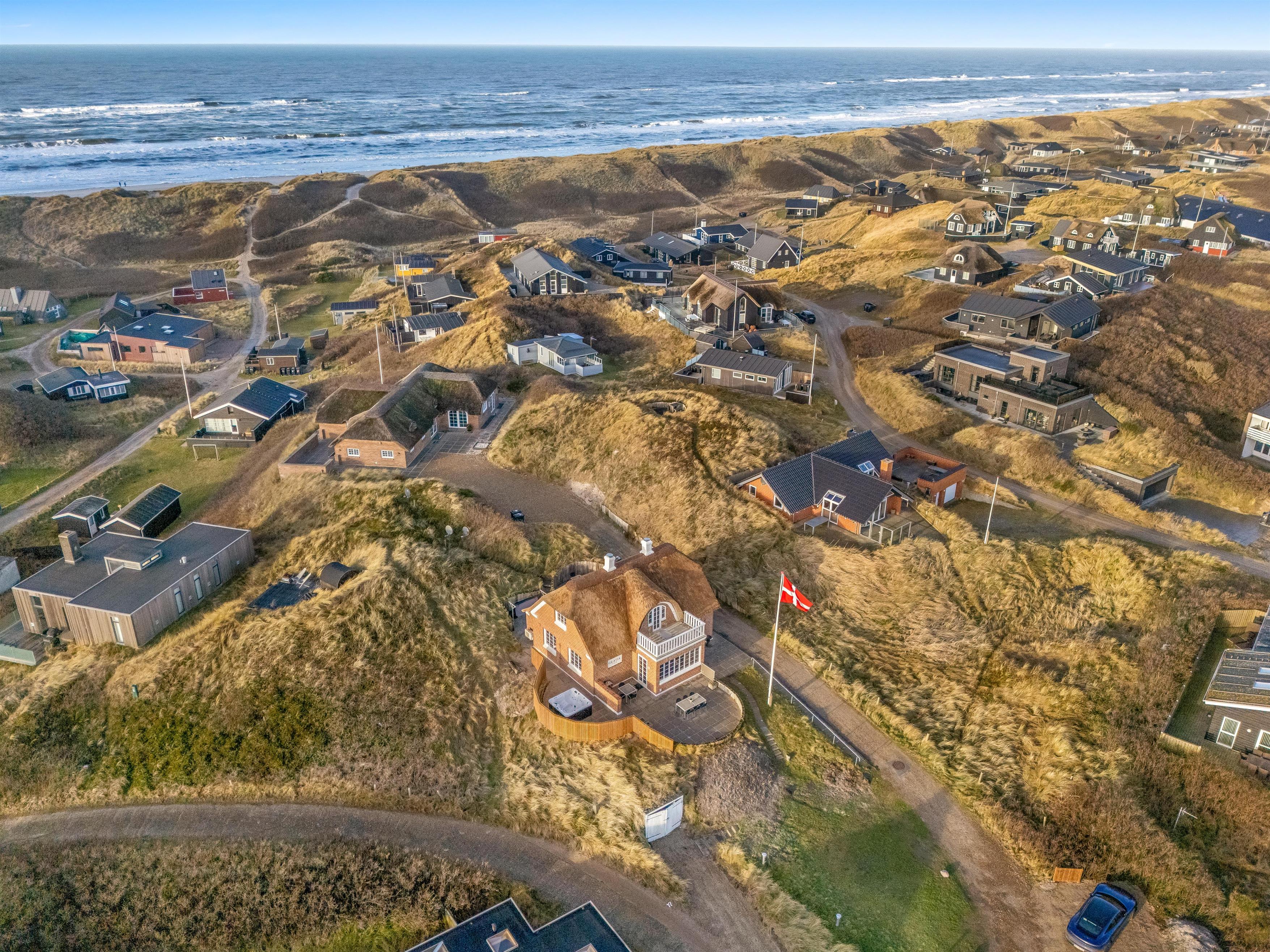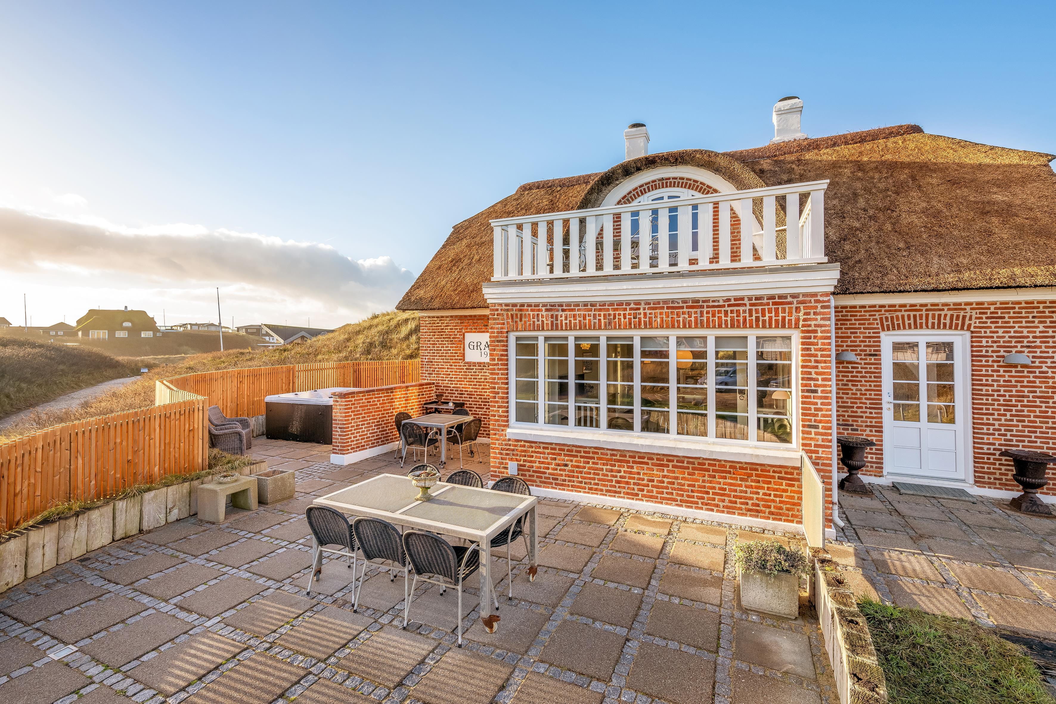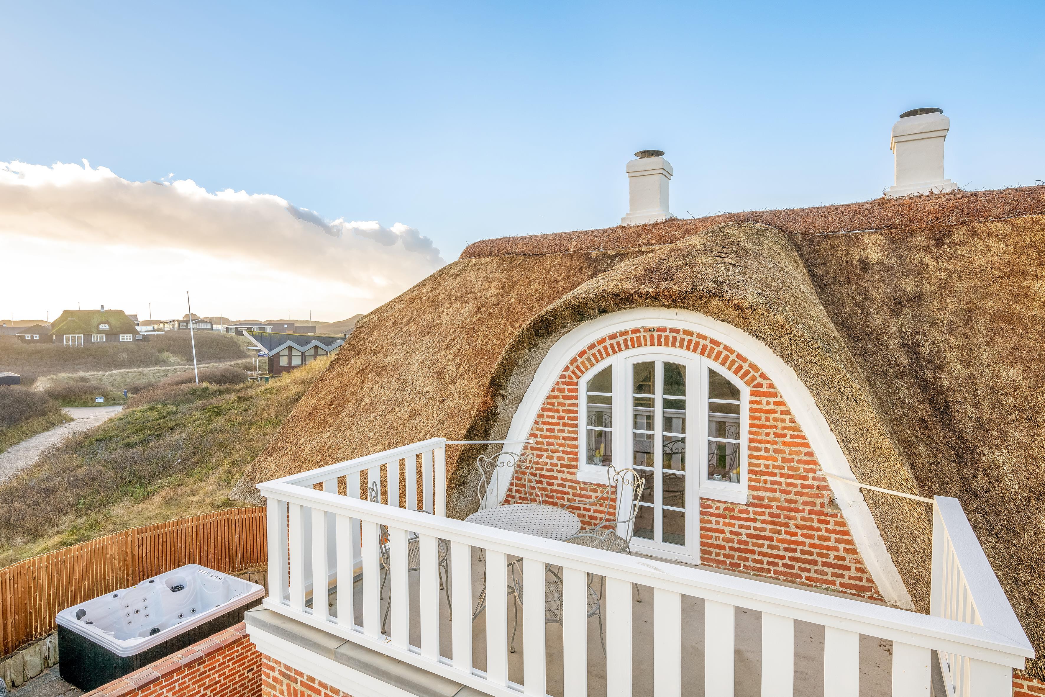 Udenfor kan du nyde den fantastiske udsigt fra balkonen, eller slappe af på den afskærmede terrasse, hvor der også er en grill til rådighed. Det udendørs spa er en ekstra luksus, der kan rumme op til 6 personer, så du kan slappe af under stjernerne efter en lang dag. På den højest beliggende del af husets grund, kan i nyde klitlandskabet og opleve den fantastiske solnedgang.