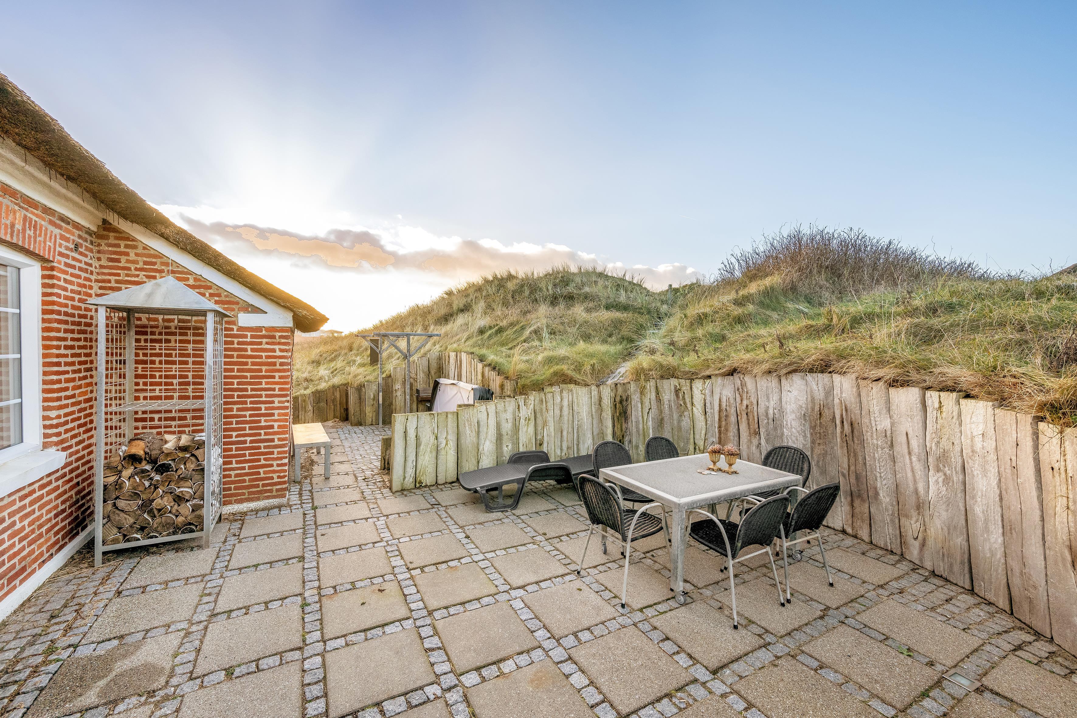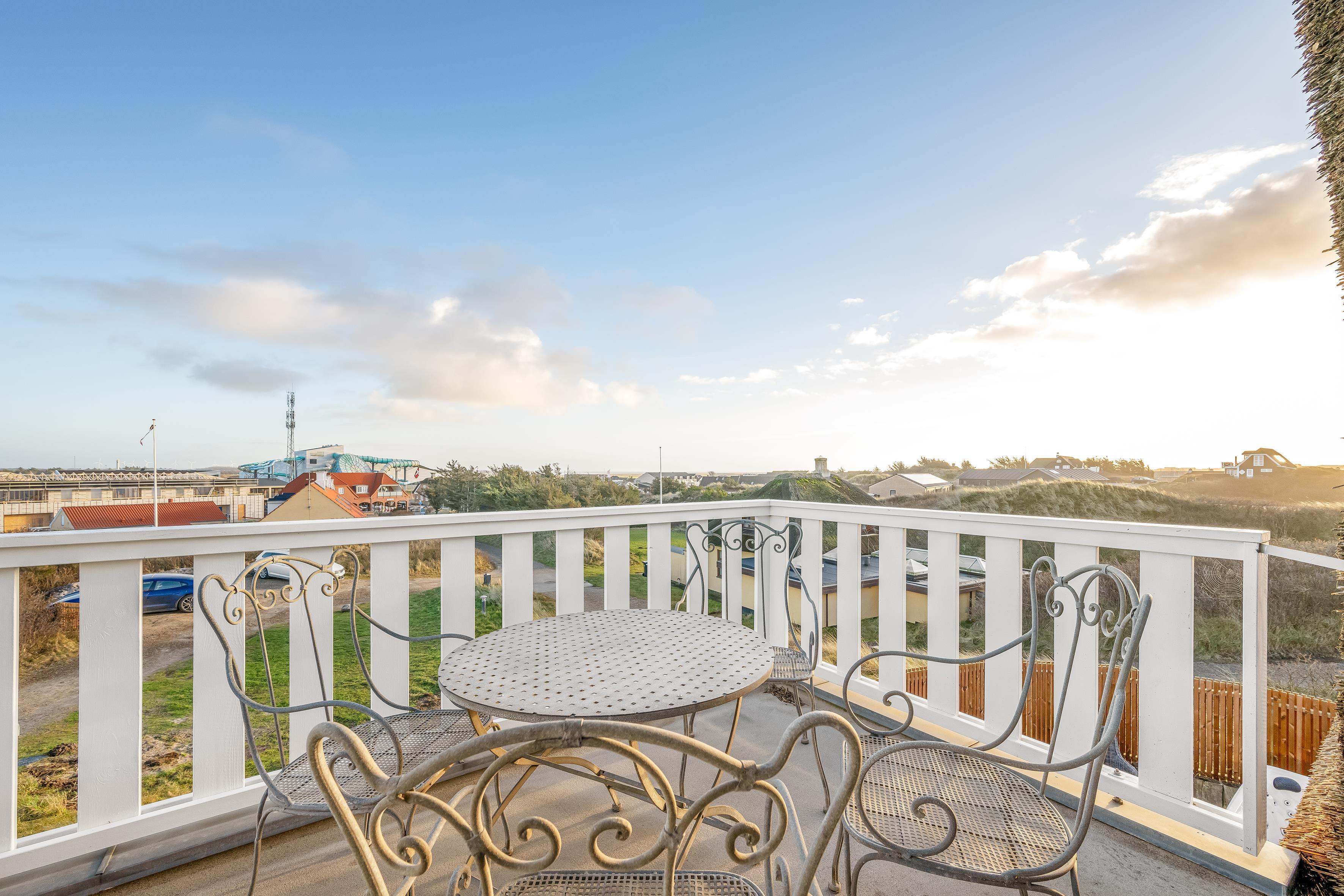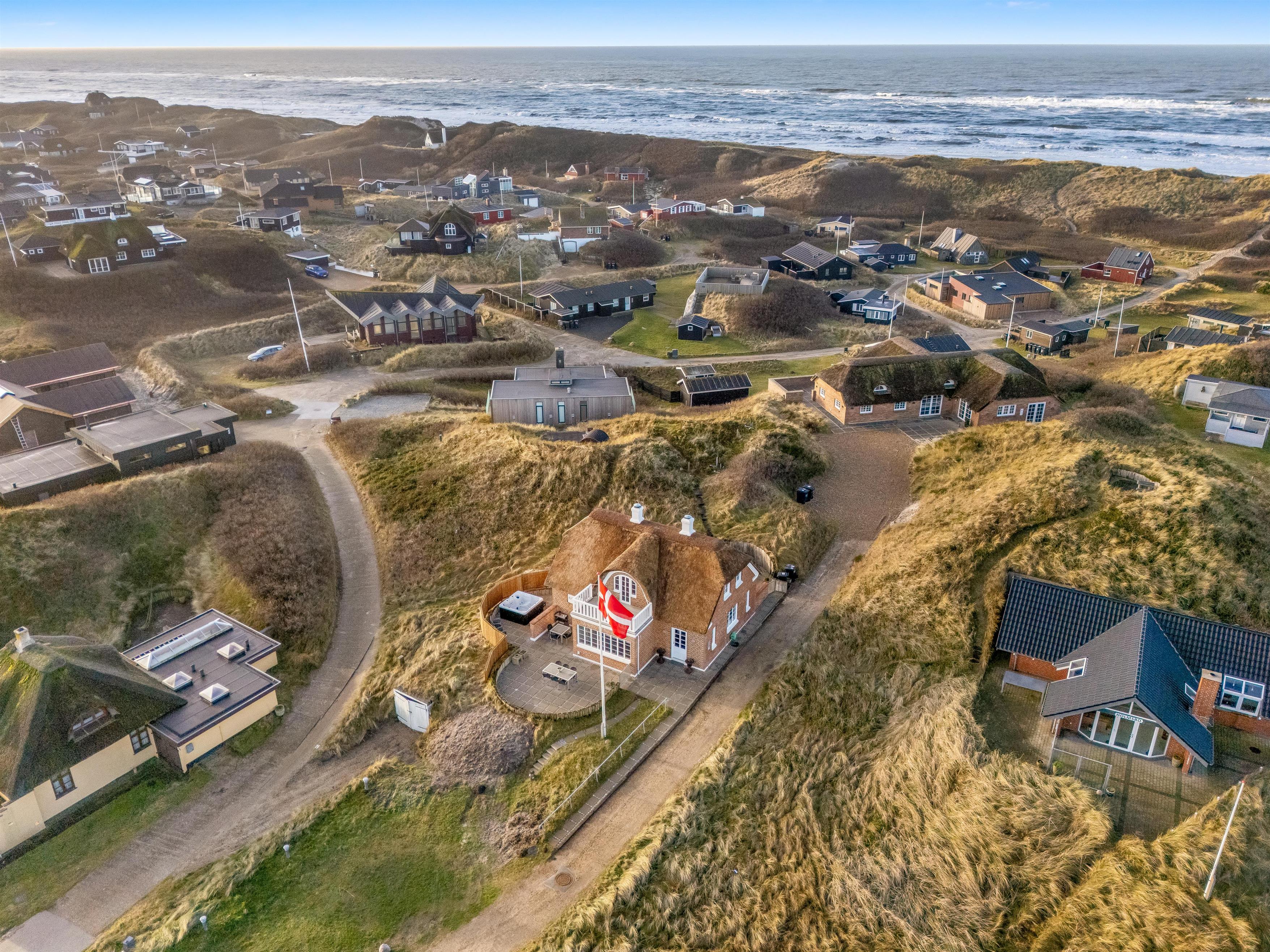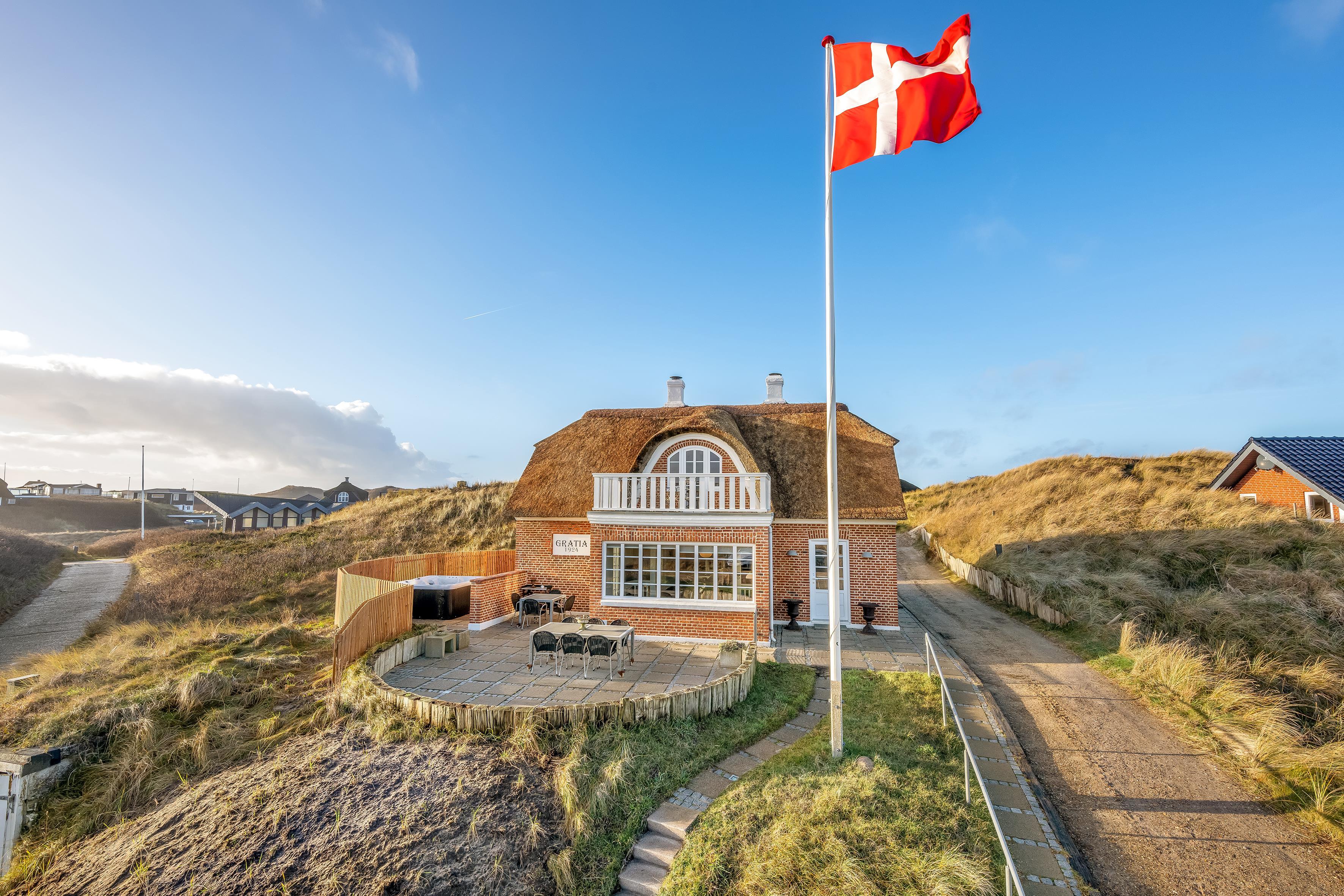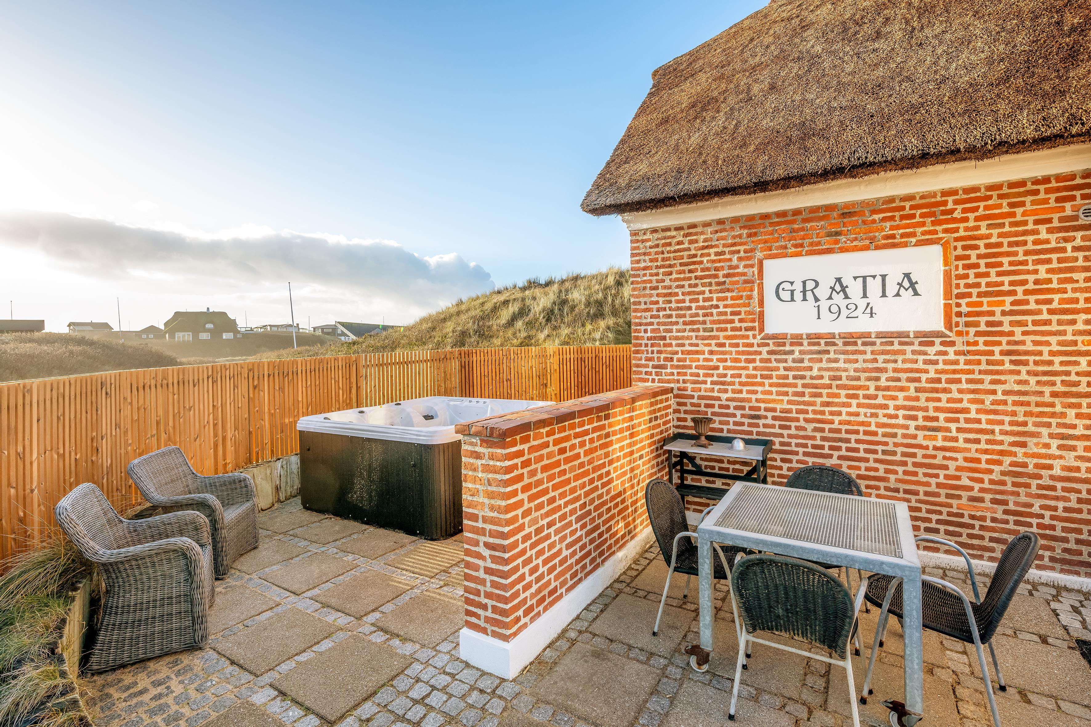 Udenfor kan du nyde den fantastiske udsigt fra balkonen, eller slappe af på den afskærmede terrasse, hvor der også er en grill til rådighed. Det udendørs spa er en ekstra luksus, der kan rumme op til 6 personer, så du kan slappe af under stjernerne efter en lang dag. På den højest beliggende del af husets grund, kan i nyde klitlandskabet og opleve den fantastiske solnedgang.
