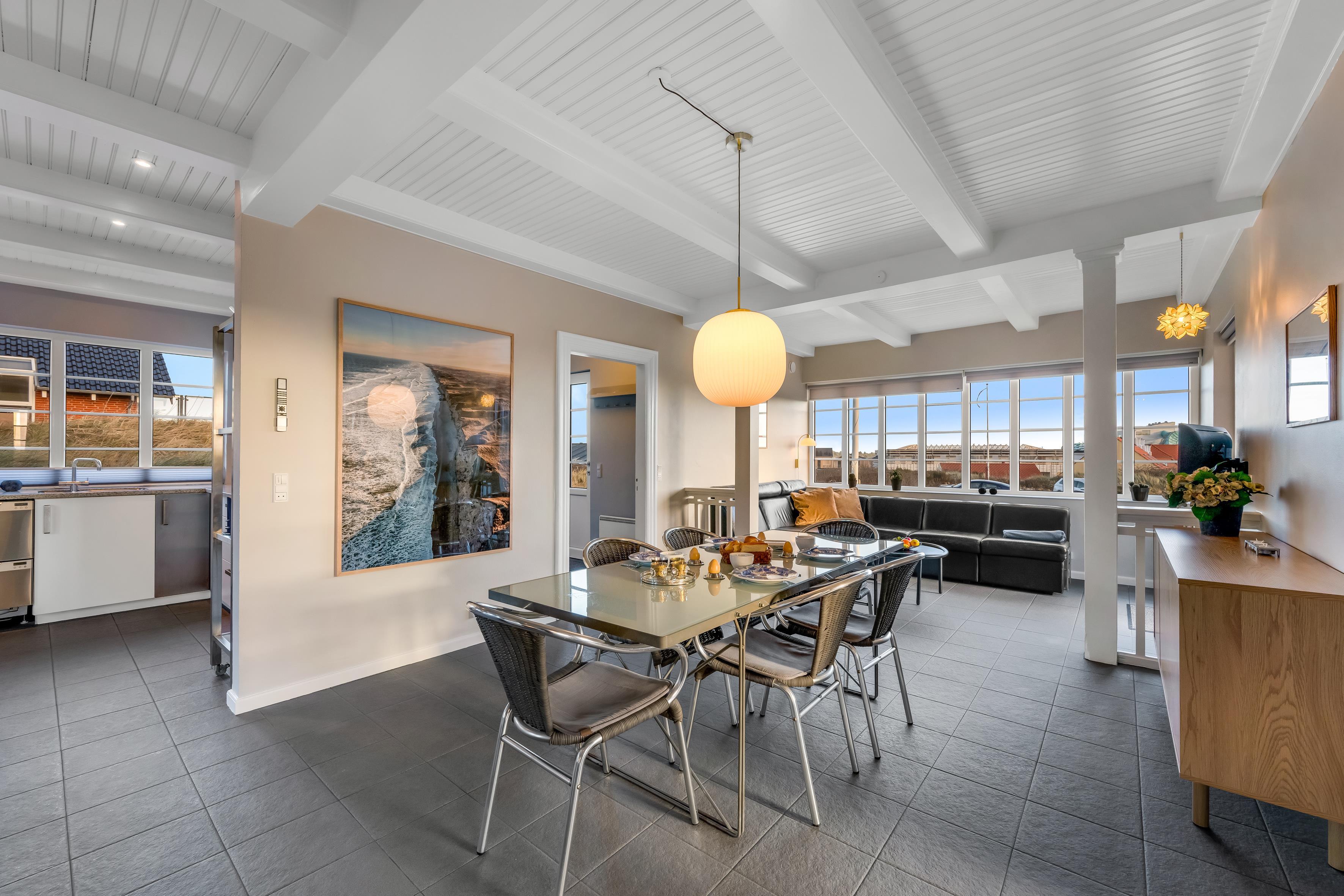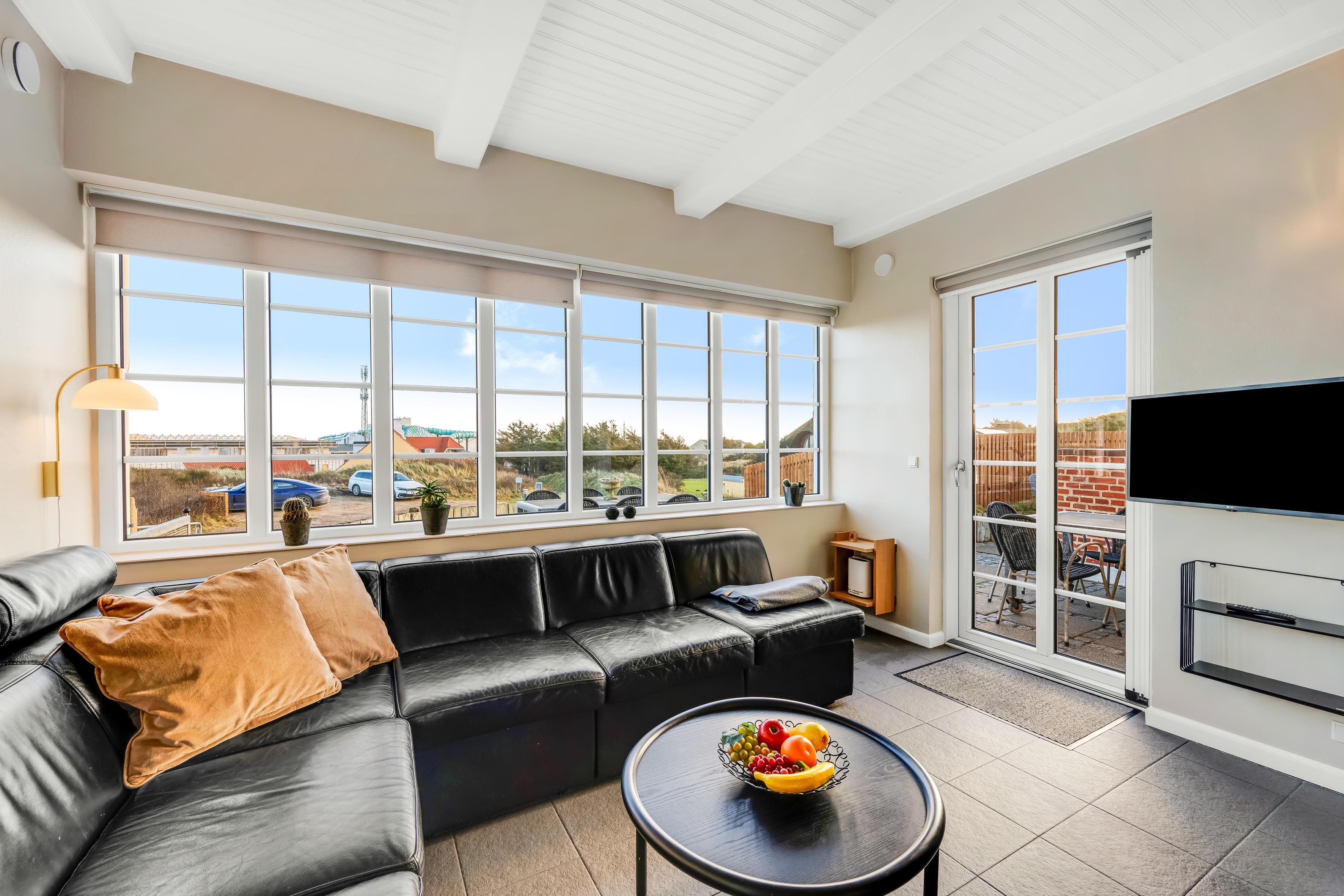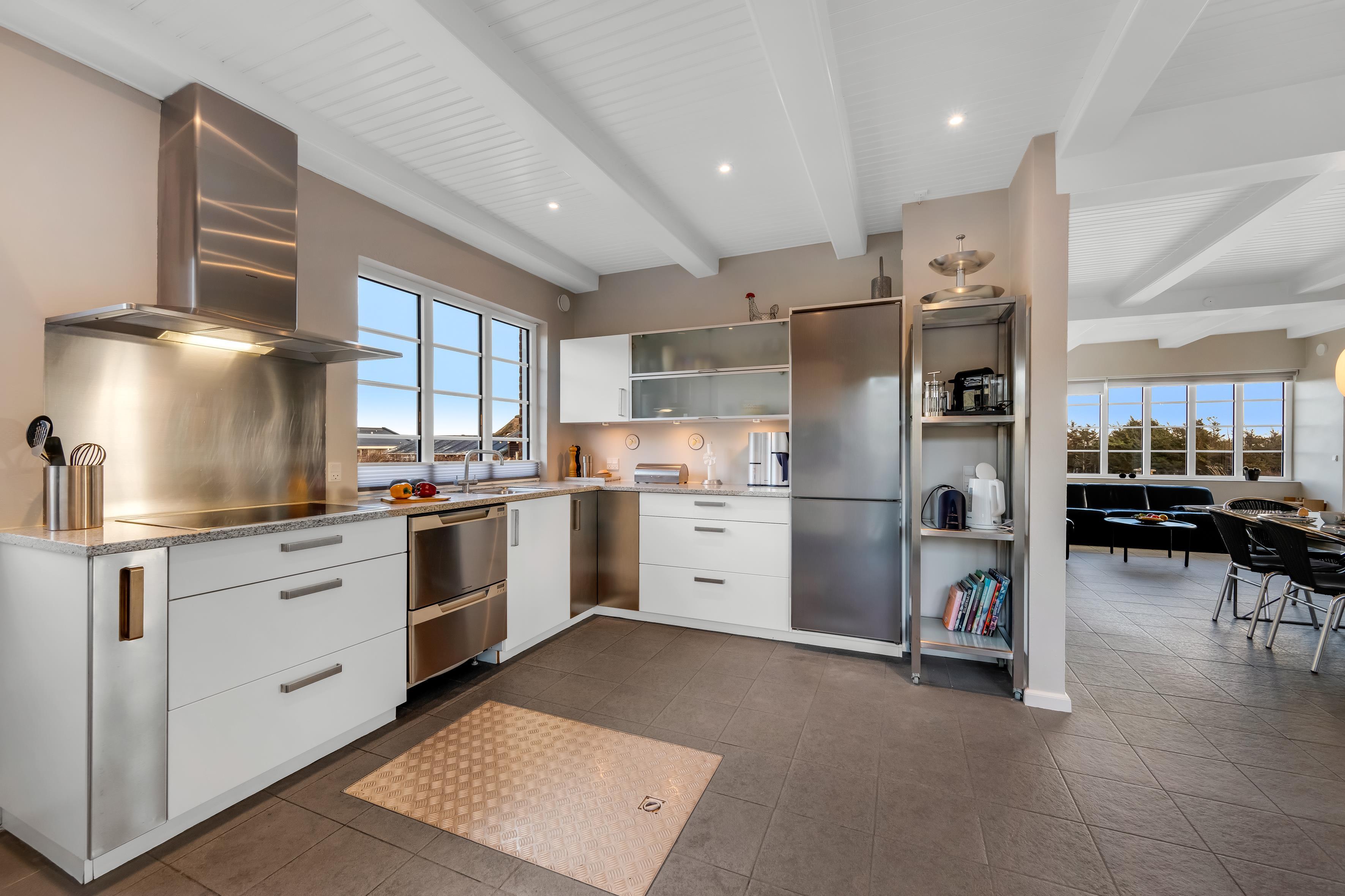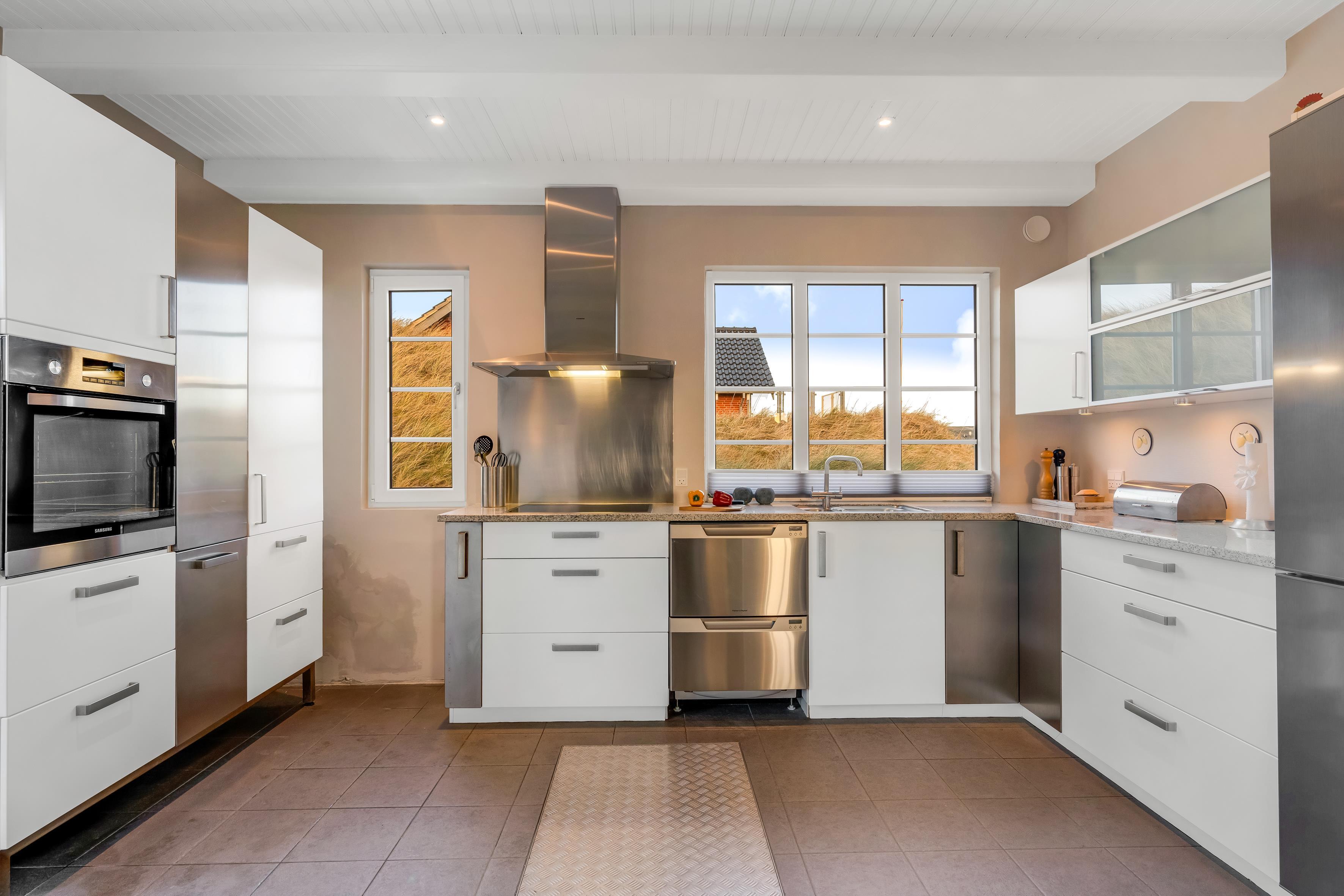 Udenfor kan du nyde den fantastiske udsigt fra balkonen, eller slappe af på den afskærmede terrasse, hvor der også er en grill til rådighed. Det udendørs spa er en ekstra luksus, der kan rumme op til 6 personer, så du kan slappe af under stjernerne efter en lang dag. På den højest beliggende del af husets grund, kan i nyde klitlandskabet og opleve den fantastiske solnedgang.