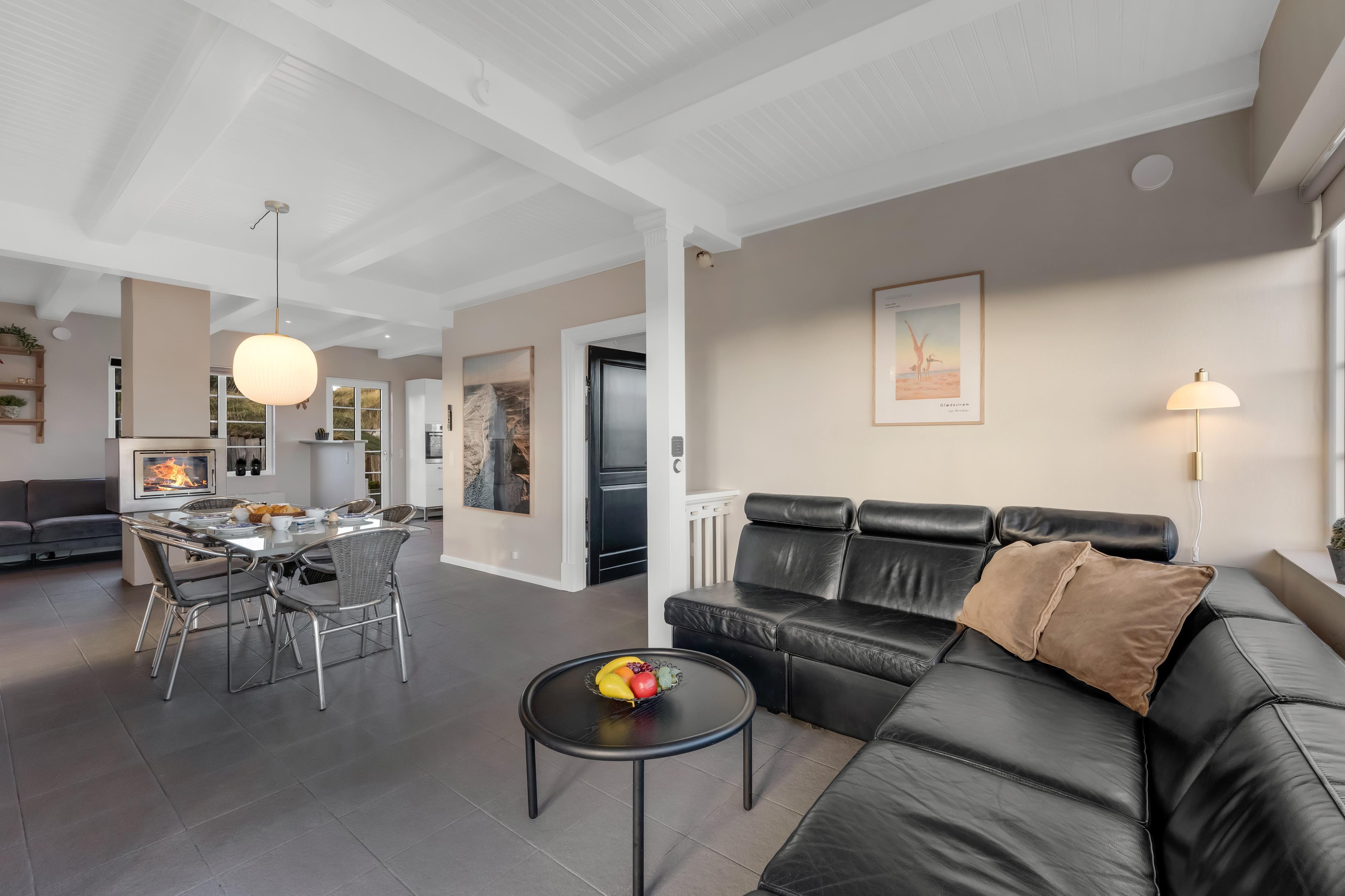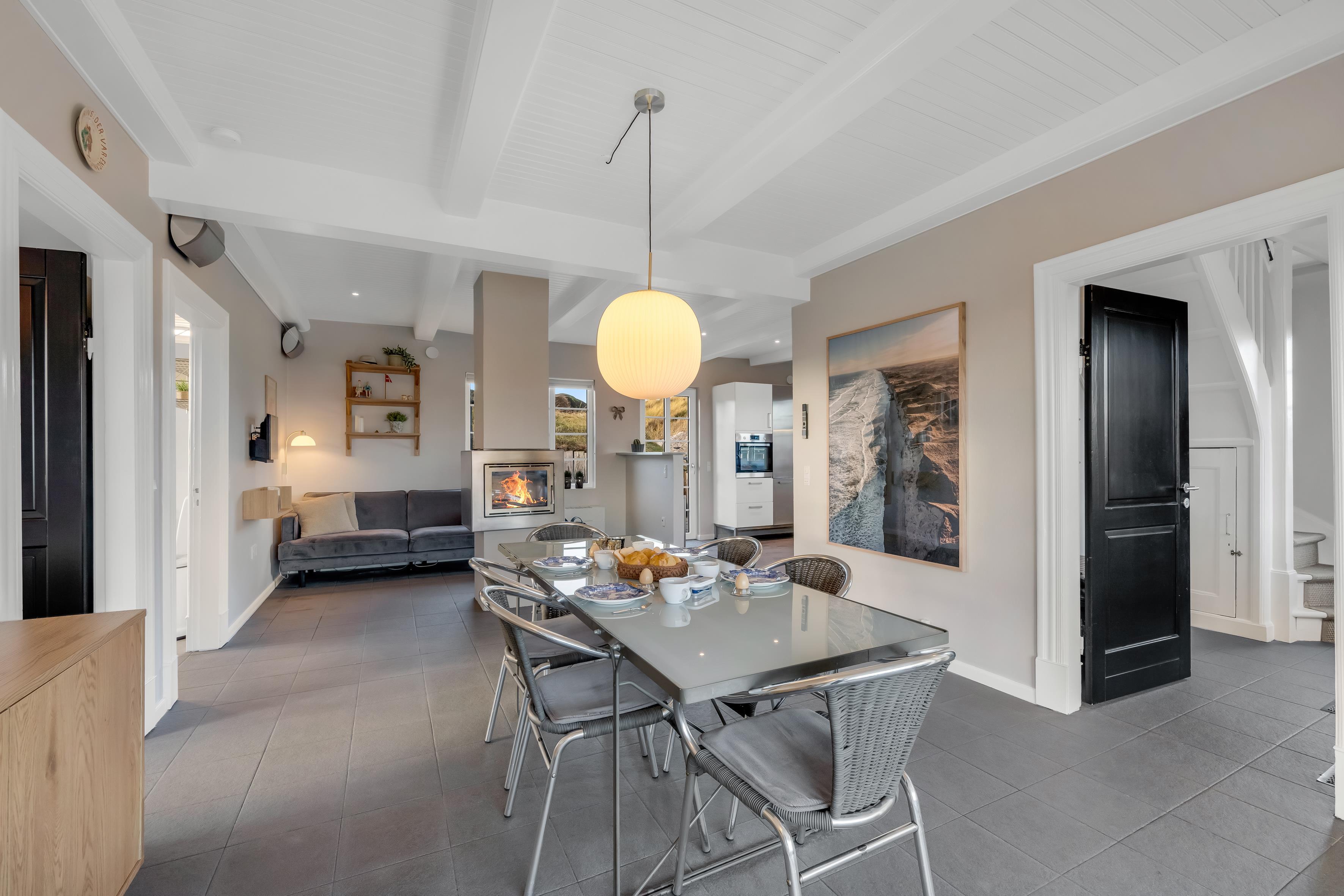 Når du ønsker at slappe af, kan du nyde den hyggelige stue med en brændeovn, der skaber en varm og indbydende atmosfære. Huset er også udstyret med en varmepumpe, der også kan fungerer som aircondition, så du kan justere temperaturen til din komfort. Underholdningen er sikret med et fjernsyn, der tilbyder både dansk og tysk TV, samt Chromecast til streaming af dine yndlingsprogrammer.