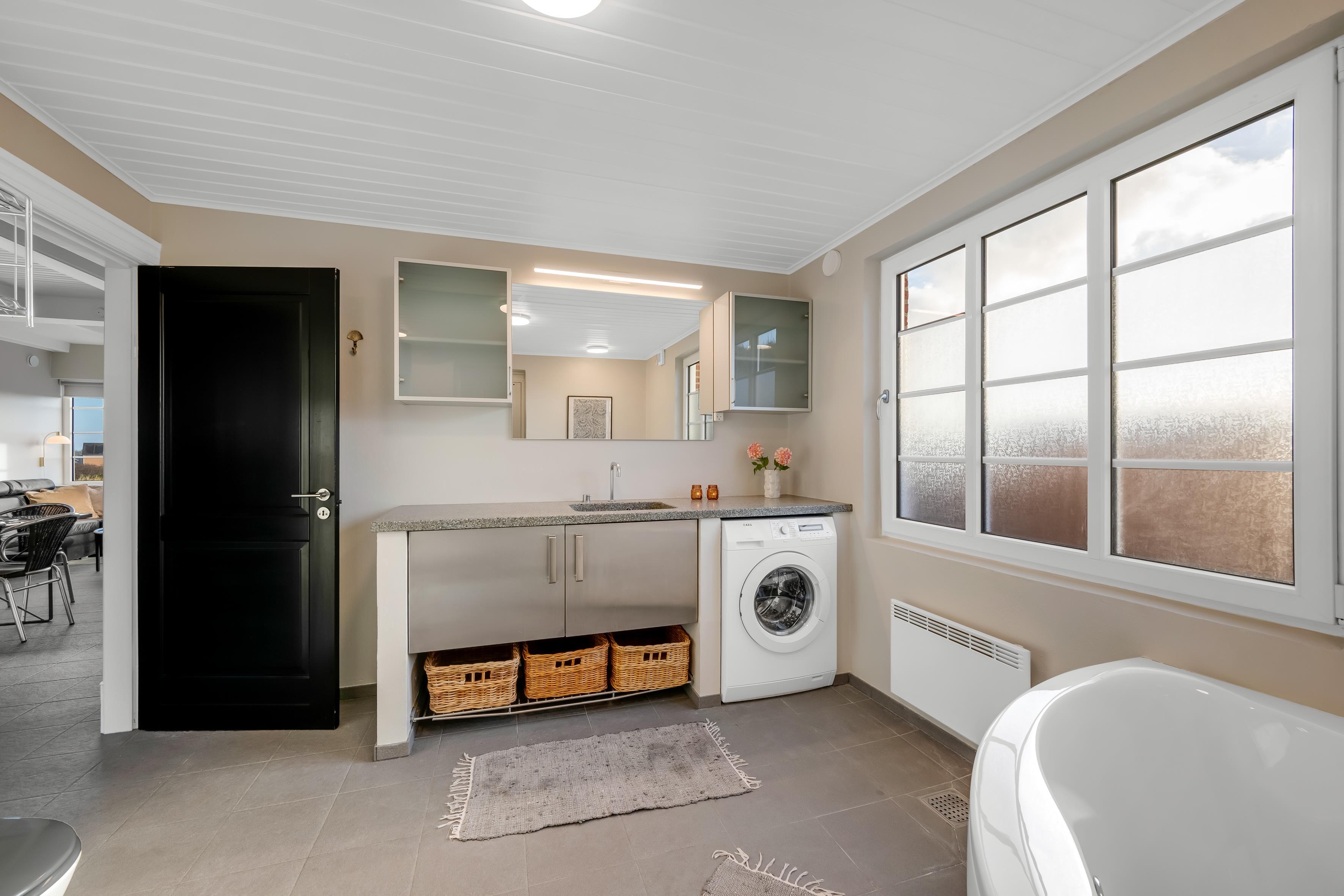 For dem, der elsker at tilberede mad, er køkkenet udstyret med alle moderne faciliteter. Her finder du en mikrobølgeovn, ovn, keramisk komfur, opvaskemaskine, køleskab og fryser med en kapacitet på 80 liter - alt hvad du behøver for at lave lækre måltider. Der er også en praktisk tørretumbler og vaskemaskine til rådighed, så du kan holde dit tøj friskt under dit ophold.
