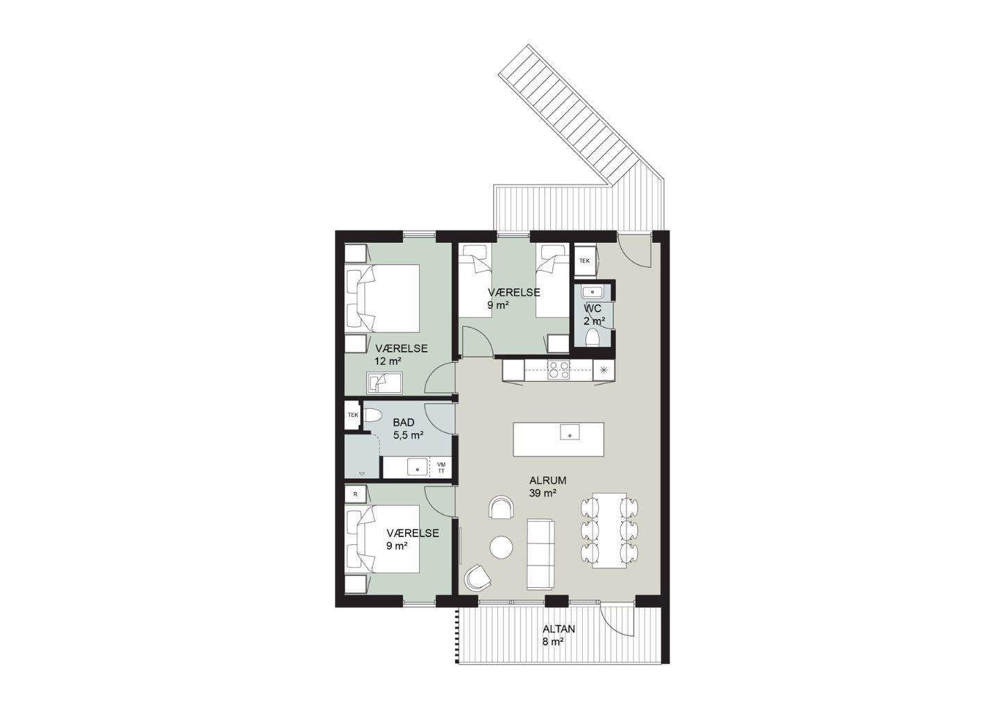Den lukkede og overdækkede terrasse, er perfekt til at slappe af med en god bog eller nyde en hyggelig grillaften med familie og venner. Grillen står klar til at blive tændt, så du kan tilberede lækre måltider under åben himmel.