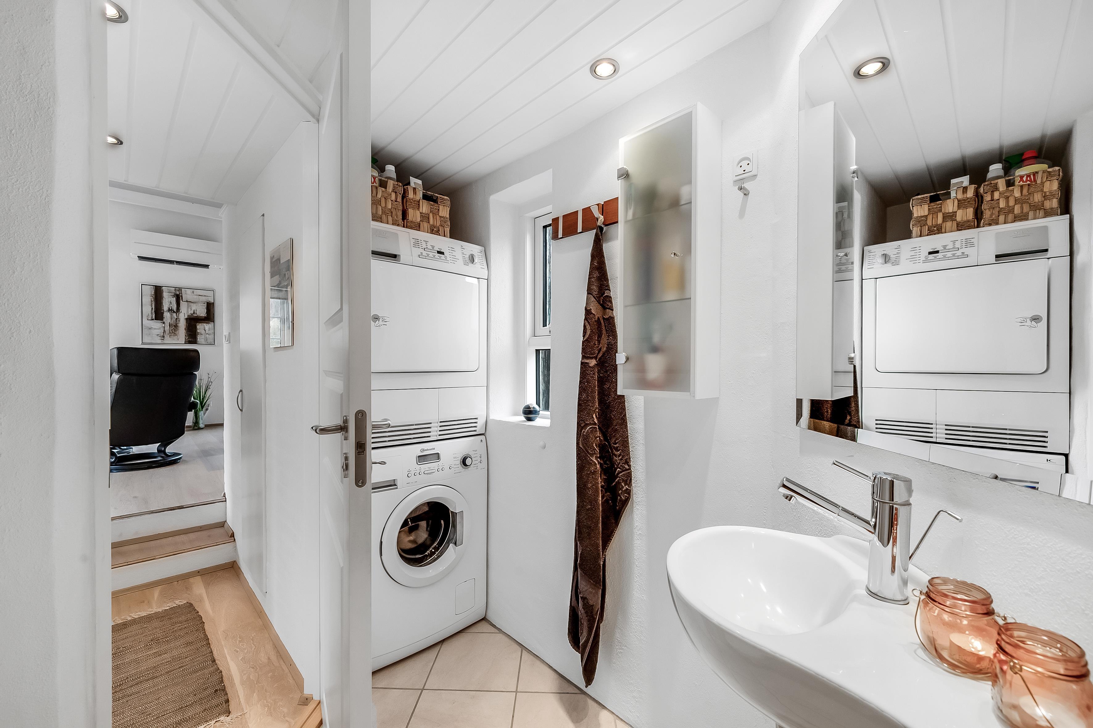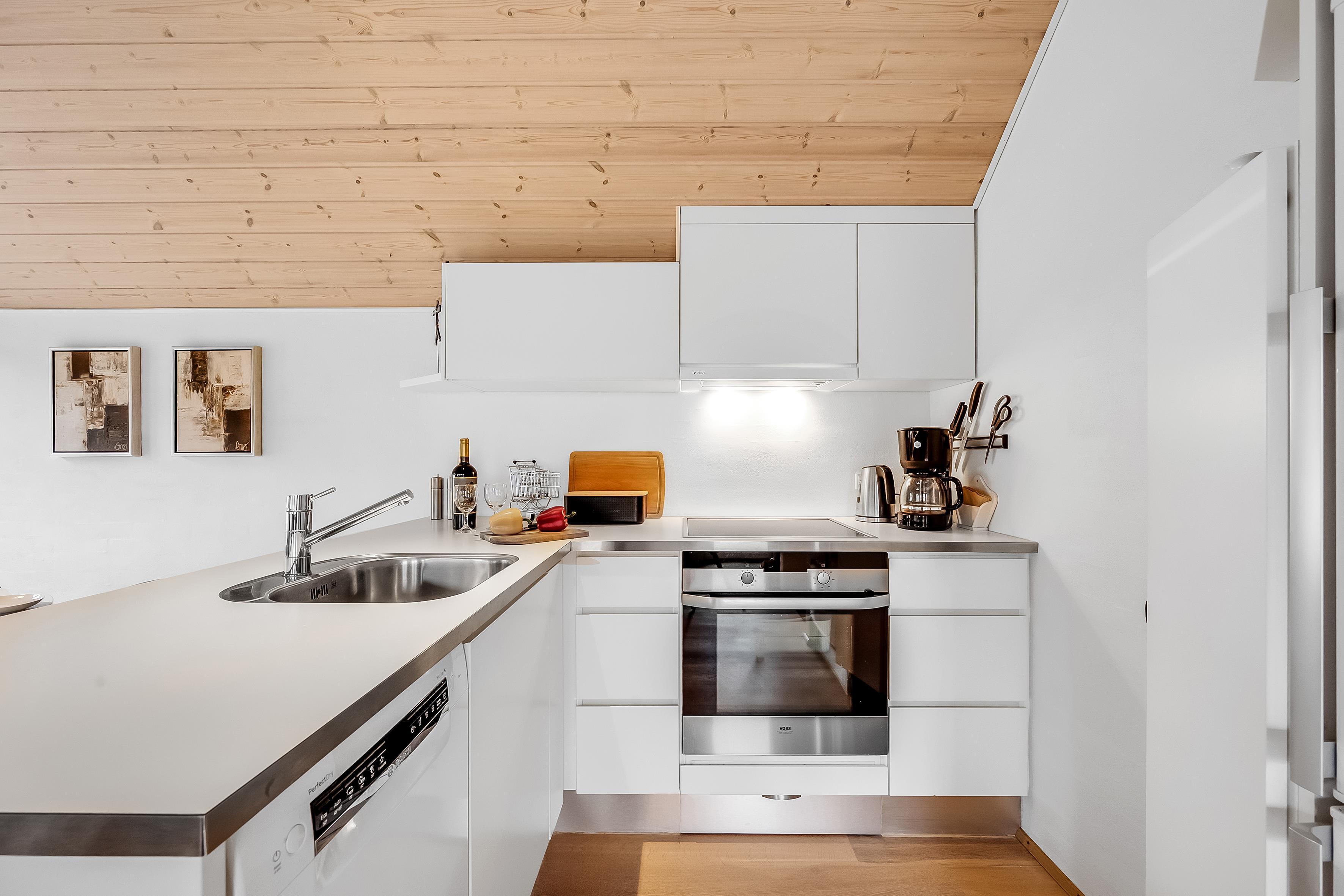 For dem, der elsker at lave mad, vil køkkenet være en fryd. Det er udstyret med moderne apparater, herunder en ovn, opvaskemaskine, køleskab og fryser med en kapacitet på 40 liter. En vaskemaskine og tørretumbler er også tilgængelige, så I kan holde tøjet friskt under opholdet. Efter en dejlig middag kan I nyde en hyggelig stund foran brændeovnen, der spreder varme og atmosfære.