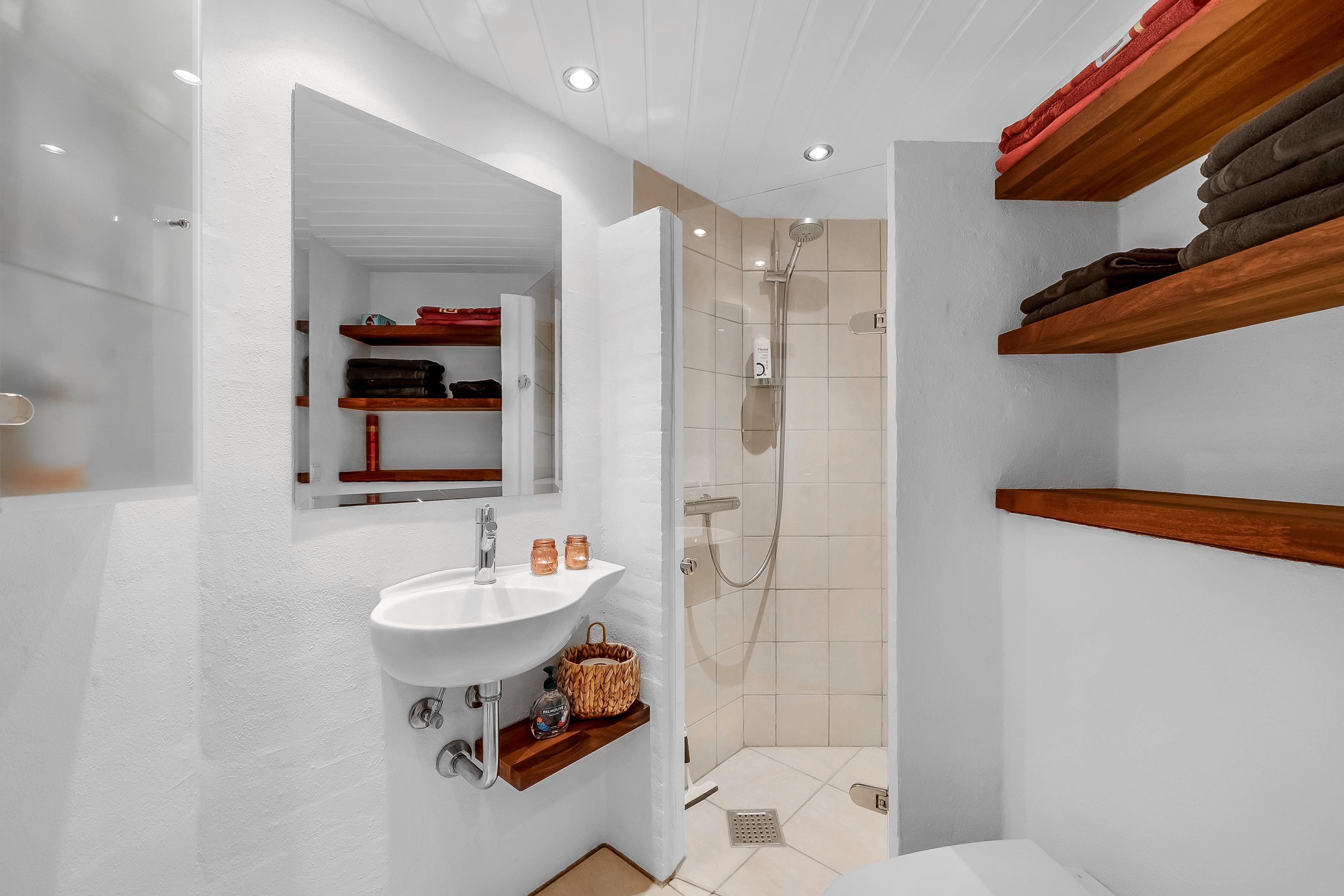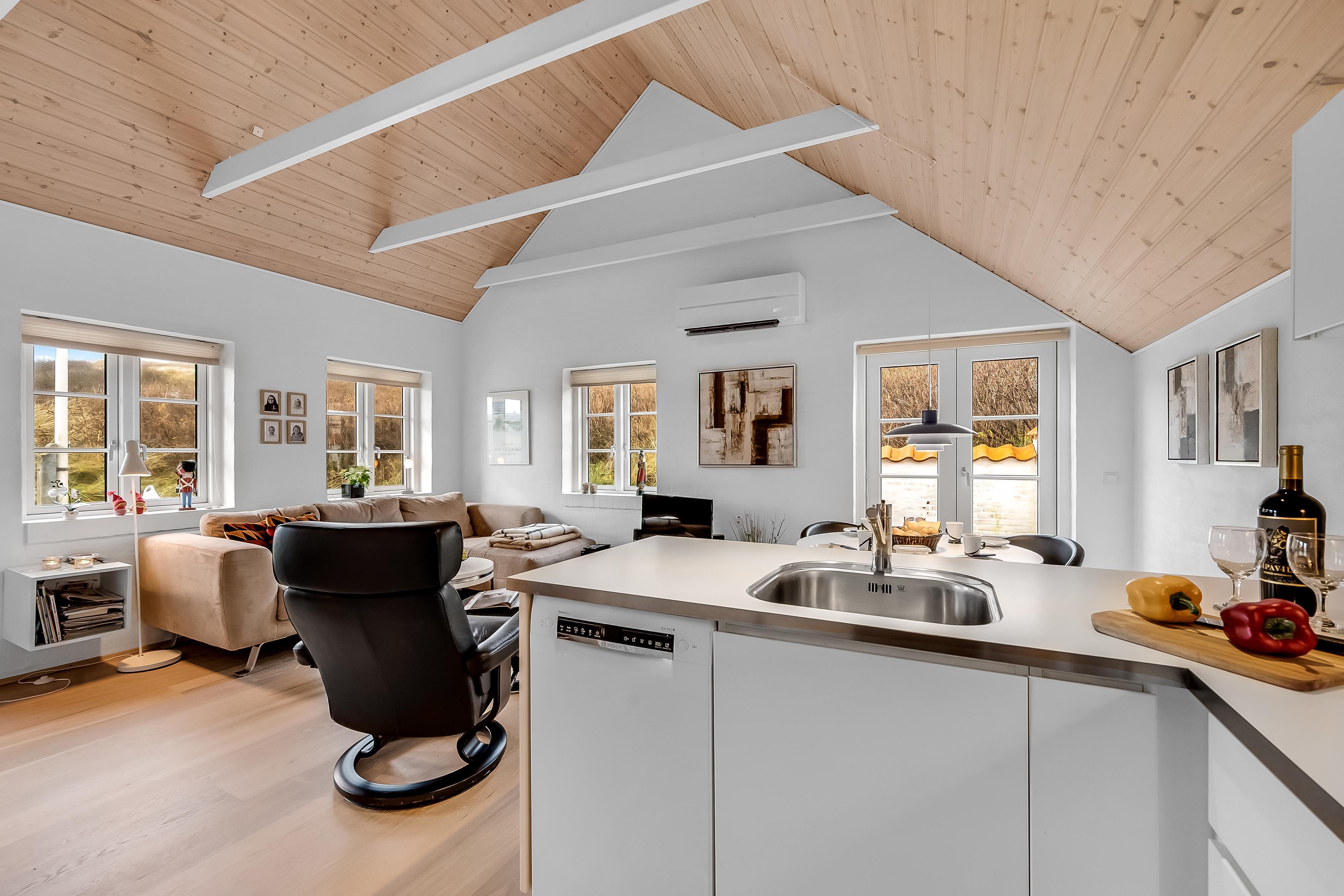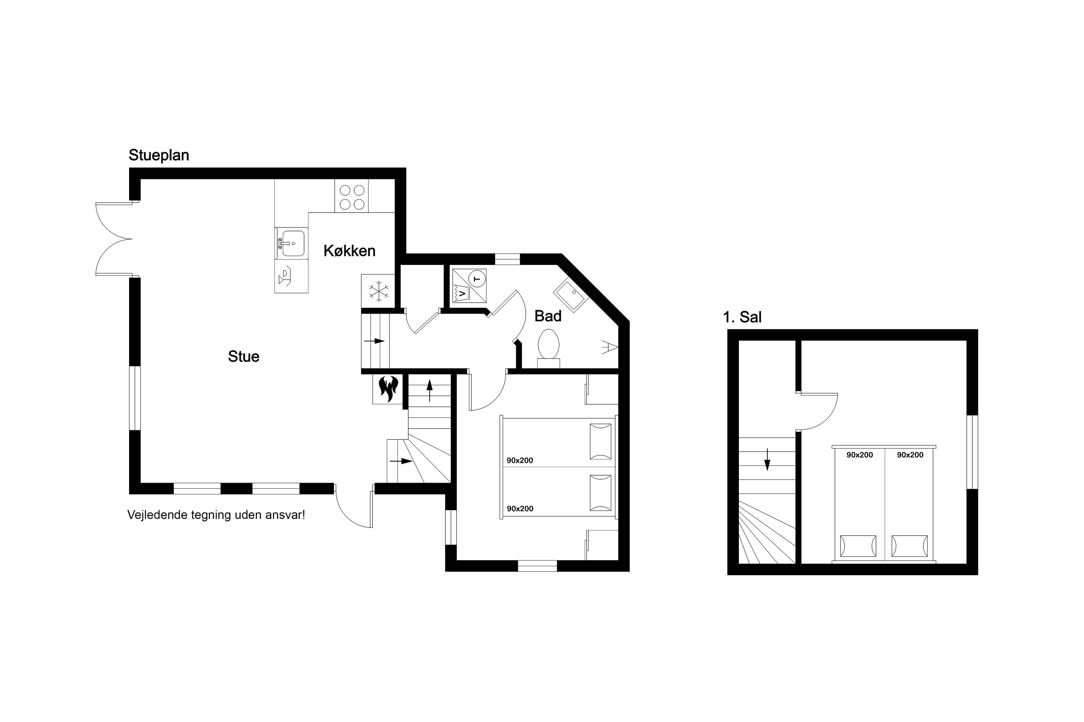 Huset byder på to soveværelser, begge udstyret med dobbeltsenge, hvilket sikrer en god nats søvn. Badeværelset er udstyret med bruseniche, toilet og gulvvarme.