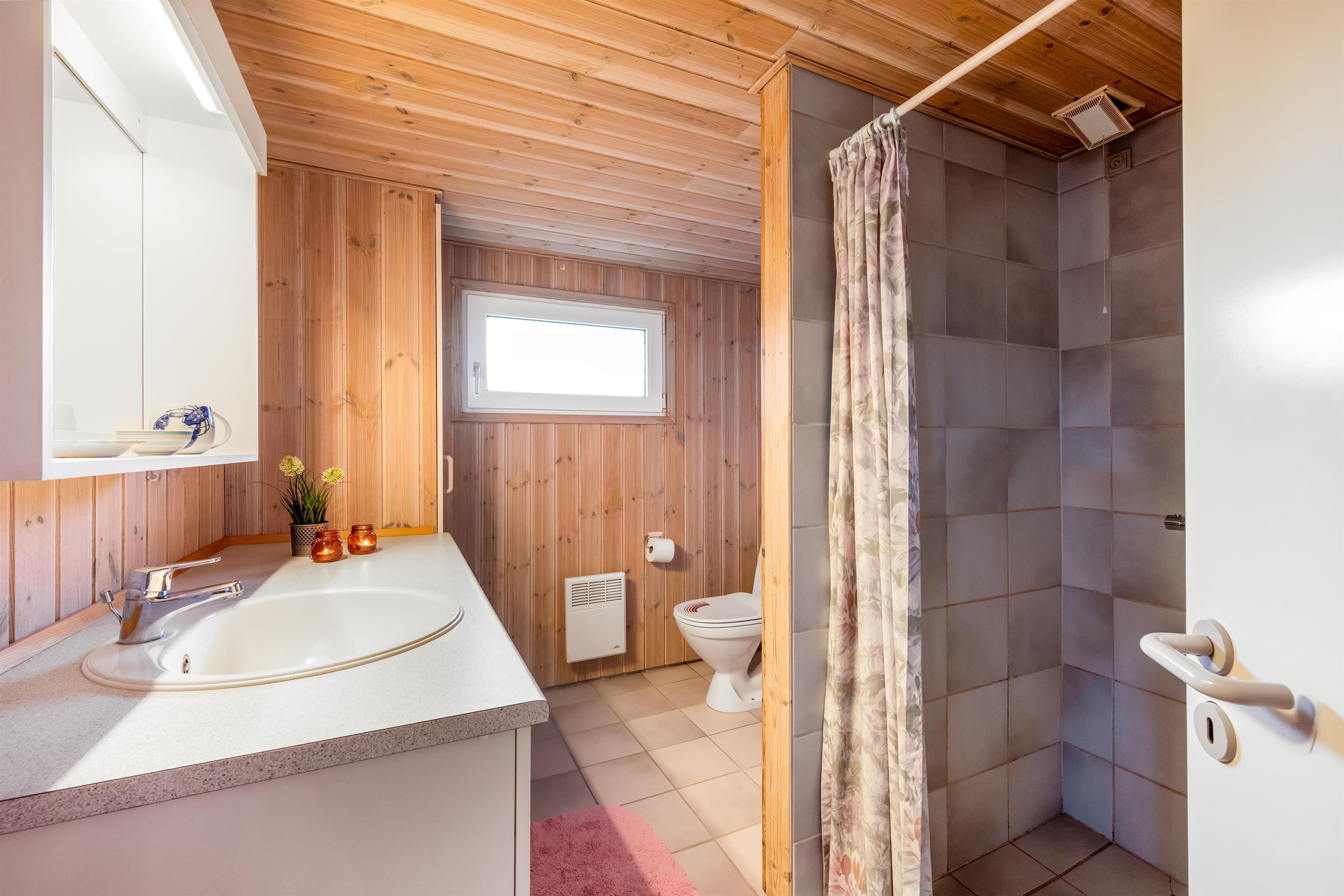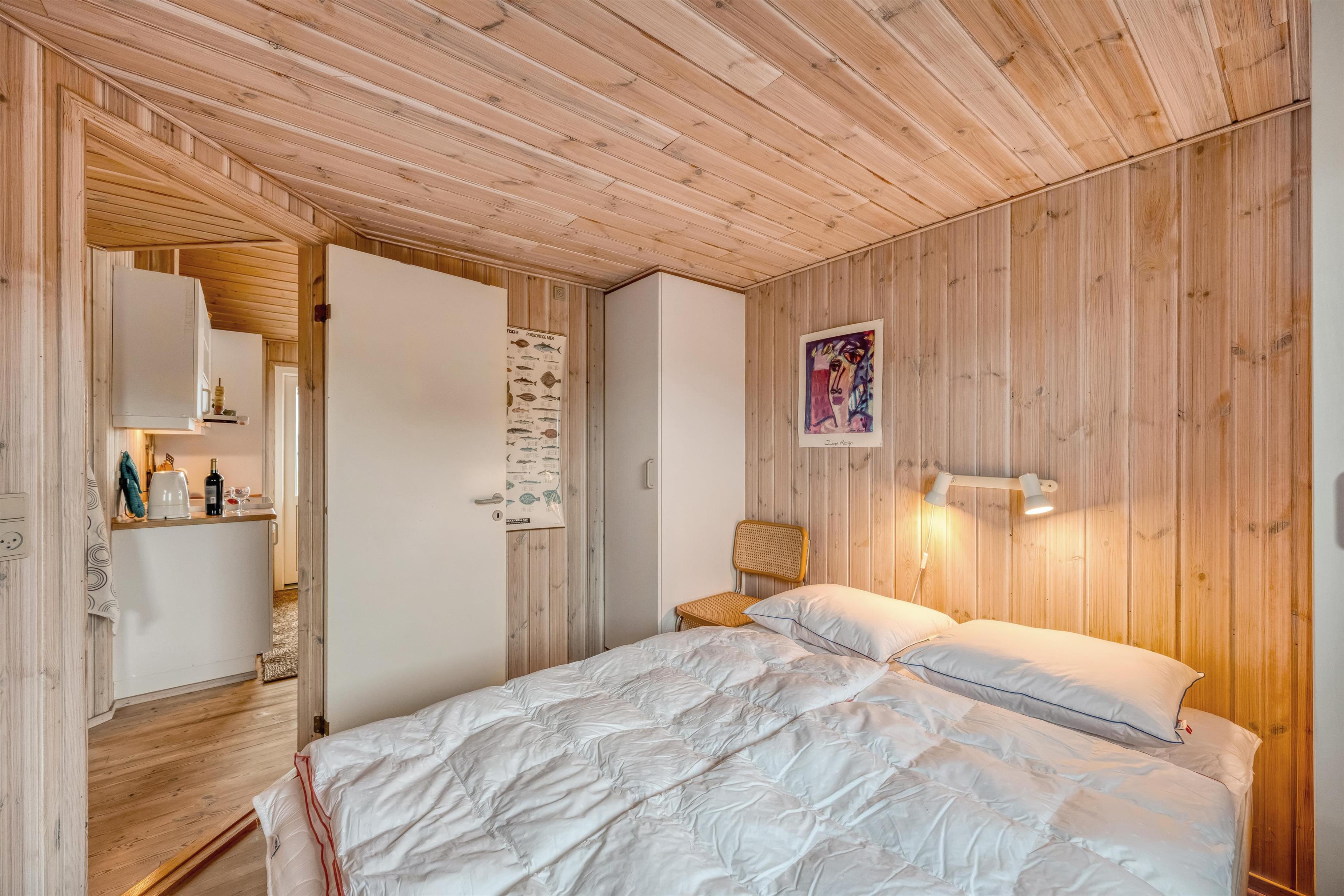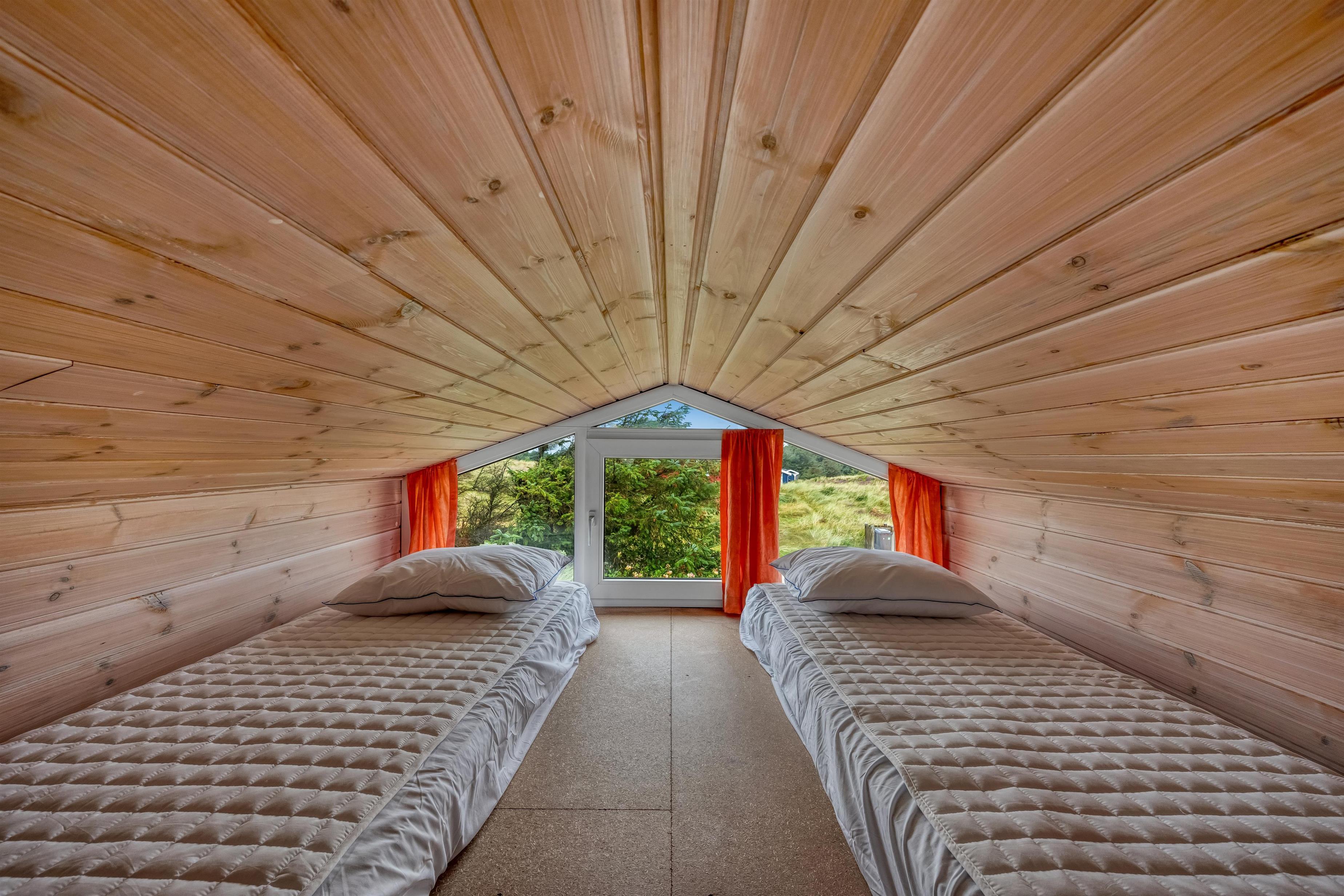 Indendørs finder du to komfortable soveværelser, begge med dobbeltsenge, som sikrer en god nats søvn. Derudover er der en hems, der kan rumme yderligere to personer, hvilket gør huset perfekt til familien. Boligen er udstyret med et moderne badeværelse, der har toilet, bruser og gulvvarme, hvilket skaber en behagelig oplevelse, selv på køligere dage.