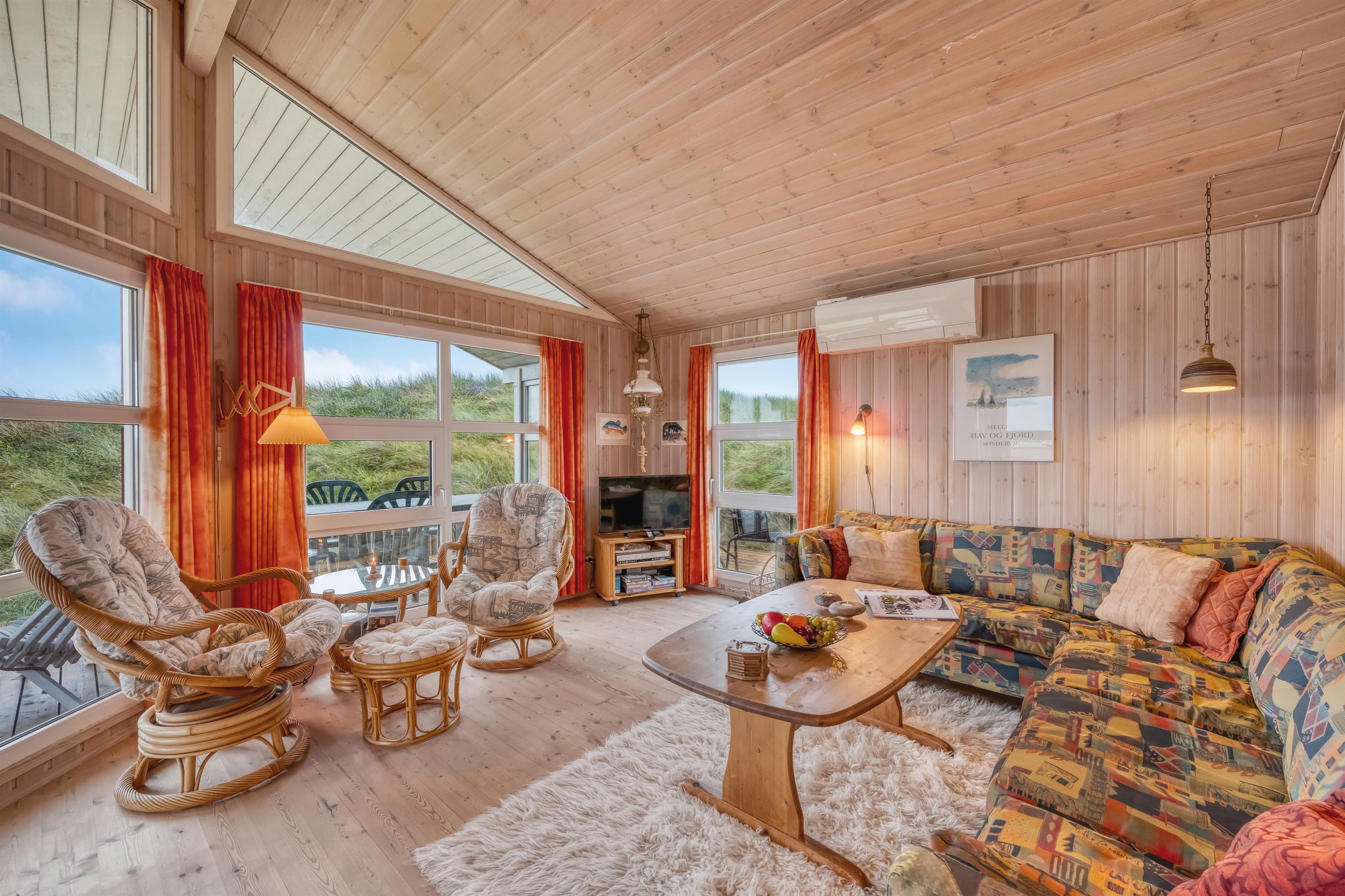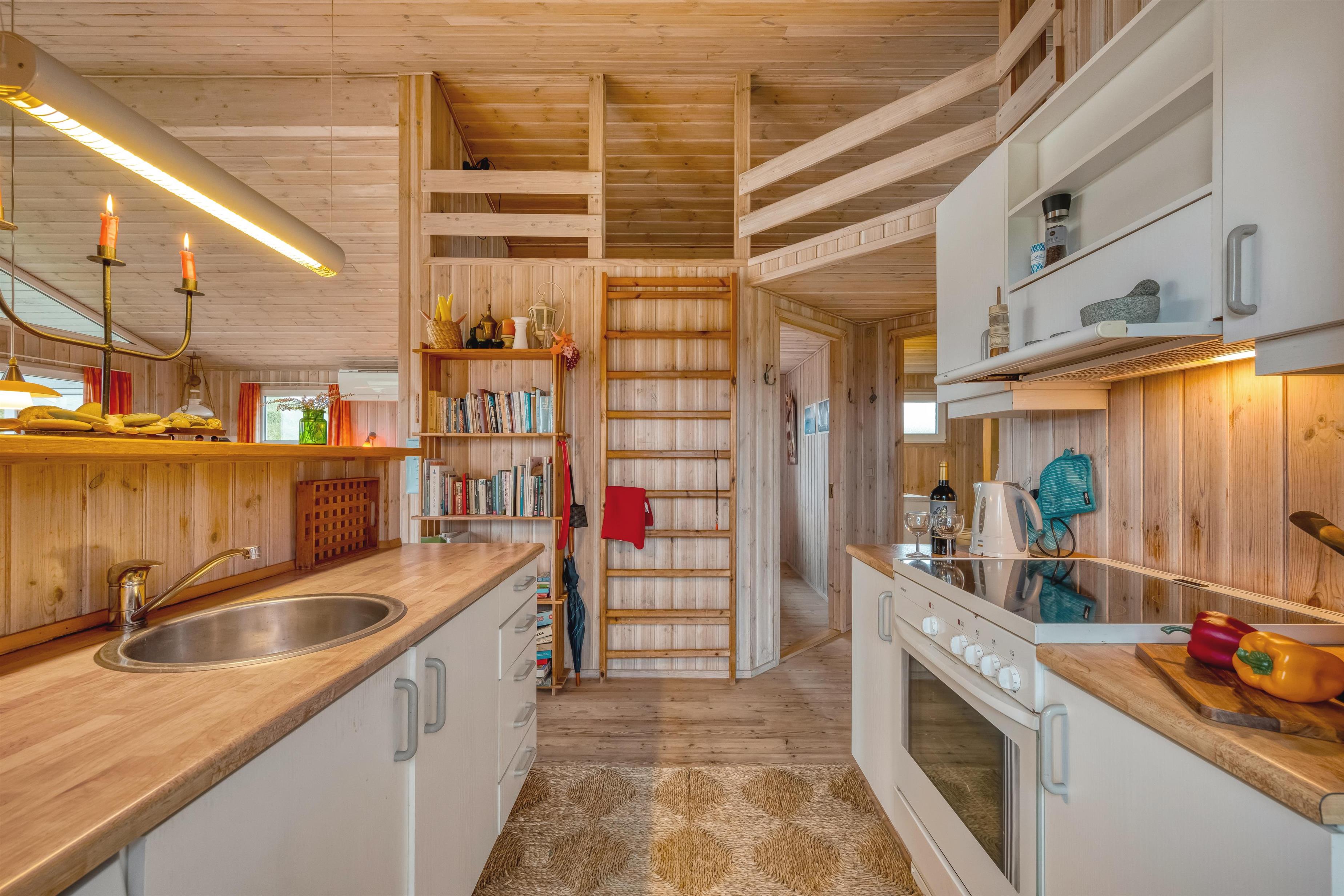 Når du træder ind i stuen, vil du blive mødt af et lyst og indbydende rum, der er udstyret med med en energibesparende varmepumpe, der også kan fungere som aircondition for maksimal komfort. Her kan du slappe af efter en dag ved vandet eller udforske de lokale seværdigheder. Stuen er også udstyret med et fjernsyn, der tilbyder både dansk og tysk TV, samt en DVD-afspiller og en radio, så du kan nyde underholdning i dit eget tempo.
