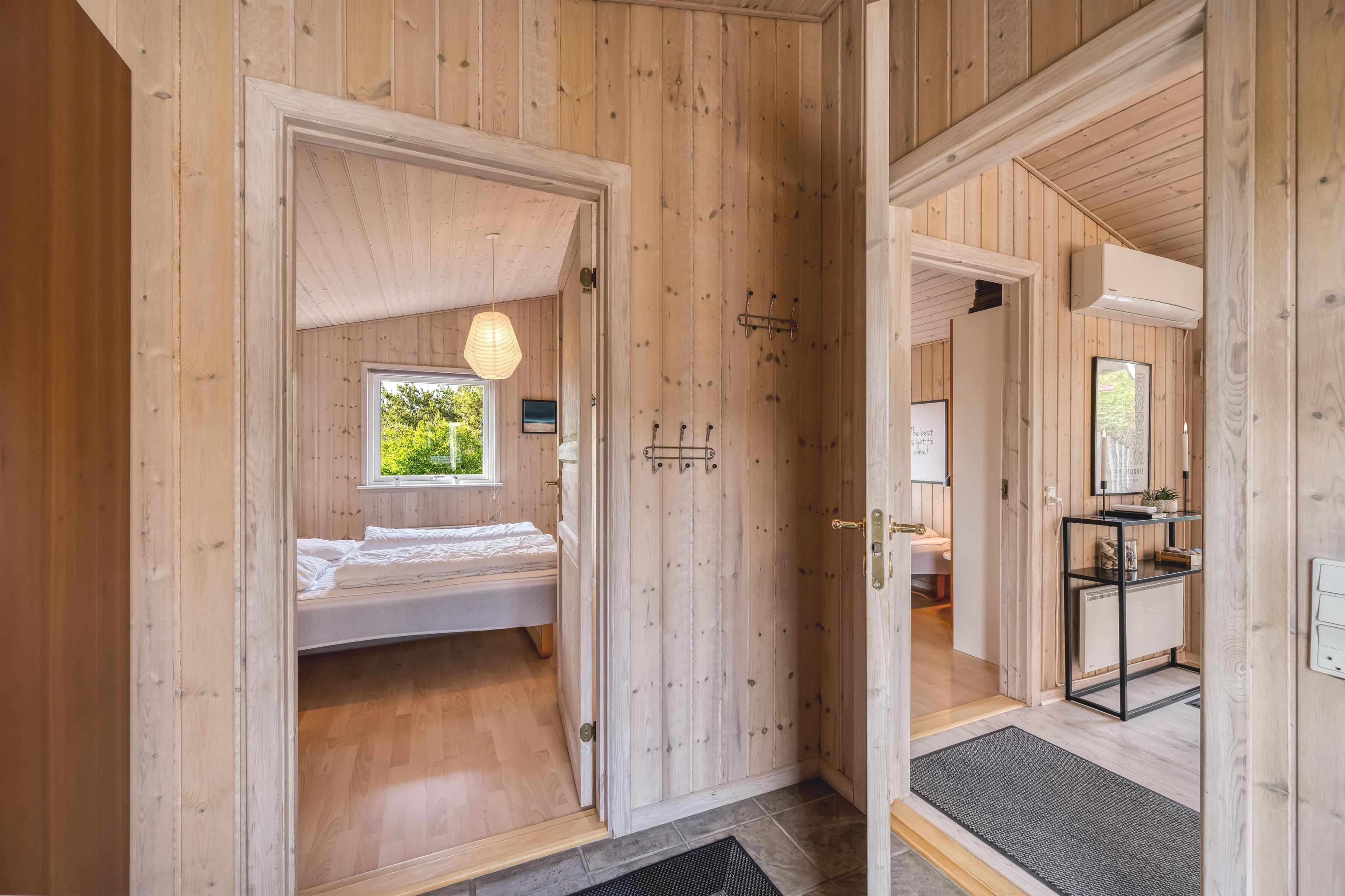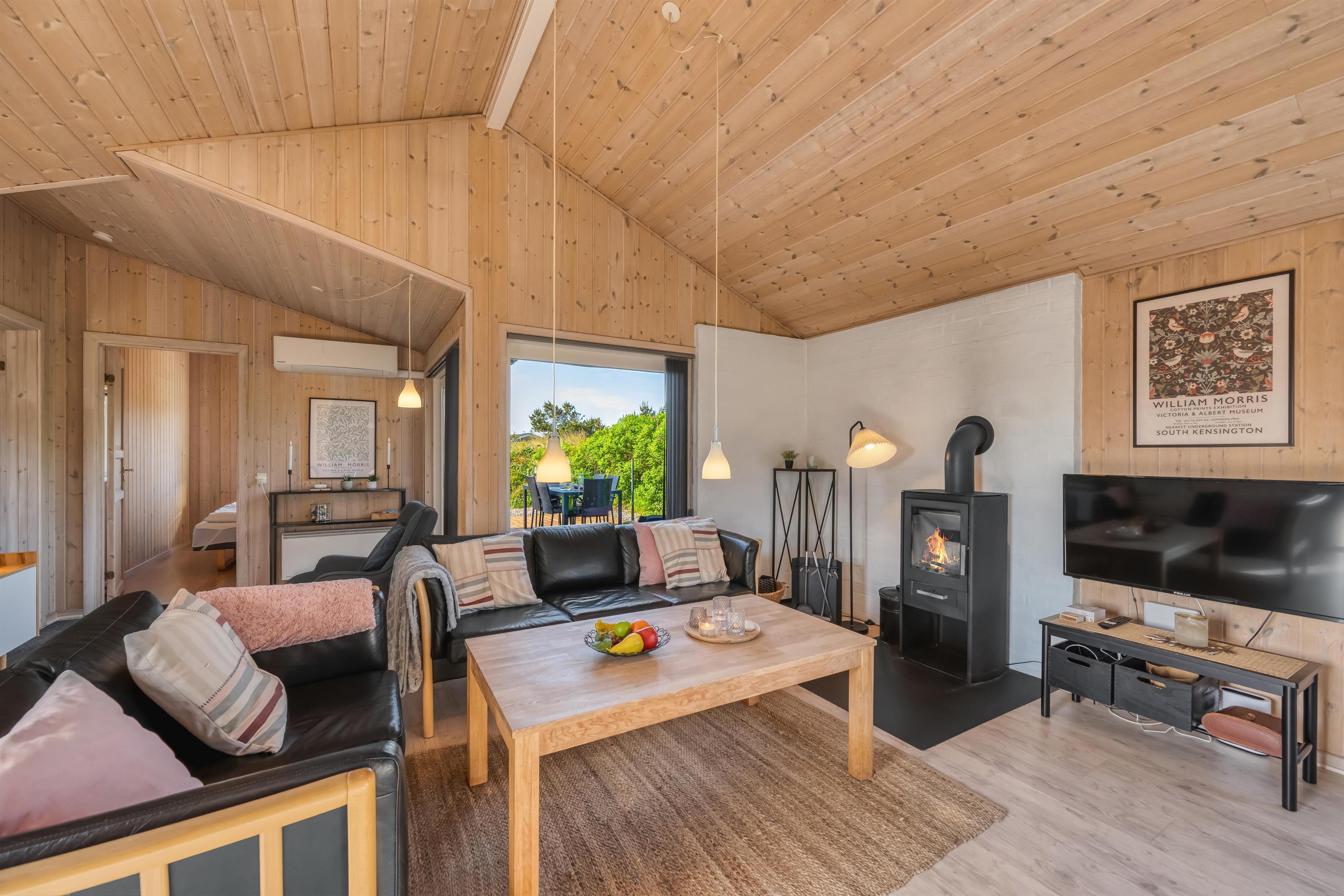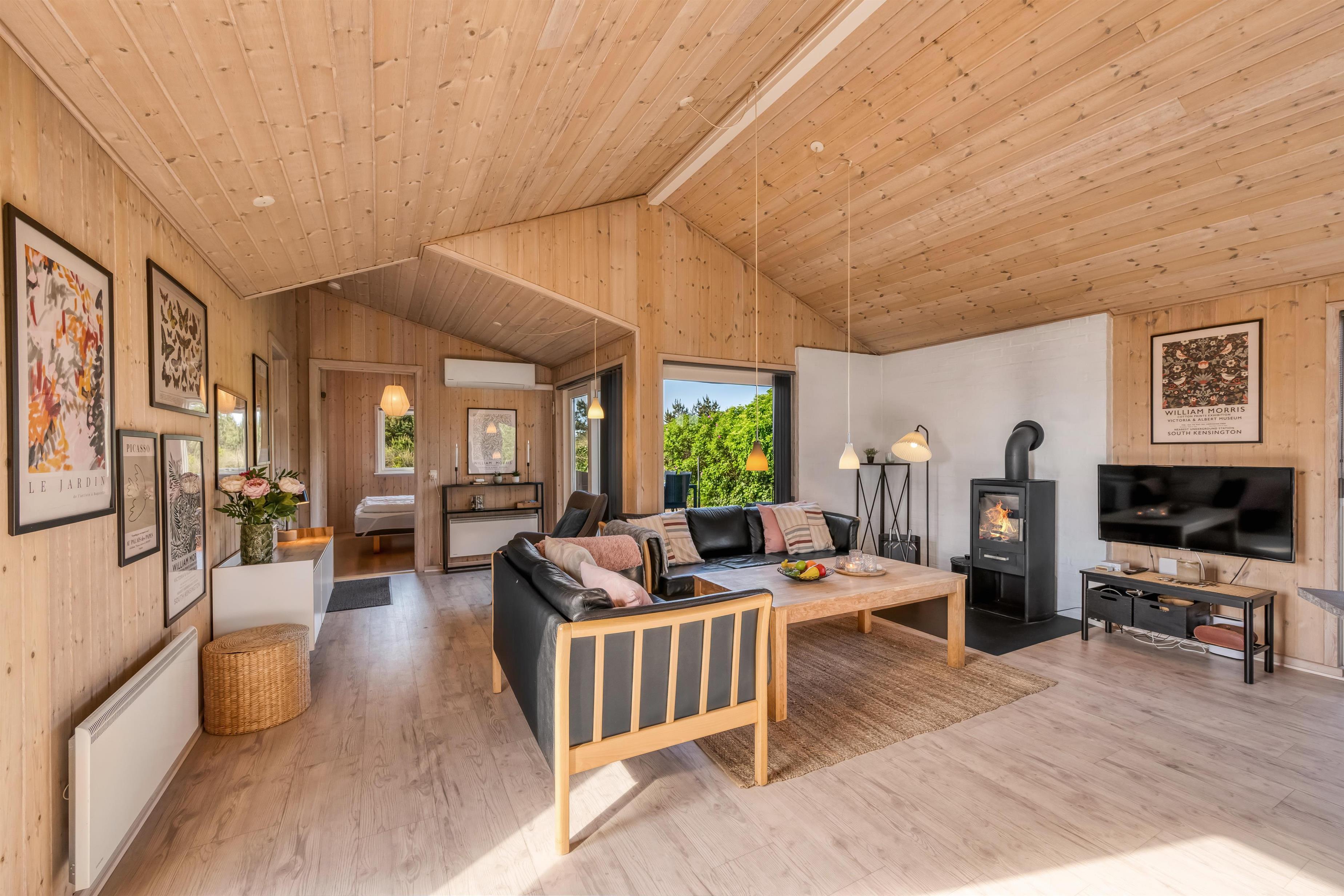 Boligen er udstyret med et moderne badeværelse, der inkluderer både toilet, bruser og gulvvarme, så du kan nyde komforten ved en varm bruser efter en lang dag. Den hyggelige stue er udstyret med en brændeovn, som skaber en varm og indbydende atmosfære, mens den energibesparende varmepumpe, der også kan fungere som aircondition, sørger for et behageligt indeklima året rundt.