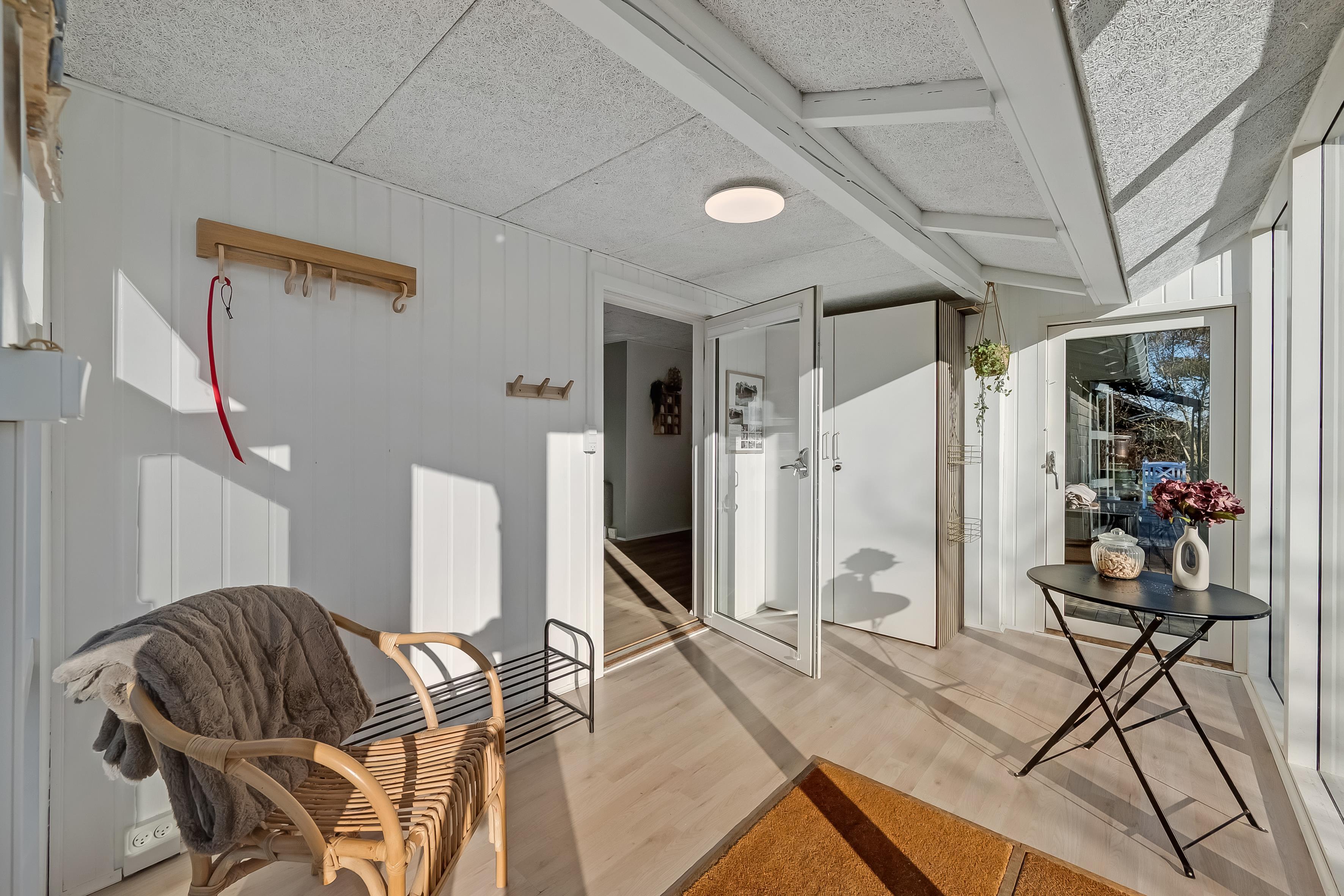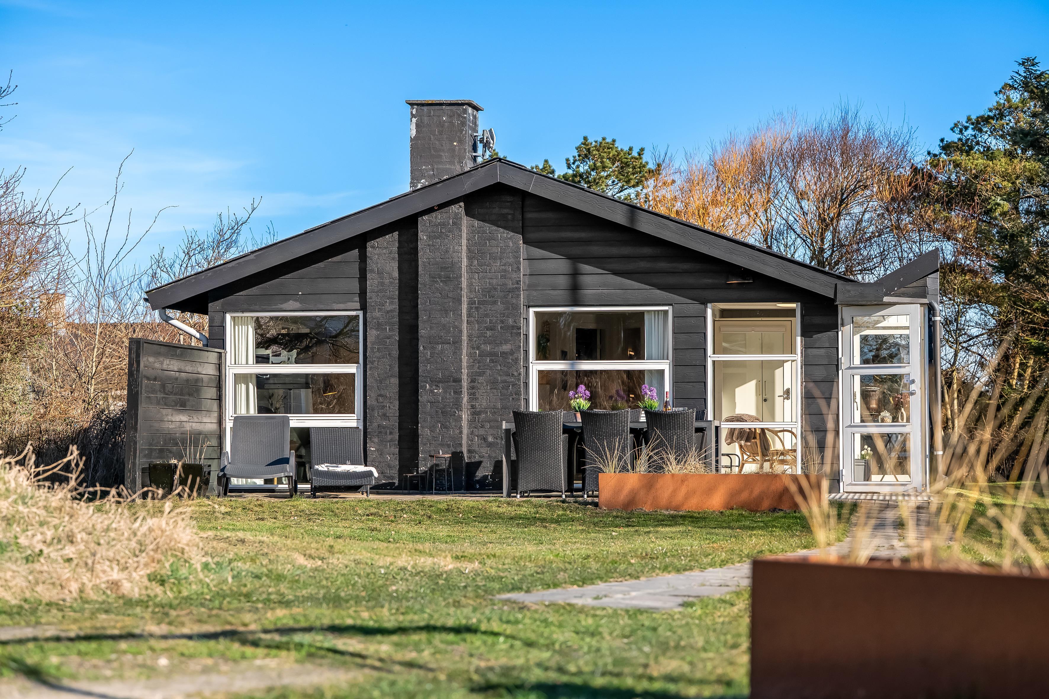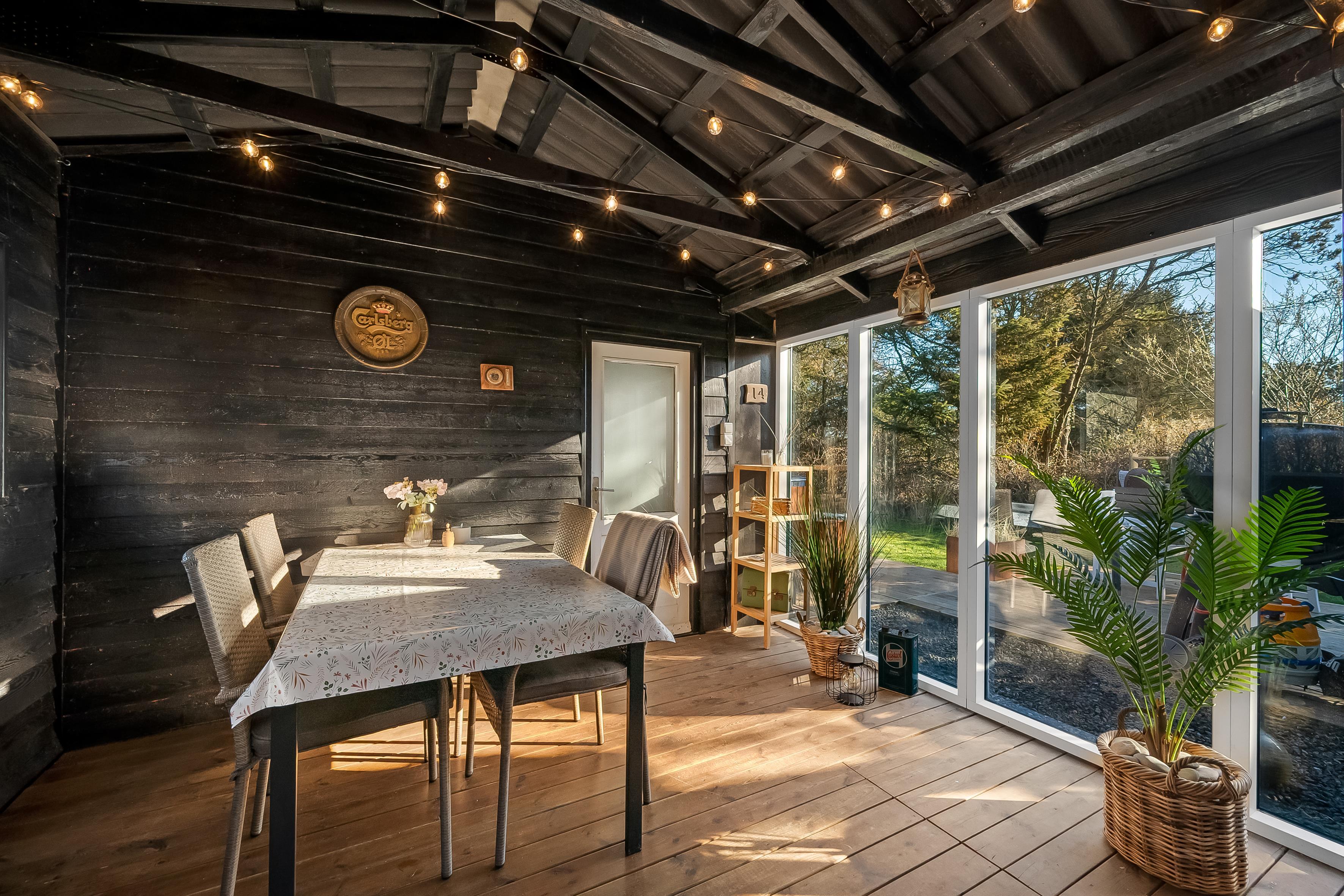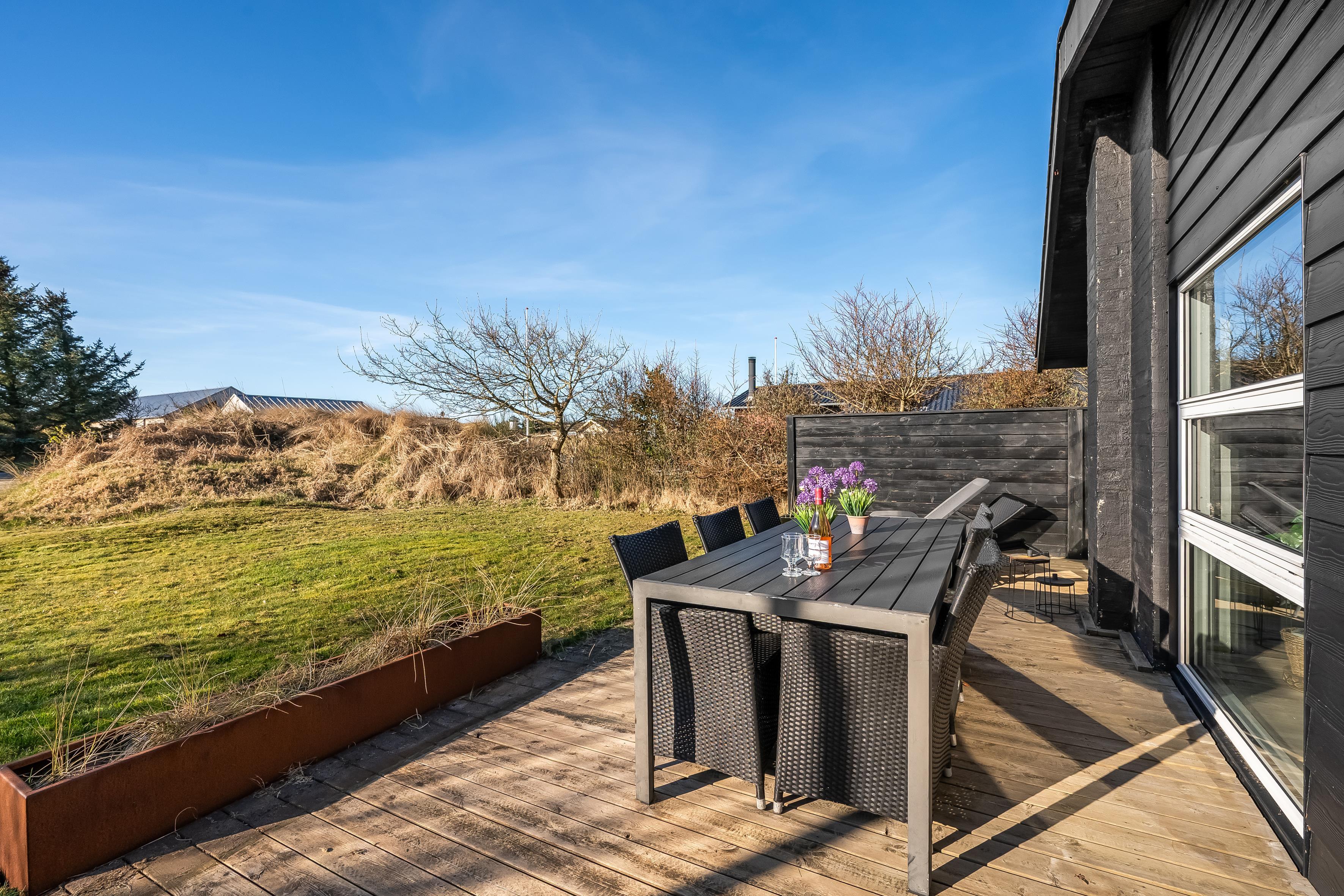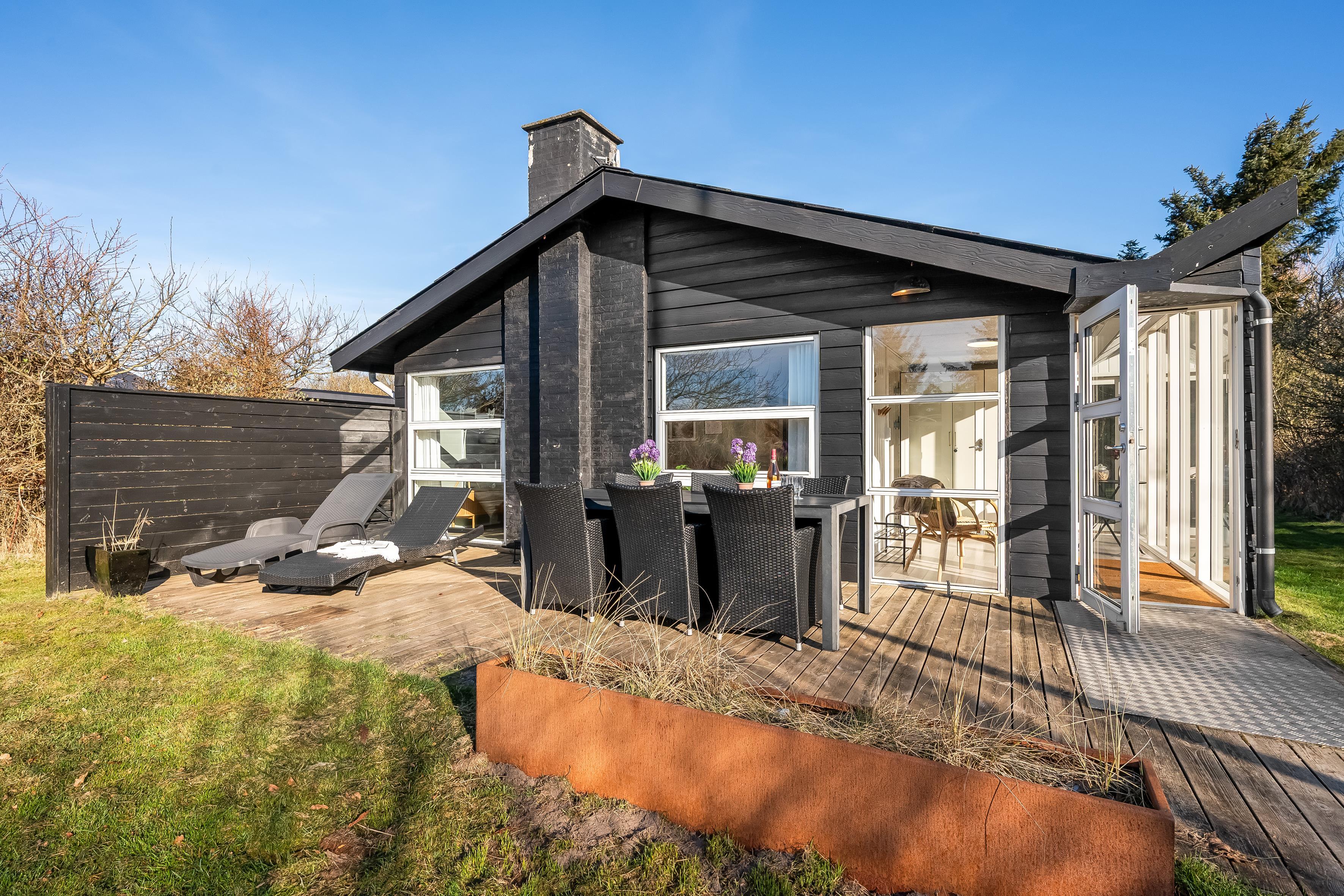 Køkkenet er veludstyret med moderne apparater, herunder en mikrobølgeovn, ovn, keramisk komfur, køleskab og fryser på 80 liter. Opvaskemaskinen gør oprydningen efter måltiderne til en leg. Udenfor kan du nyde de dejlige danske sommeraftener på den overdækkede terrasse, hvor der også er en grill til hyggelige grillfester. Udebruseren er perfekt til at skylle sand og salt af efter en dag ved Vesterhavet, som ligger kun 600 meter væk.