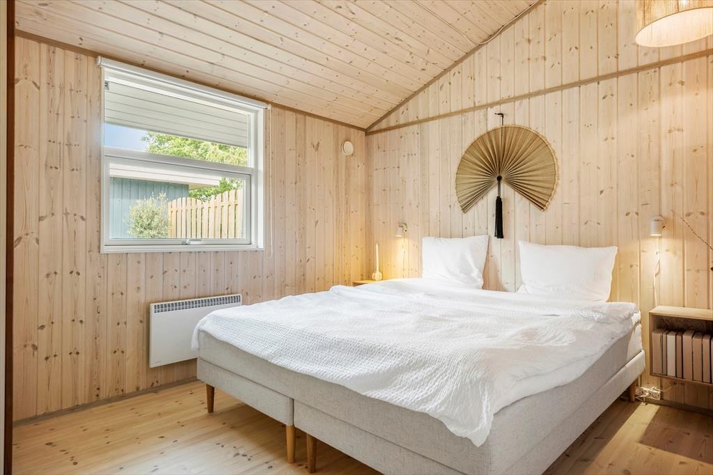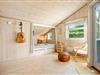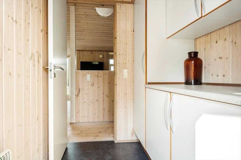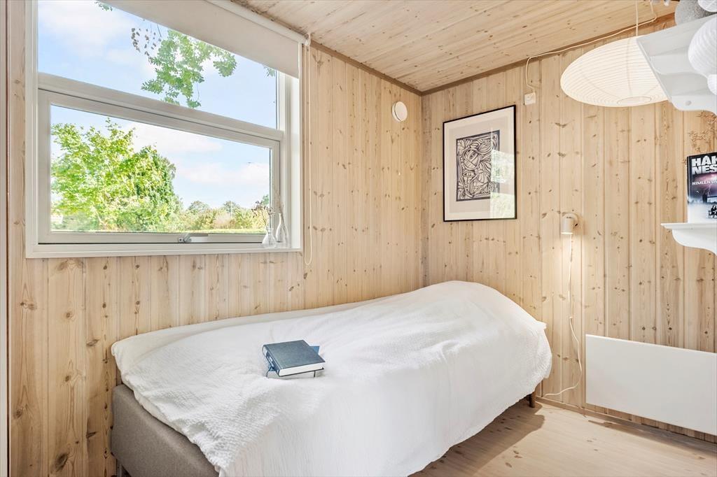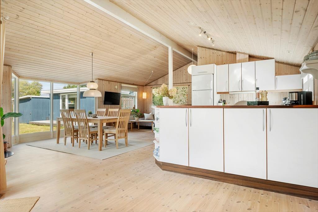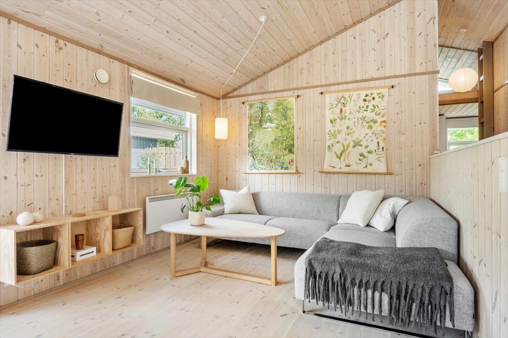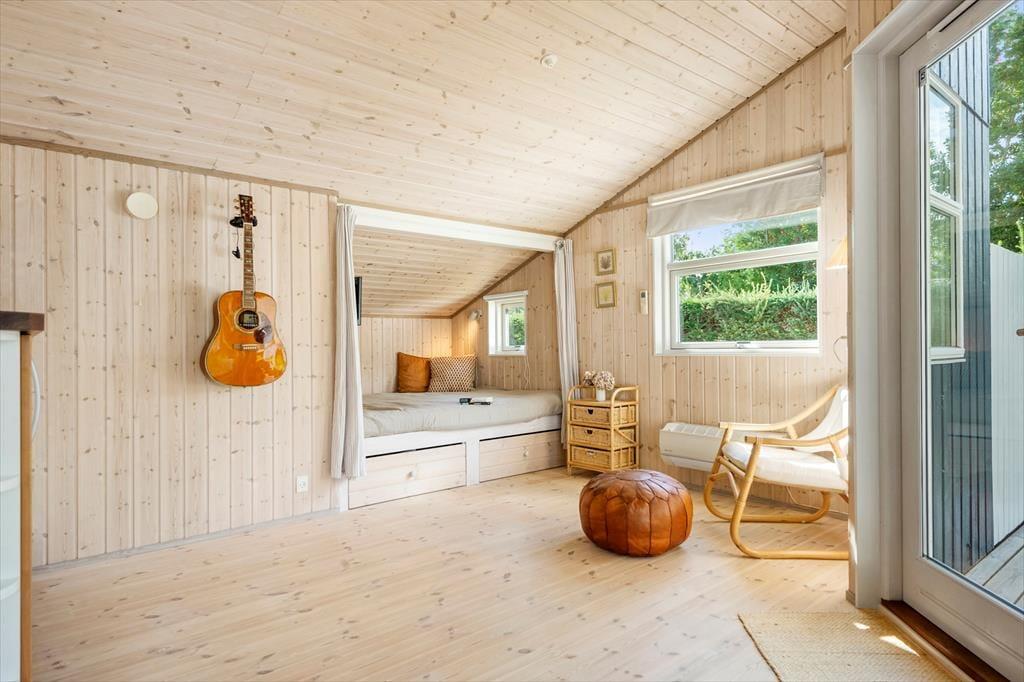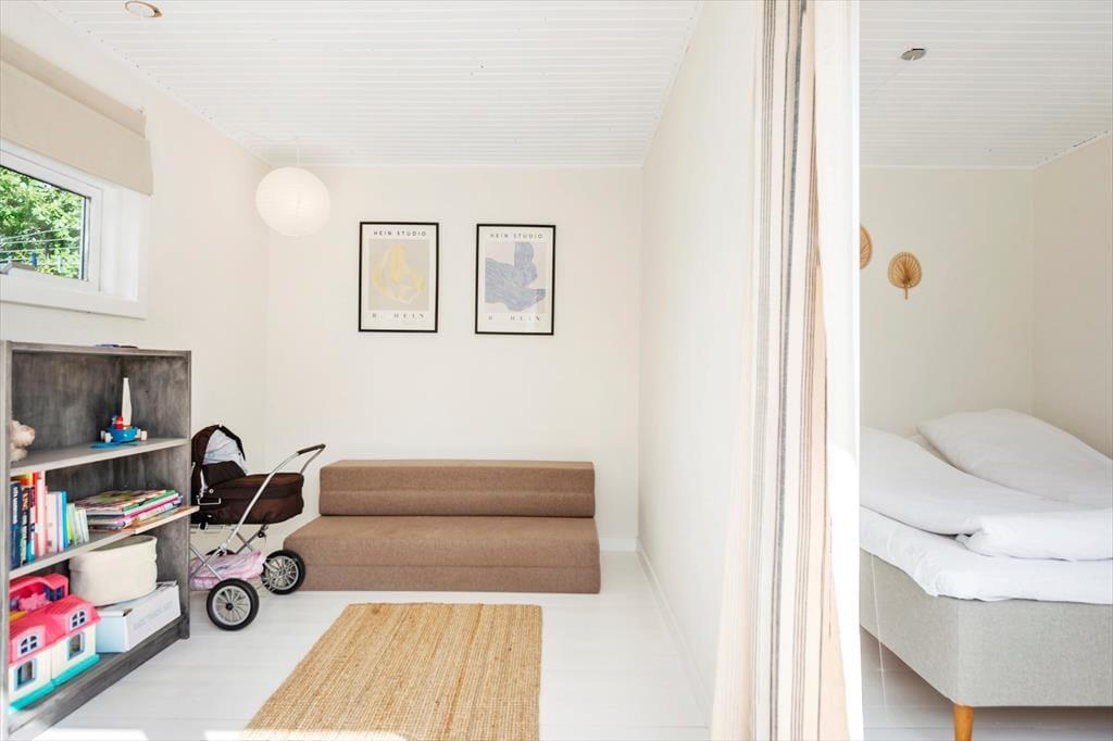 Indenfor åbner sommerhuset sig som et lyst og venligt fristed, hvor du hurtigt føler dig hjemme. Stuen indbyder til samvær, uanset om det er en rolig eftermiddag med en bog, hyggelige samtaler, eller en filmaften med snacks og tæpper. Alkoven i stuen skaber et ekstra lille hjørne af hygge – perfekt til børn, der gerne vil have deres egen krog, eller voksne, som søger et roligt sted til en serie eller lidt læsning.