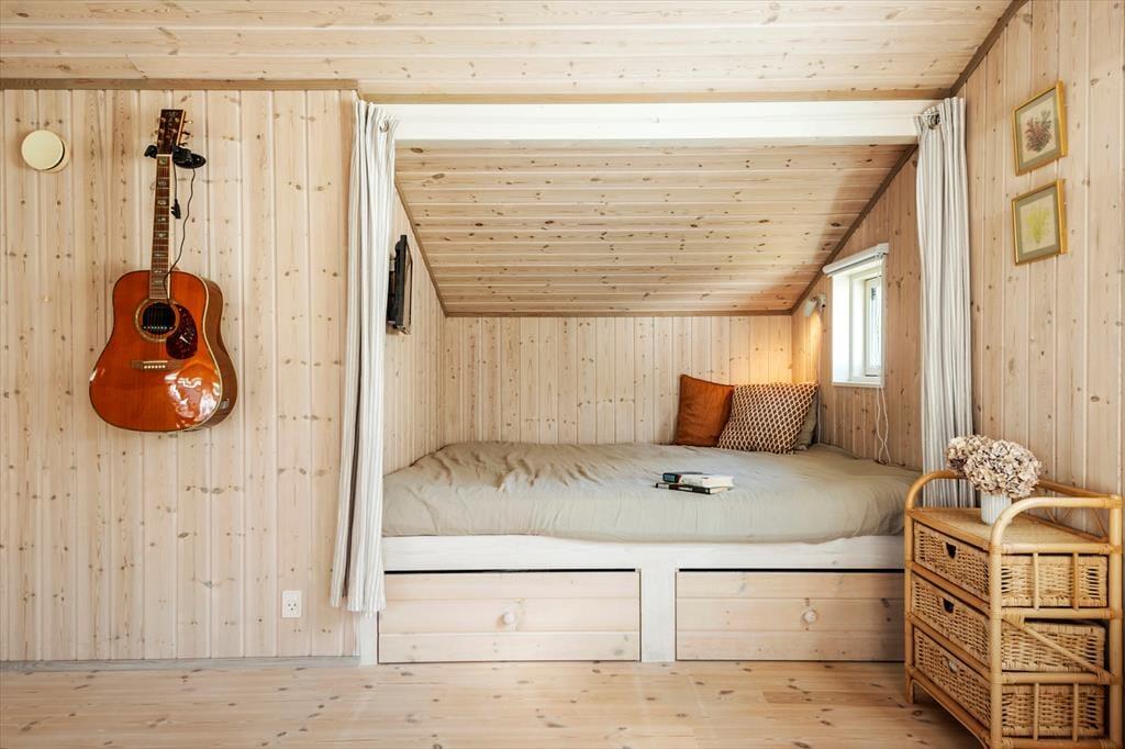 Når du trænger til at trække dig tilbage, finder du ro i det hyggelige soveværelse. Og i sommermånederne venter annekset som et ekstra legehus, hvor børnene kan finde på nye lege, bygge huler eller sidde i fred og tegne – et sted, hvor feriens små eventyr får lov at udfolde sig. Efter en dag fyldt med sol og oplevelser kan du give dig selv en pause og mærke varmen brede sig i kroppen, mens du nyder følelsen af velvære, før du falder til ro. Køkkenet binder det hele sammen og indbyder til, at I kan tilberede sommerlige måltider sammen, dække op og dele de bedste øjeblikke omkring bordet.