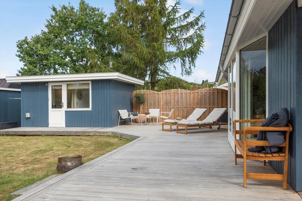 Når døren åbnes til terrassen, begynder sommerlivet for alvor. Du kan sætte dig til rette i en liggestol og lade solen varme skuldrene, mens du nyder udsigten til haven, hvor børnene leger frit. Haven er skabt til at samle familien – om det er med et spil, en picnic eller bare stille afslapning under åben himmel. Når aftenen nærmer sig, er det oplagt at tænde bålet, høre flammerne knitre og mærke, hvordan roen sænker sig, mens dagens sidste lys farver himlen i smukke nuancer.