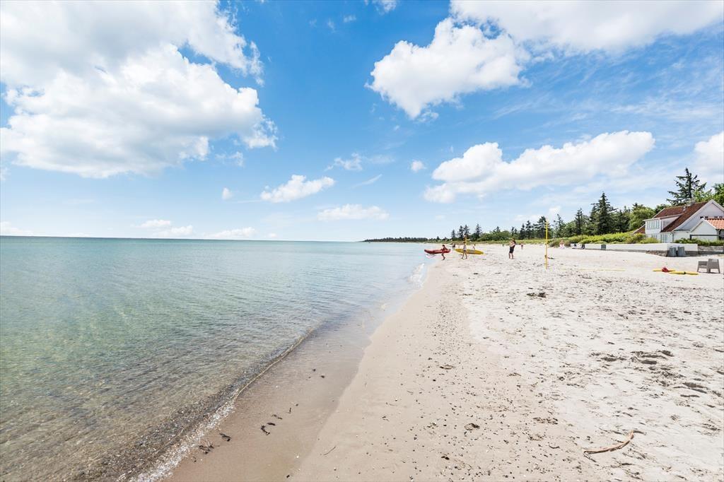 Sommerhuset ligger ved en af Østjyllands allerbedste badestrande. Sandstranden er meget børnevenlig og har ”Blåt flag”.