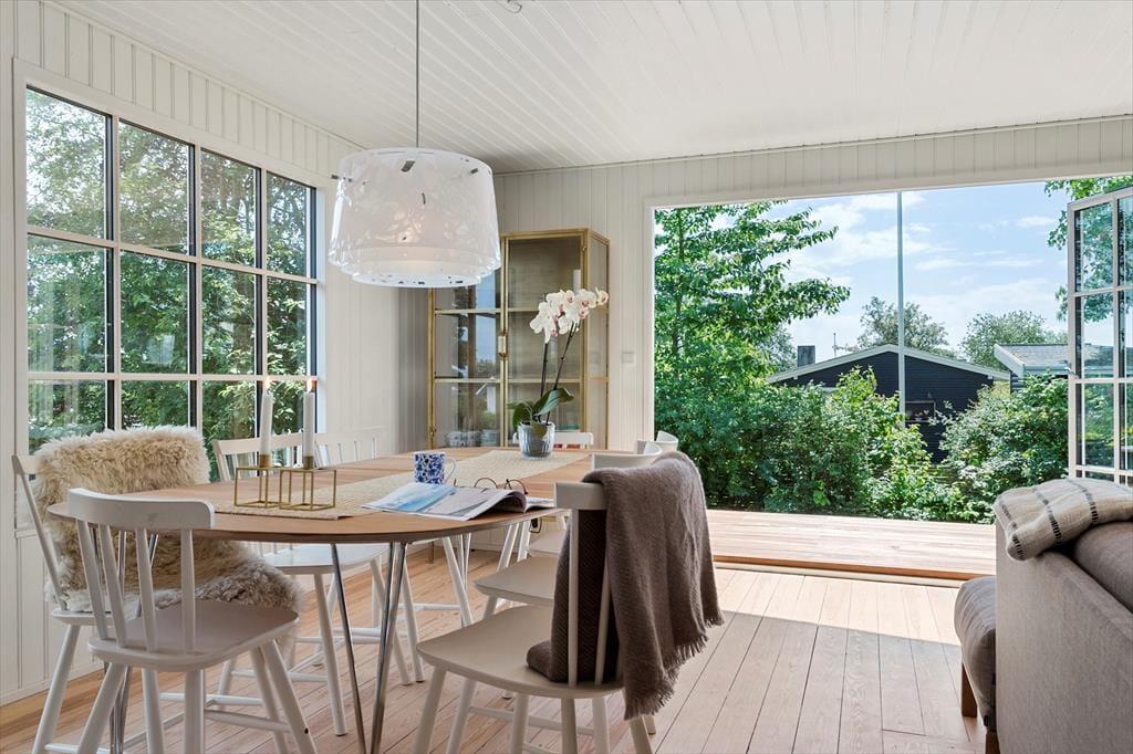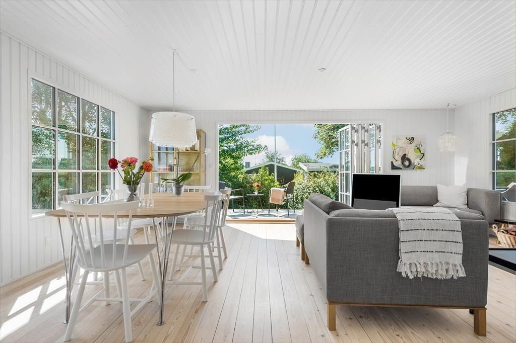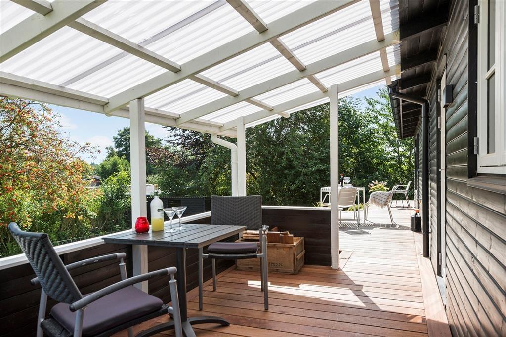 Fra stuen og spiseområdet går du direkte ud på en dejlig træterrasse der går hele vejen rundt om huset, og her kan du nyde de lange sommeraftener i alle dens faser. Huset har et stort, dejligt alrum, hvor hele familien kan samles, og gode værelser, hvor du kan trække dig tilbage og nyde freden.