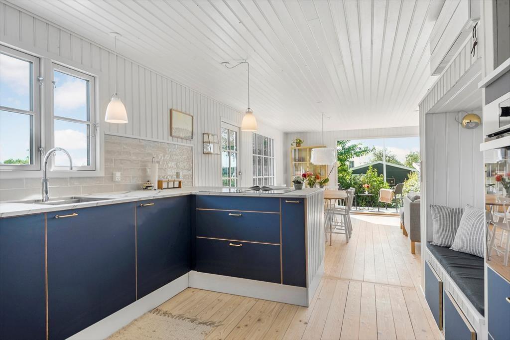 Når du træder ind i det lyse og lækre sommerhus, vil du straks mærke roen og hyggen brede sig. Stuen har en helt ny og lækker brændeovn, som indbyder til hyggelige aftener, og indretningen er gennemført med god sans for detaljen i en ny nordisk sommerhusstil.