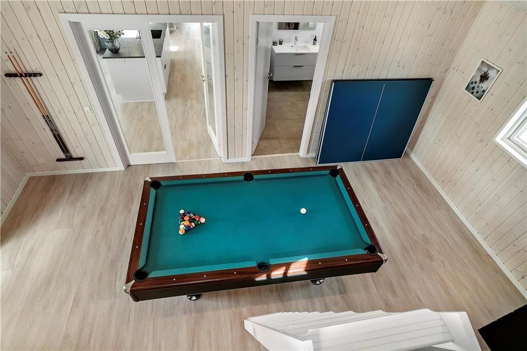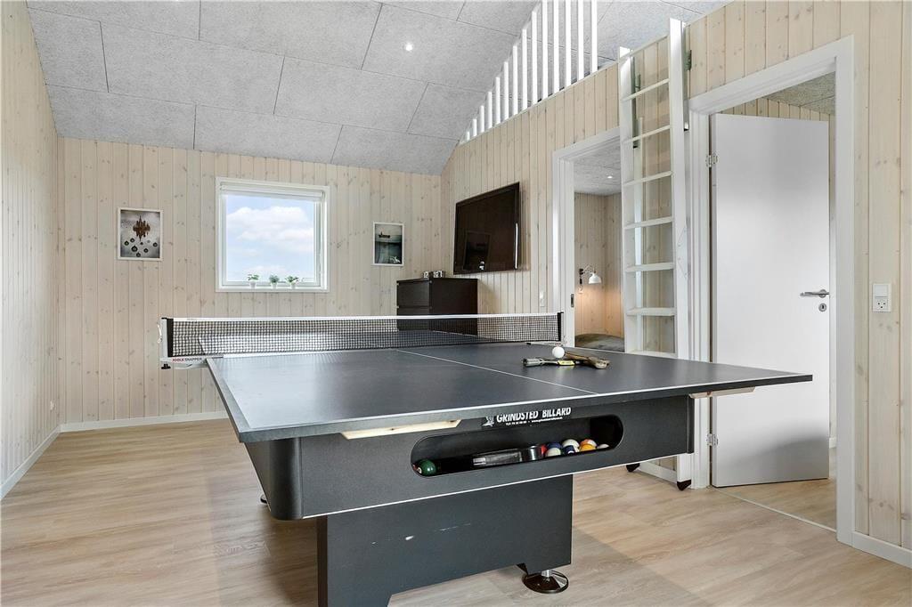 Stort aktivitetsrum med pool bord og bordtennisbord. Her er også en masse spil, et tv og en PlayStation 4 Pro med spil. Her er der lagt op til mange timers sjov med familien. I skuret er der også dart.
