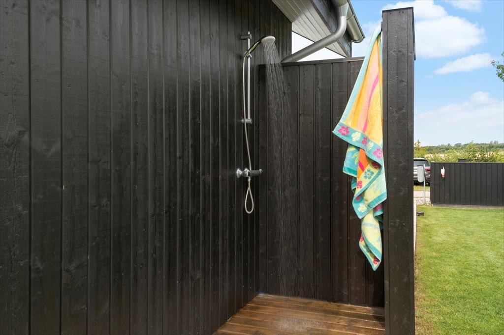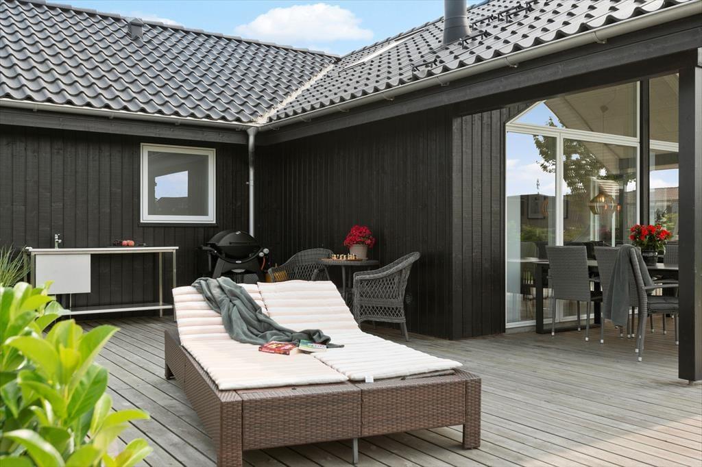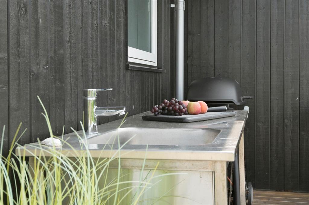 Hele 160 kvadratmeter terrasse omkranser sommerhuset. Udendørs finder I også et vildmarksbad, som kan bruges hele året rundt. Her er plads til 6 personer.
