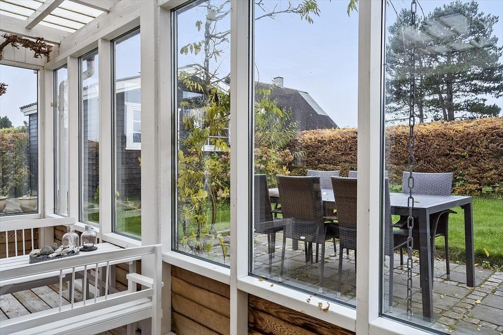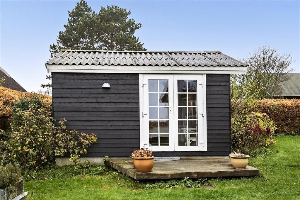 Udelivet kan nydes i fulde drag i de skønne omgivelser omkring sommerhuset. Fra terrassen ved annekset kan du lade blikket glide ud over havet, mens du nyder stilheden og den friske havluft. Haven byder på små hyggelige kroge, hvor du kan finde både sol og skygge. Den overdækkede terrasse med vinplanter skaber den perfekte ramme for lange sommeraftener med gode måltider og afslappet stemning. Og når solen står højt på himlen, er stranden kun en kort gåtur væk, hvor du kan tage en forfriskende dukkert eller blot lade bølgerne skylle ind over fødderne.