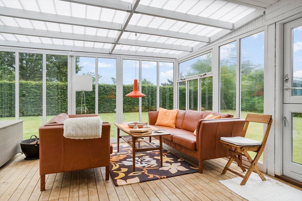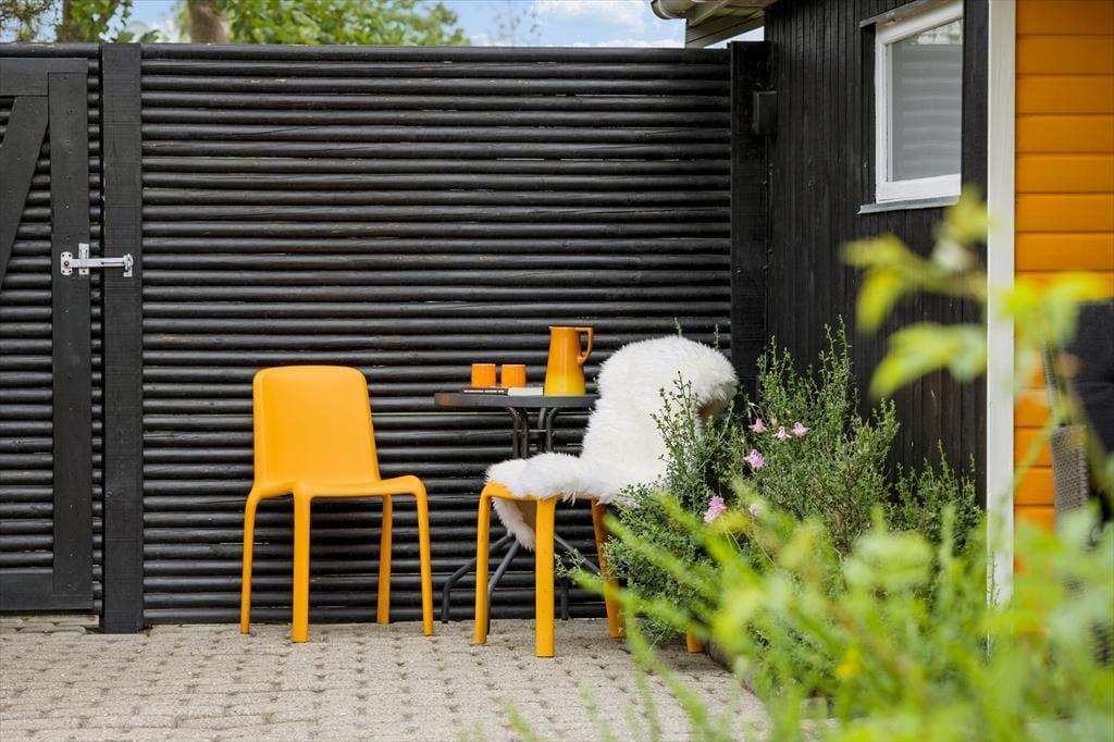 Udenfor venter både en dejlig overdækket terrasse – selvfølgelig med orange detaljer – og en skøn solterrasse, hvor solen kan nydes i fulde drag. Her forsvinder hverdagen hurtigt, og feriestemningen får lov til at folde sig ud.