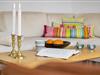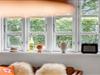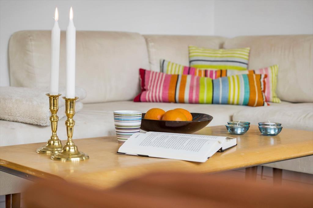 Indendørs mødes du af en varm og indbydende atmosfære, hvor farven orange sætter tonen – et gennemgående element, der understreger husets glade og solrige udtryk. Det lyse interiør forener moderne design med et finurligt retro-twist og skaber en helt særlig charme. Her er der plads til både ro og nærvær – hvad end du vil fordybe dig i en god bog eller nyde samtaler i godt selskab.