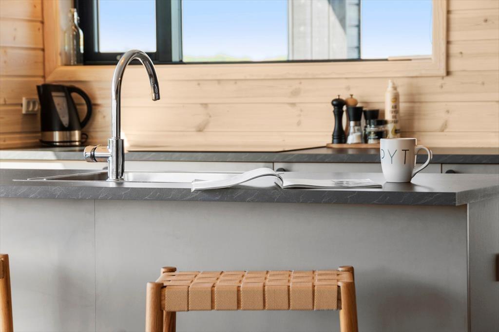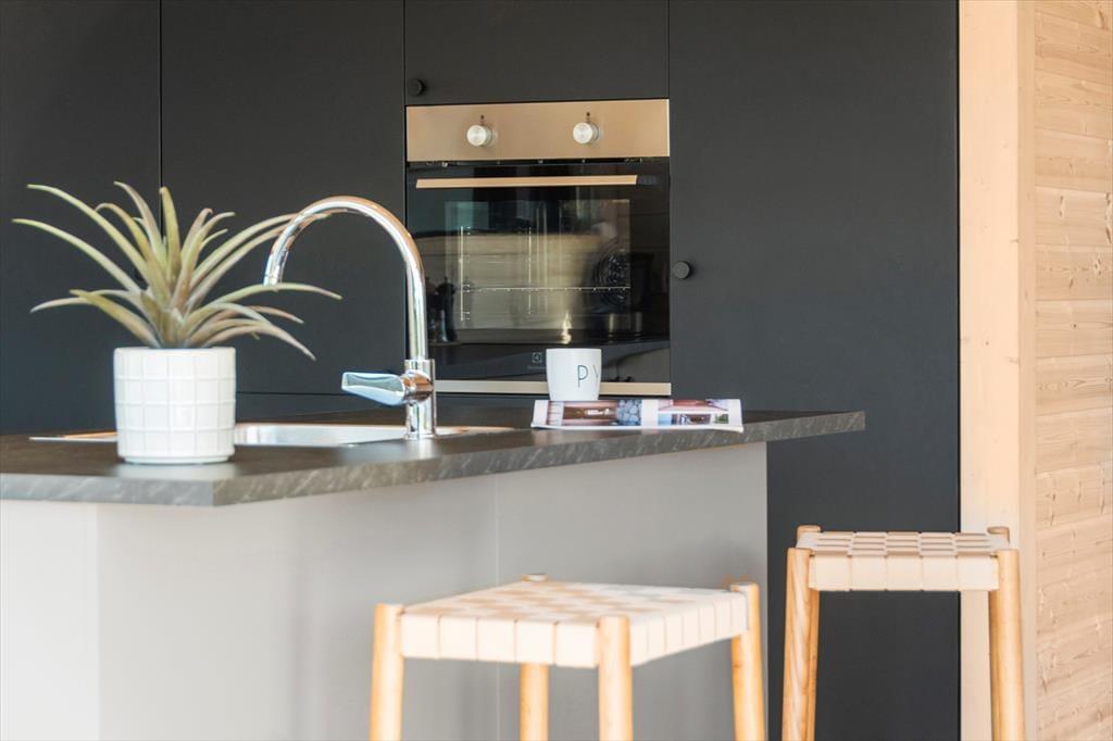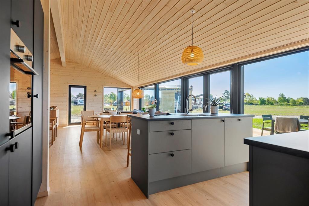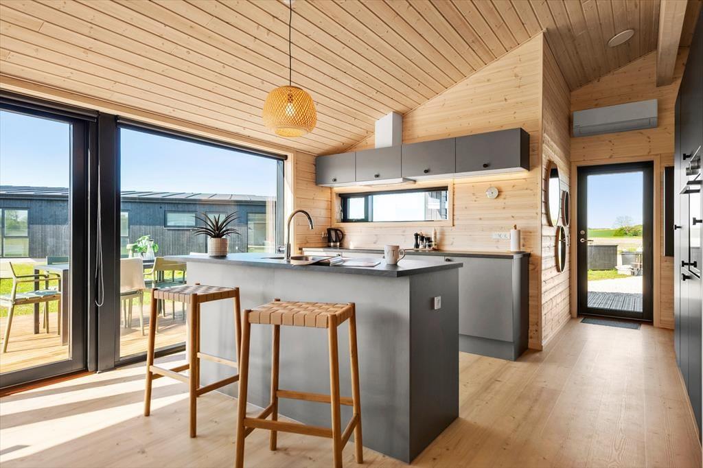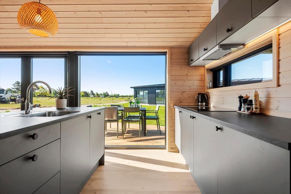 Køkkenet er moderne og veludstyret, og her er det en fornøjelse at lave mad – ikke mindst fordi du samtidig kan være en del af feriestemningen i stuen. Tag plads ved spisebordet med udsigt til haven, eller slå dig ned i sofaen med en god bog, mens solen danser på gulvet.