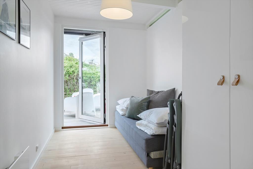 To gode soverum – 1 soverum med dobbeltseng og et soverum med 2 enkelte senge med ekstra udtræksseng. Herudover 2 sovepladser i stue. Der er desuden indrettet et dejligt badeværelse, og skal tøjet vaskes, er der naturligvis også mulighed for det – samt tørretumbler til håndklæderne.
