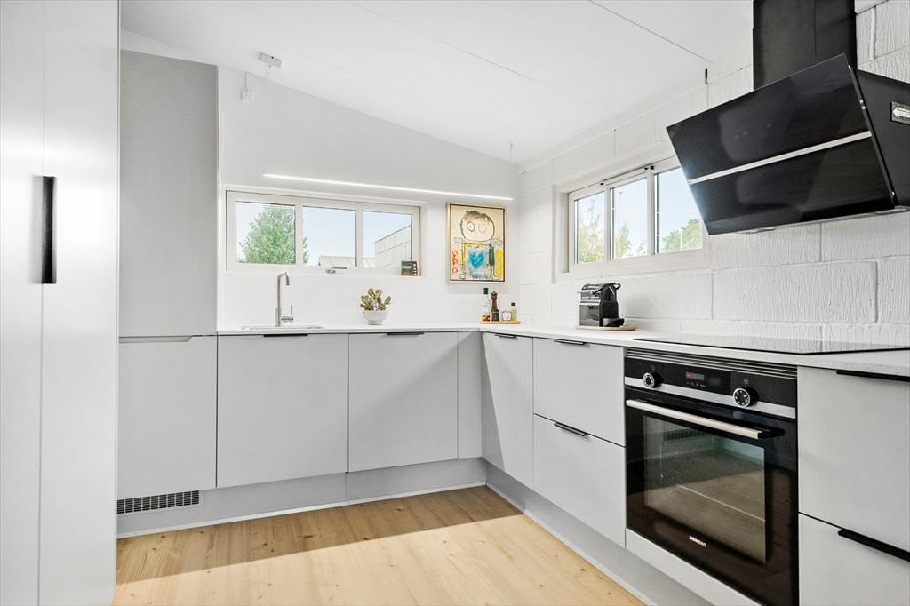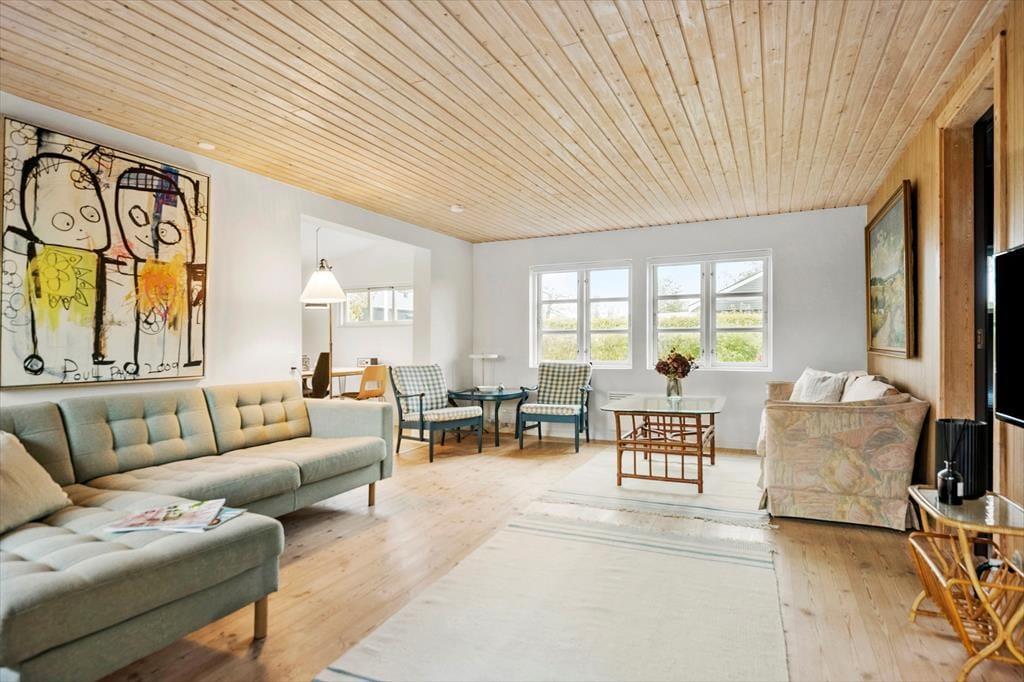 Når du træder ind i huset, bliver du mødt af en afslappet atmosfære, der indbyder til at sænke skuldrene og trække vejret dybt. Lyset fra de store vinduer fylder rummene, og den lyse indretning skaber en rolig og behagelig stemning. Her er alt, hvad du behøver for at føle dig hjemme – et åbent opholdsrum, hvor stue og køkken smelter sammen, og hvor du nemt kan være sammen med familie og venner, mens der bliver lavet mad eller snakket om dagens oplevelser. Det er et hjem, hvor du mærker, at ferien begynder, så snart du træder indenfor. Sæt dig godt til rette med en bog, find et spil frem eller nyd bare stilheden og den lette summen af sommer udenfor.