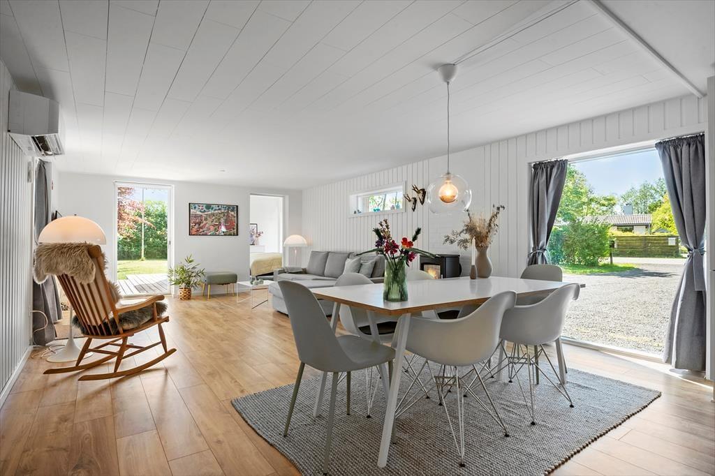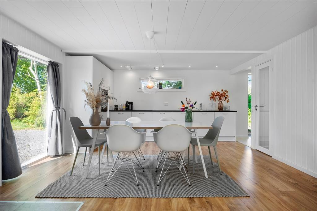 Træd ind i en indretning, som emmer af god, dansk sommerhusstemning – enkel, hyggelig og fuld af varme. Her finder du plads til både ro og samvær med familien, mens de lyse rum inviterer til afslapning og hyggelige stunder sammen. Tre gode værelser sørger for, at både børn og voksne har deres egne oaser til fred og søvn, og det veludstyrede køkken er klar til at skabe madglæde – måske med hjælp fra børnene. Det er her, dagens planlægning sker over en kop kaffe, eller hvor de gode historier samles i de bløde sofaer. Og når aftenens ro falder på, kan du nemt koble af med en film eller et godt spil via husets underholdningstilbud. Din firbenede ven er også mere end velkommen – her er plads til både leg og afslapning for hele familien.