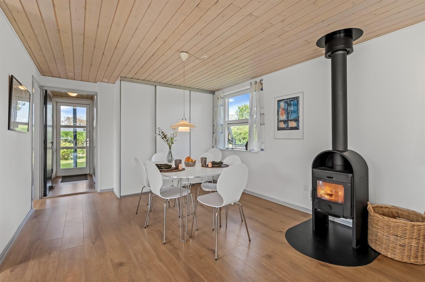 Sommerhuset egner sig til 6 personer samt 1 barn op til 3 år. Ferieboligen er på 82 m² og er bygget i 1968. I 2004 gennemgik ferieboligen en delvis renovering. Det er ikke tilladt at medbringe husdyr. Ferieboligen er udstyret med energibesparende varmepumpe. Der er gulvvarme i alle klinkegulve. Ferieboligen har vaskemaskine. Frysekapacitet på 50 liter. Der er desuden brændeovn. Til de små er der 1 stk. barnestol.