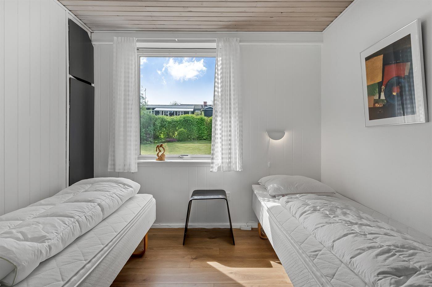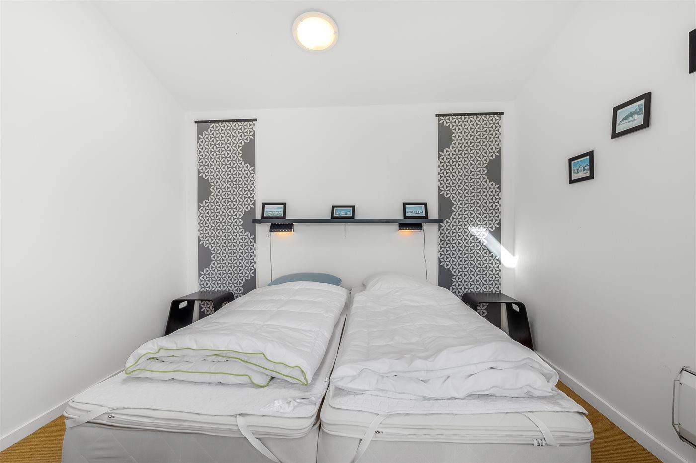 Der er i alt 3 soveværelser. Sovepladserne fordeler sig på: 4 sovepladser i dobbeltsenge. 2 sovepladser i enkeltsenge. 2 af disse sovepladser befinder sig i et anneks. Derudover er der 1 stk. barneseng.