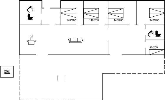 Sommerhuset egner sig til 12 personer. Ferieboligen er på 138 m² og er bygget i 2022. Det er ikke tilladt at medbringe husdyr. Ferieboligen er udstyret med 1 energivenlig luft til vand varmepumpe. Hele ferieboligen har gulvvarme. Ferieboligen har vaskemaskine. Frysekapacitet på 70 liter.