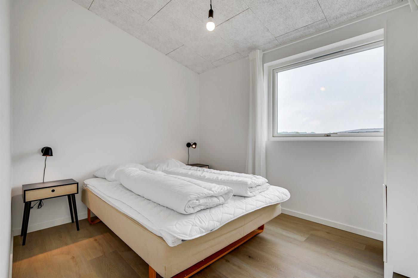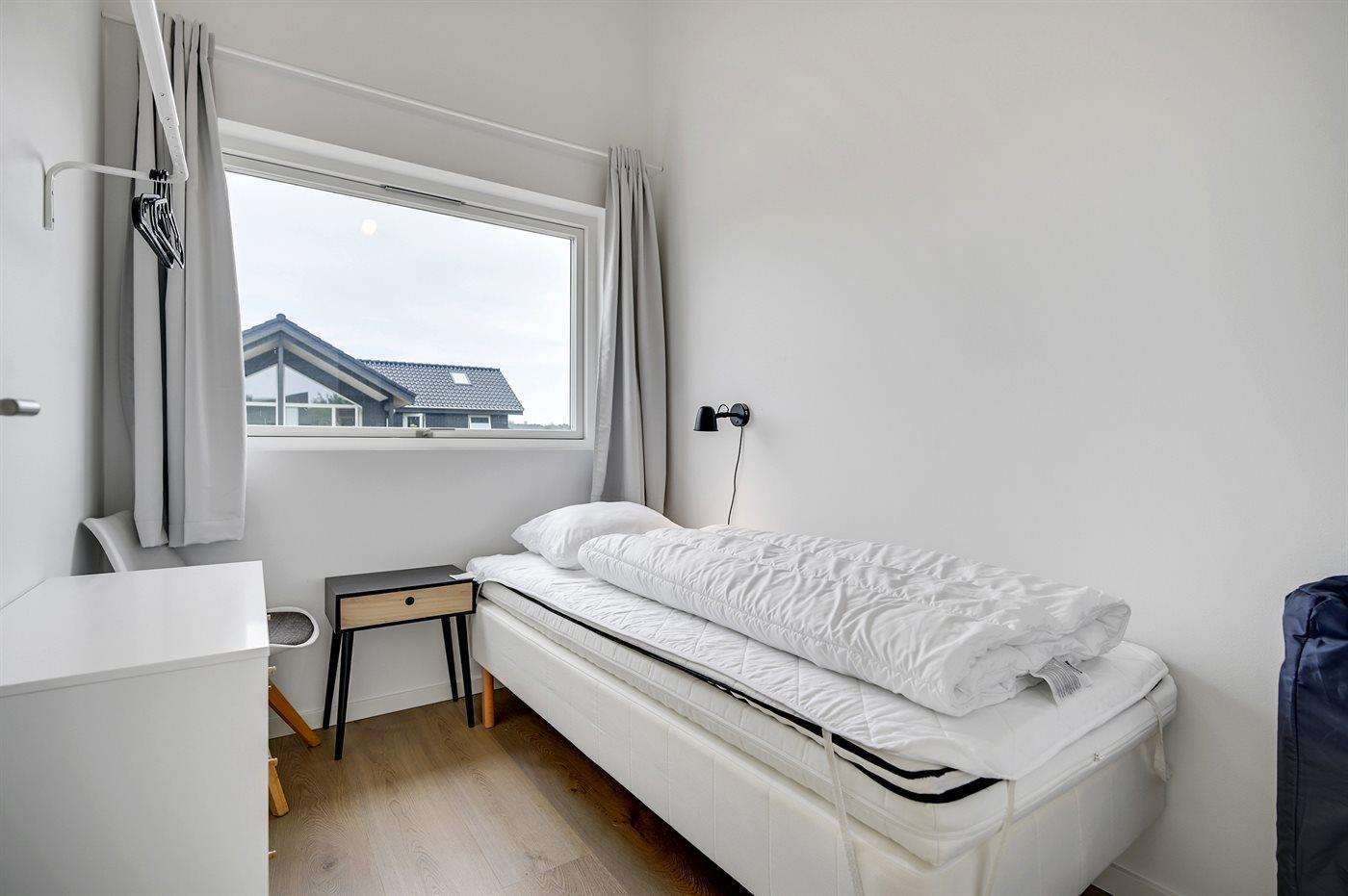 Der er i alt 5 soveværelser. Sovepladserne fordeler sig på: 8 sovepladser i dobbeltsenge. 1 soveplads i enkeltseng. 3 sovepladser på madrasser. 3 af disse sovepladser befinder sig på husets hems.
