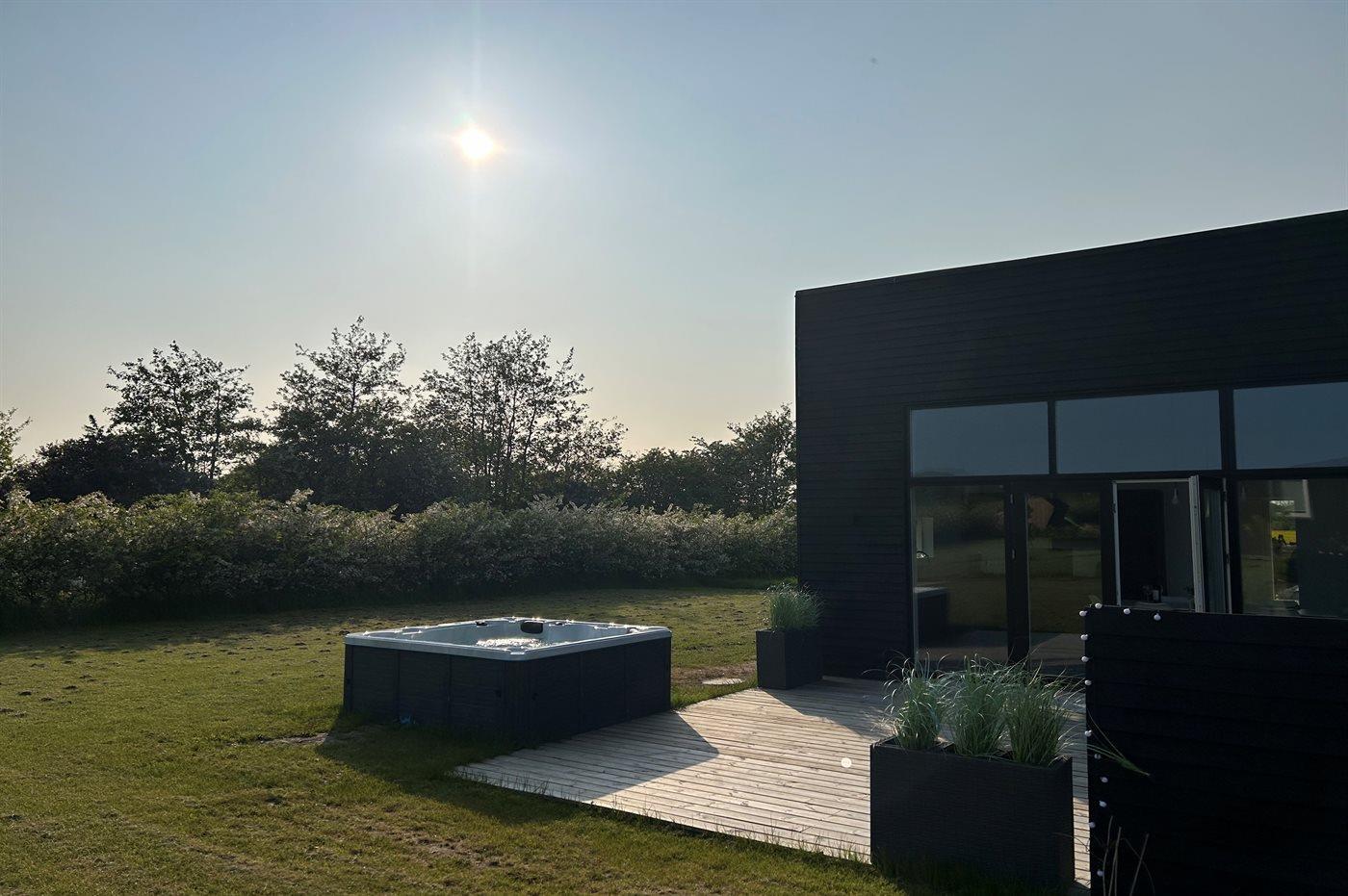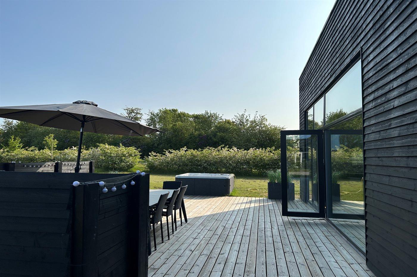 Moderne aktivitetshus fra 2022 nær børnevenlig strand i Saksild med spa og stor terrasse.