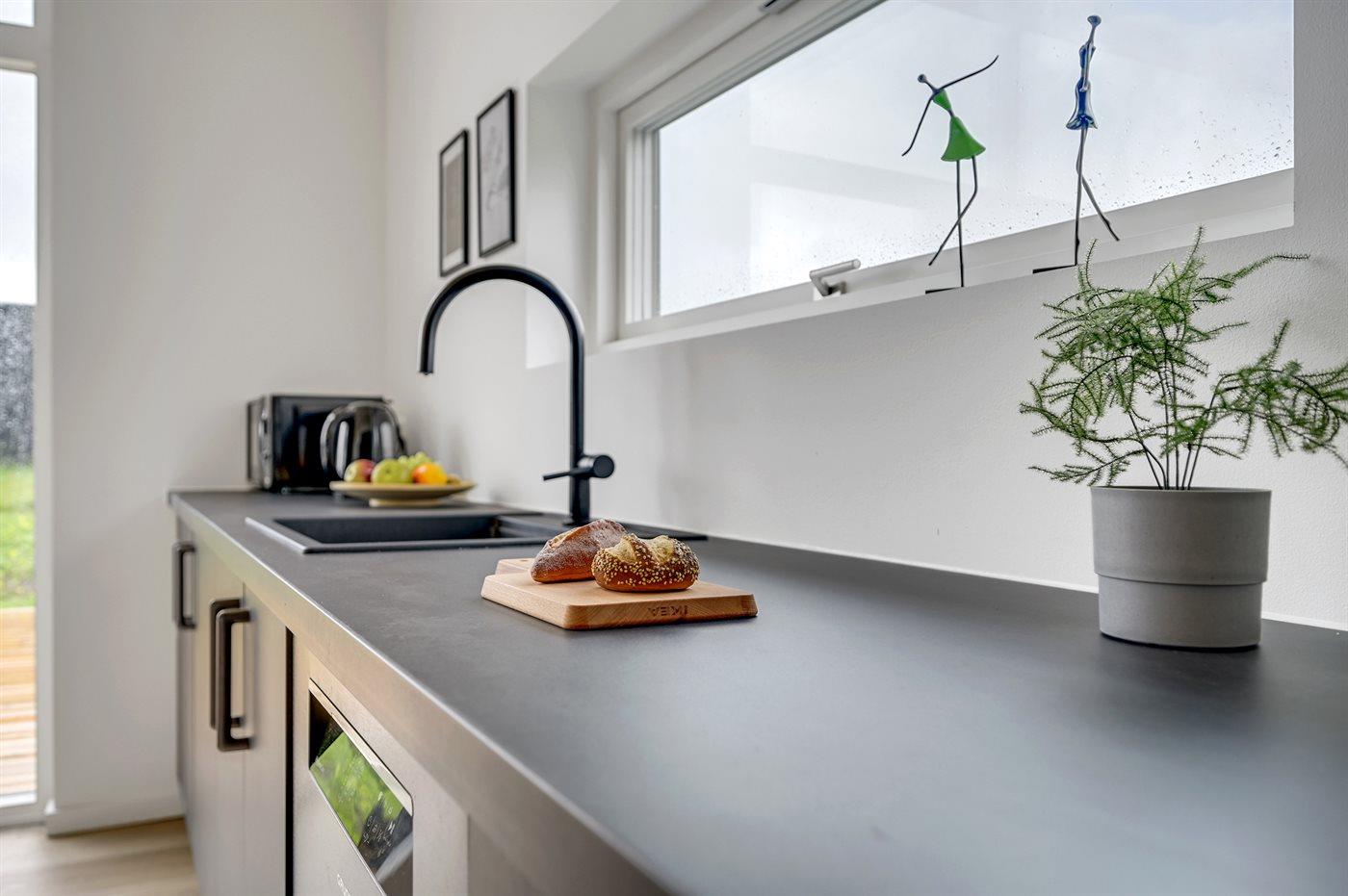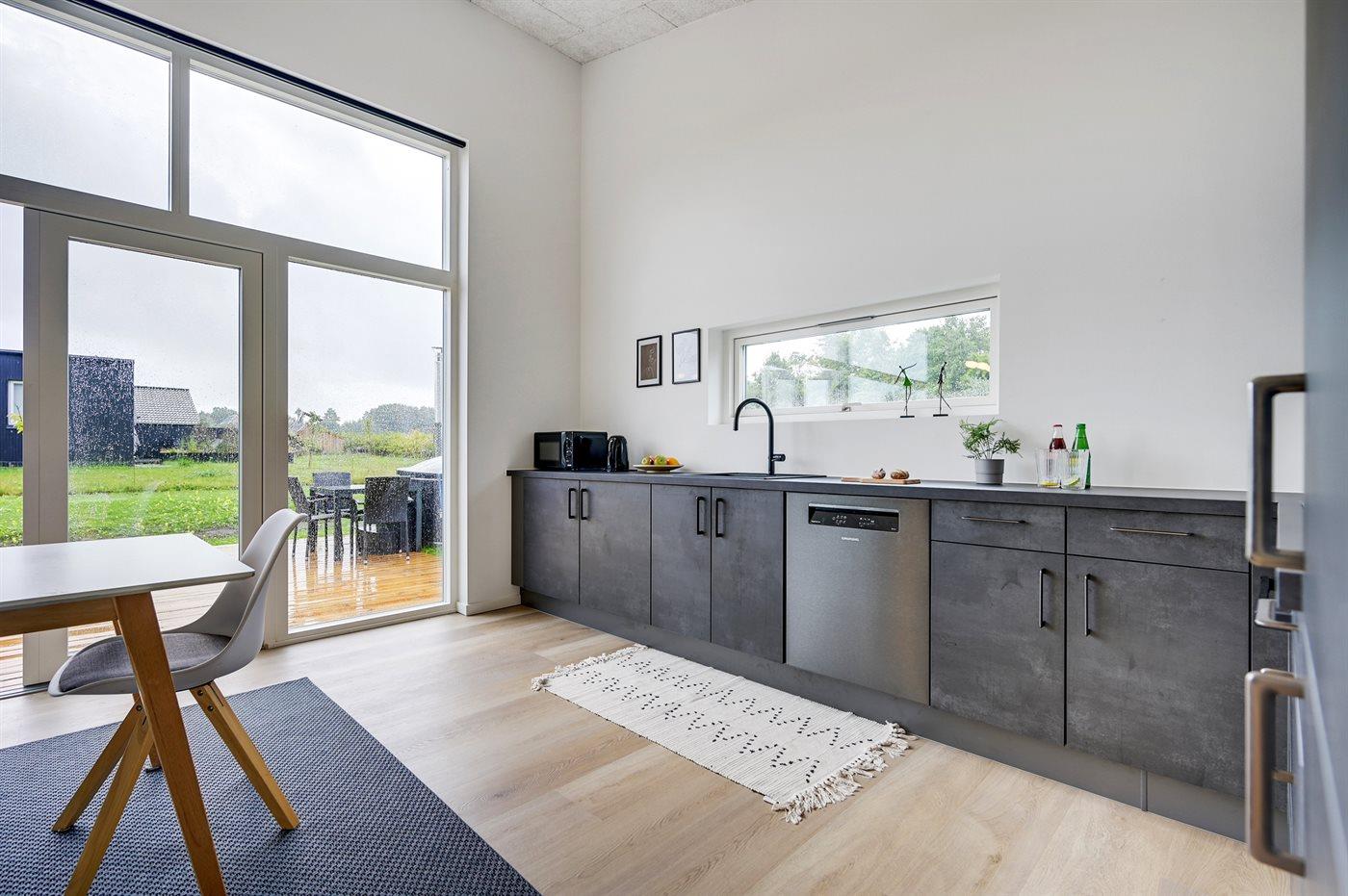 Køkkenet er udstyret med 1 køleskab. Der er 4 induktionskogeplader, varmluftovn, mikrobølgeovn samt opvaskemaskine.
