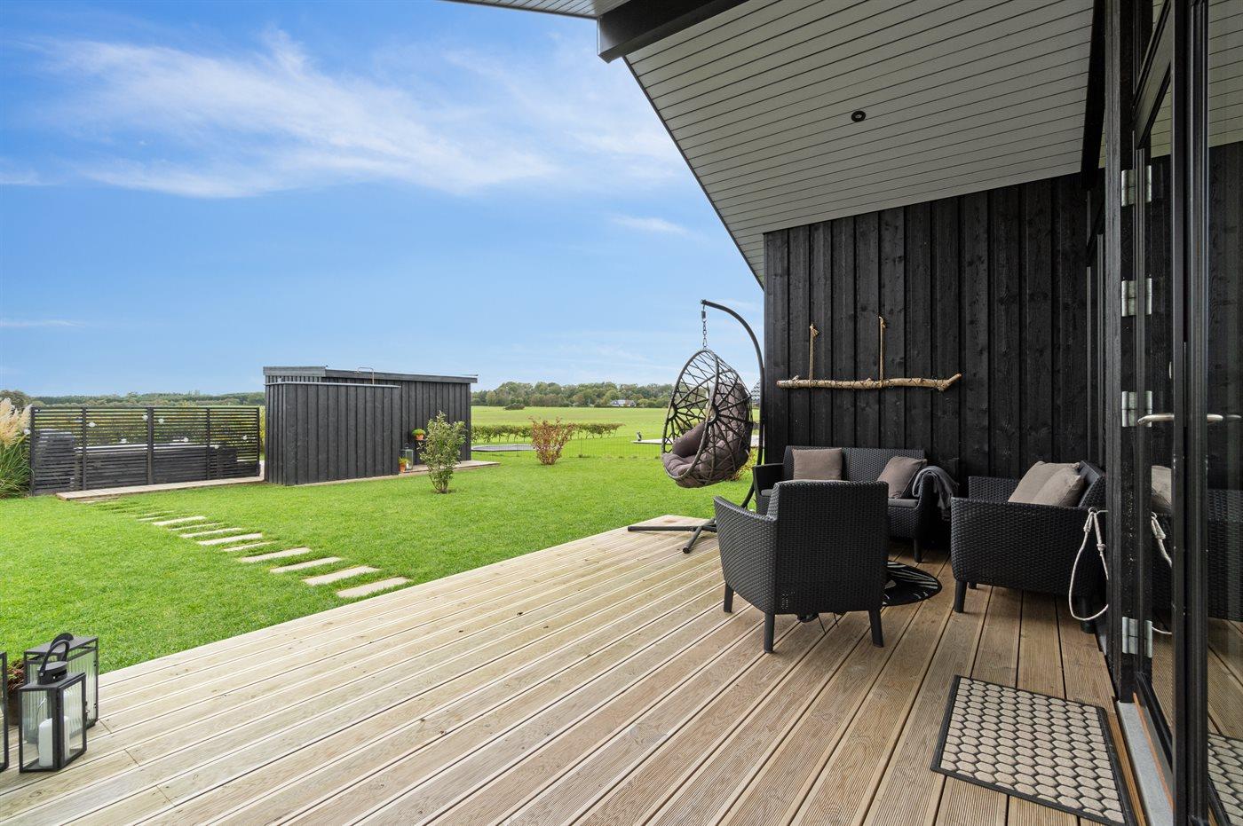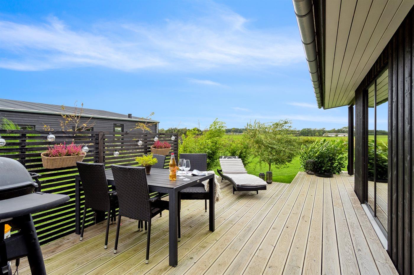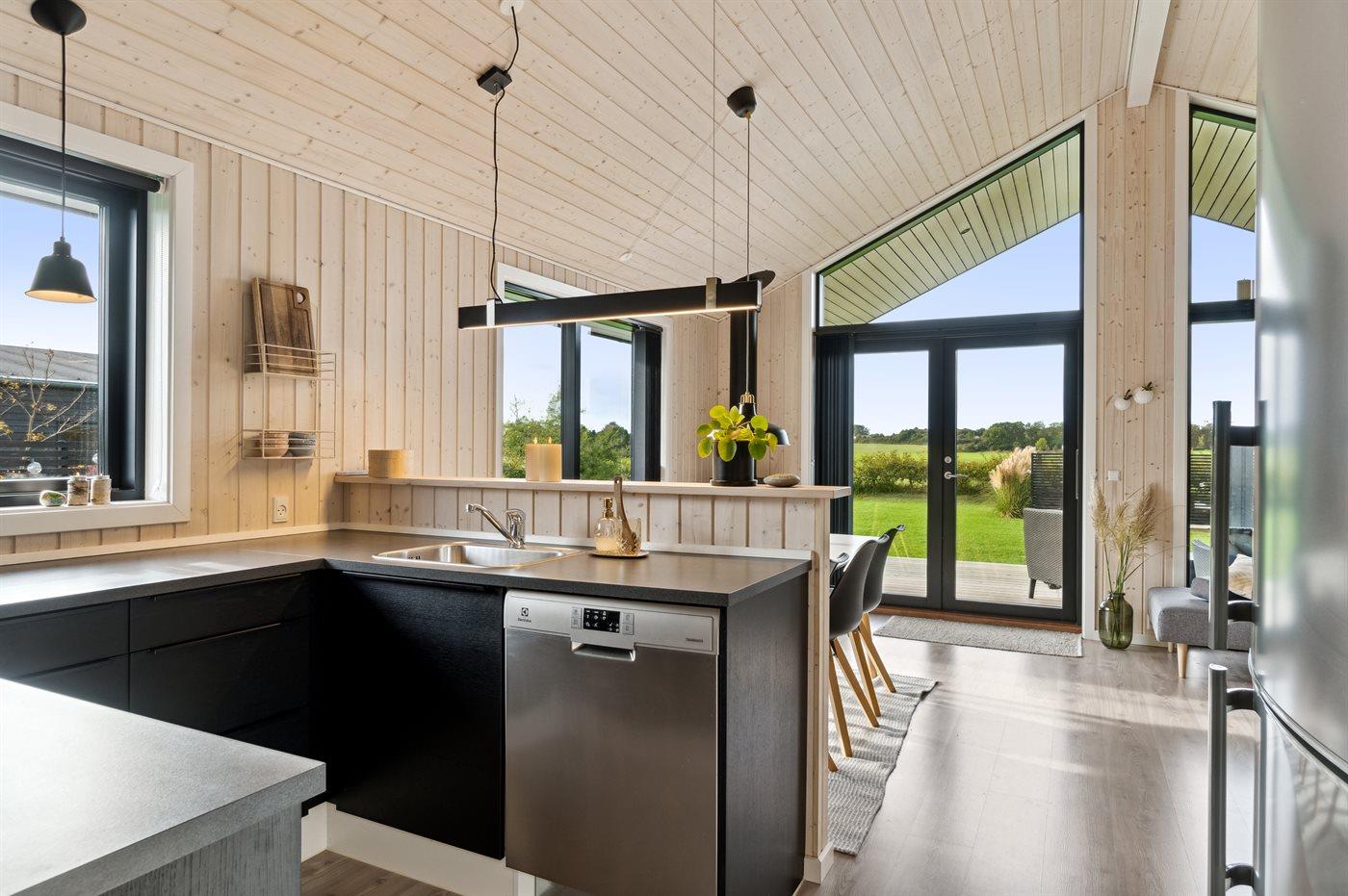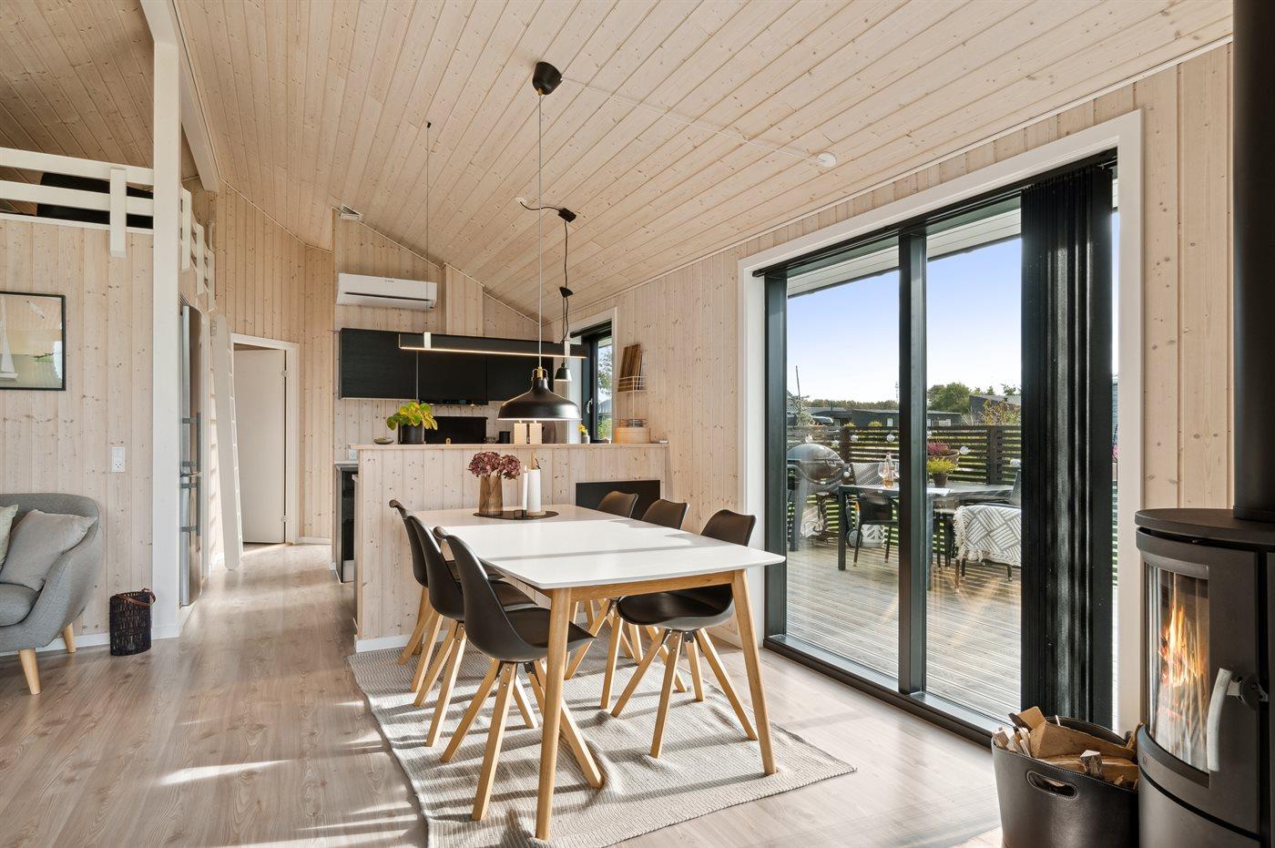Sommerhusets gode indretning passer rigtig fint til f.eks. en familie med 2-3 børn, der ønsker at holde ferie i disse fantastiske omgivelser. Sommerhuset er beliggende med en særdeles skøn udsigt udover marker og den dejlige natur. Udsigten kan nydes fra det dejlige køkken/alrum og stue, men i høj grad også fra den dejlige og delvist overdækkede terrasse. På den store terrasse, hvor der altid er mulighed for at finde en lækrog, kan man nyde ferien i ro og mag med en god kop kaffe eller et glas vin.