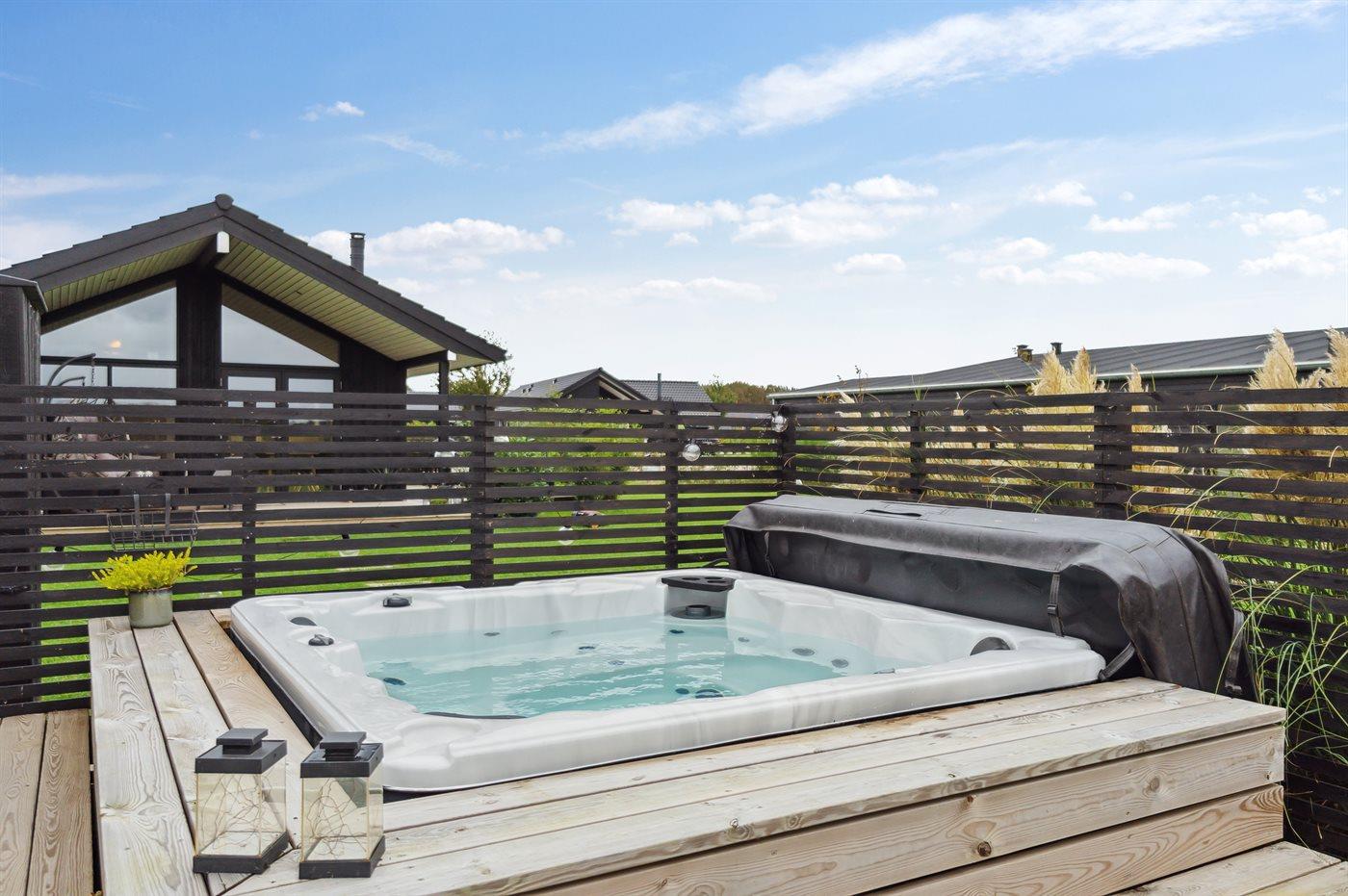 I denne skønne have findes der et fantastisk wellness-område med et 5 personers spabad, hvorfra den dejlige udsigt kan nydes samt en sauna (slow cook), som kun bliver omkring 60 grader varm og som har et stort glasparti – ligeledes med udsigt. Hele wellness-området er omkranset af en terrasse således man kan gå direkte fra spabadet og i saunaen.