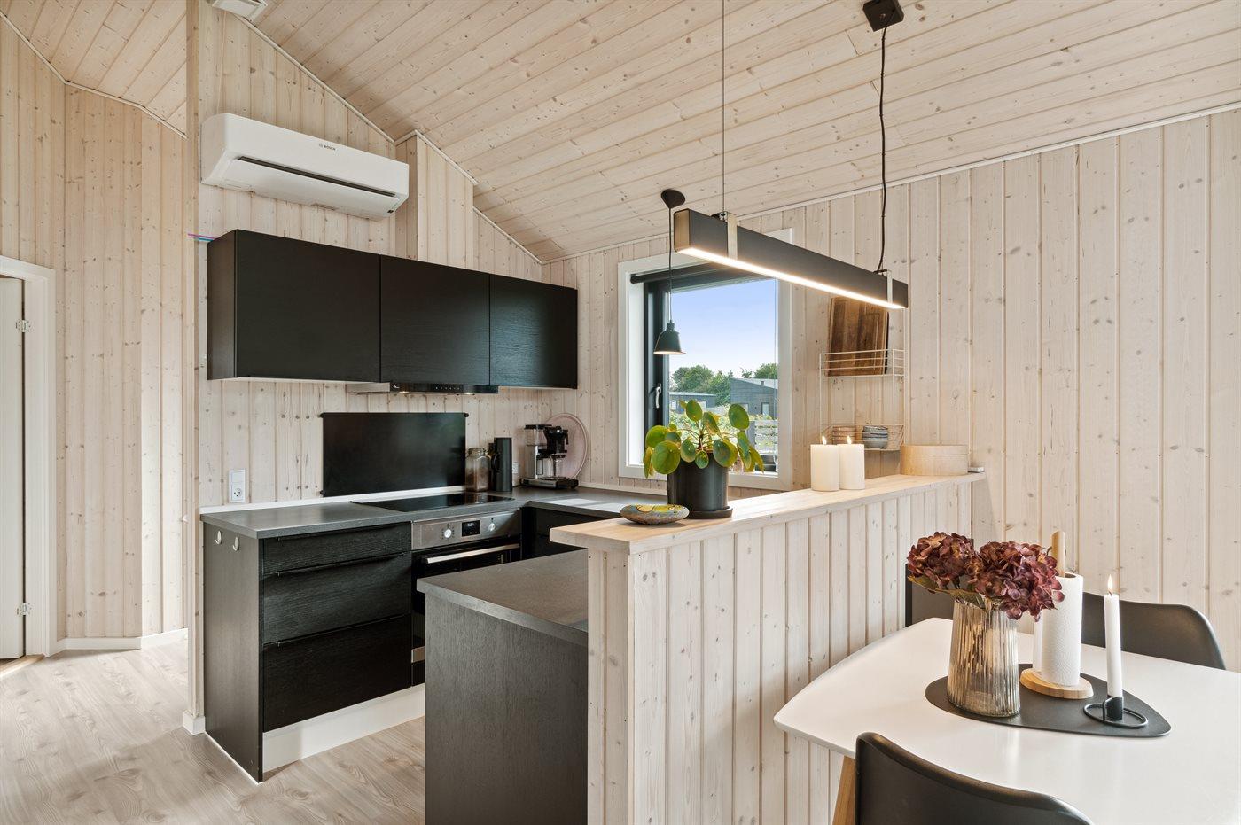 Køkkenet er udstyret med 1 køleskab. Der er 4 induktionskogeplader, varmluftovn samt opvaskemaskine.
