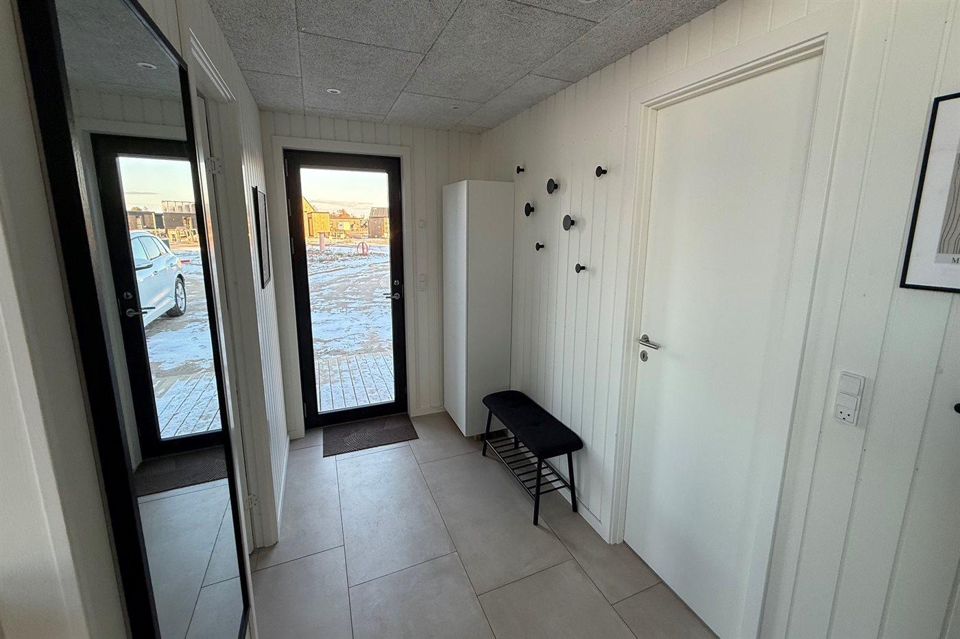 Ferieboligen er beliggende på en 1295 m² stor havegrund. Der er 500 m til havet. Nærmeste forretning er beliggende i en afstand af 500 m. Til ferieboligen hører åbent terrasseareal. Desuden er der overdækket terrasse. Udendørs bruser. Grill til rådighed. Der er installeret stik til opladning af elbil. Type 2 stik. Med 11 kW ladeeffekt. Parkering ved ferieboligen.