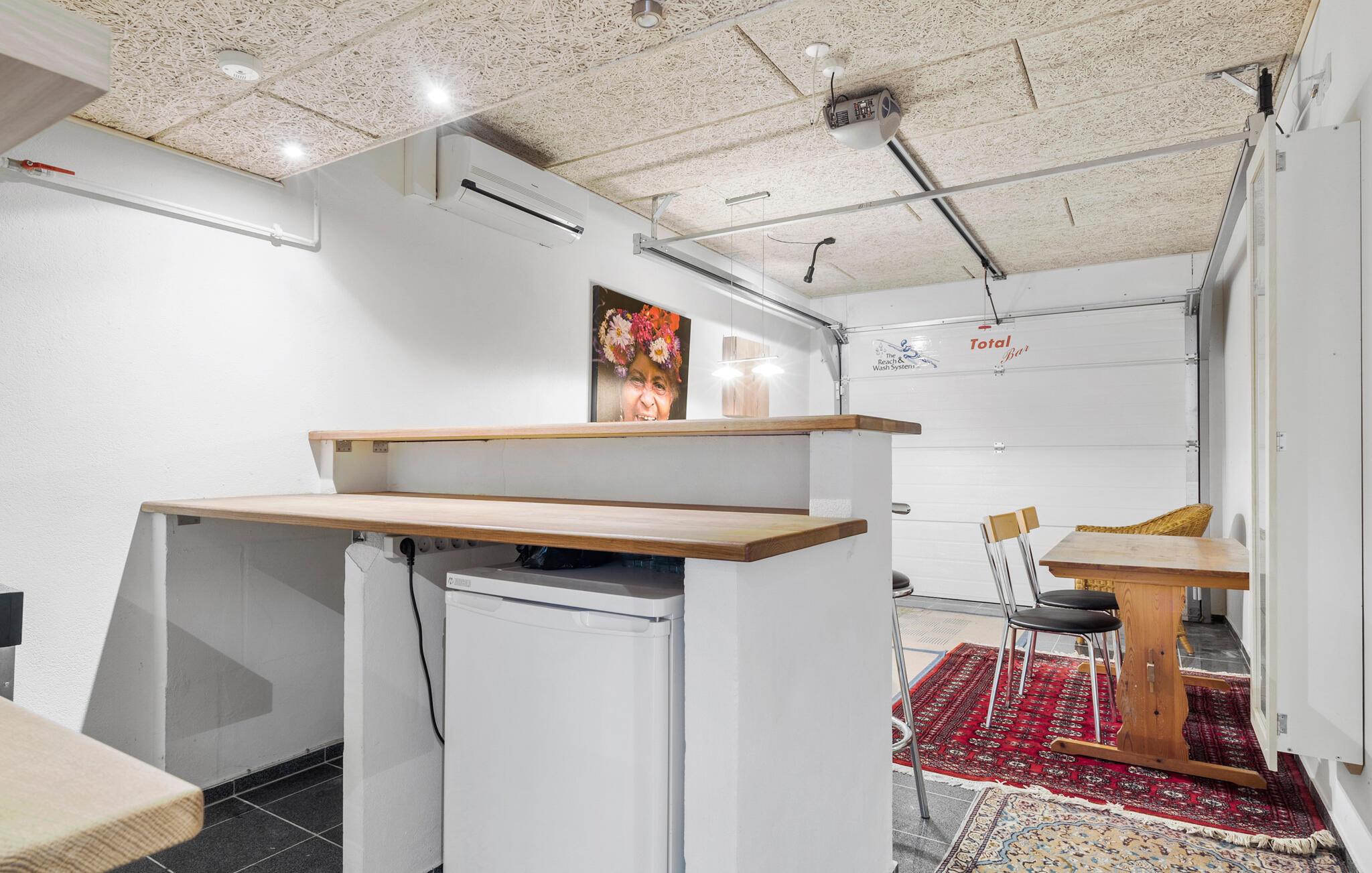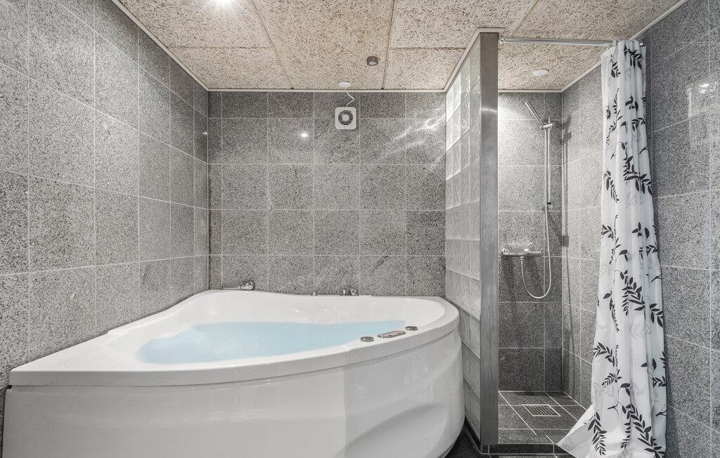 Velkommen til dette rummelige hus, der ligger i et roligt sommerhusområde og vidunderligt tæt på vandet. Indretningen fremtræder virkelig flot over flere etager med et vellykket samspil af forskellige, velholdte materialer, der sammen med de behagelige farveskalaer gør det nemt at slappe af med det samme, I ankommer. Interiøret får mange dejlige lysindfald gennem de store vinduespartier, der samtidig giver en skøn udsigt til omgivelserne. Køkkenet er veludstyret, så lad kokkene tage sig god tid til at kræse om livretterne. Efter aftensmaden kan I sætte jer godt til rette i en af de hyggelige stuer, i baren eller forkæle jer selv med lidt lækker wellness i spabadet eller saunaen og nyde, at I ikke skal tidligt op dagen efter.