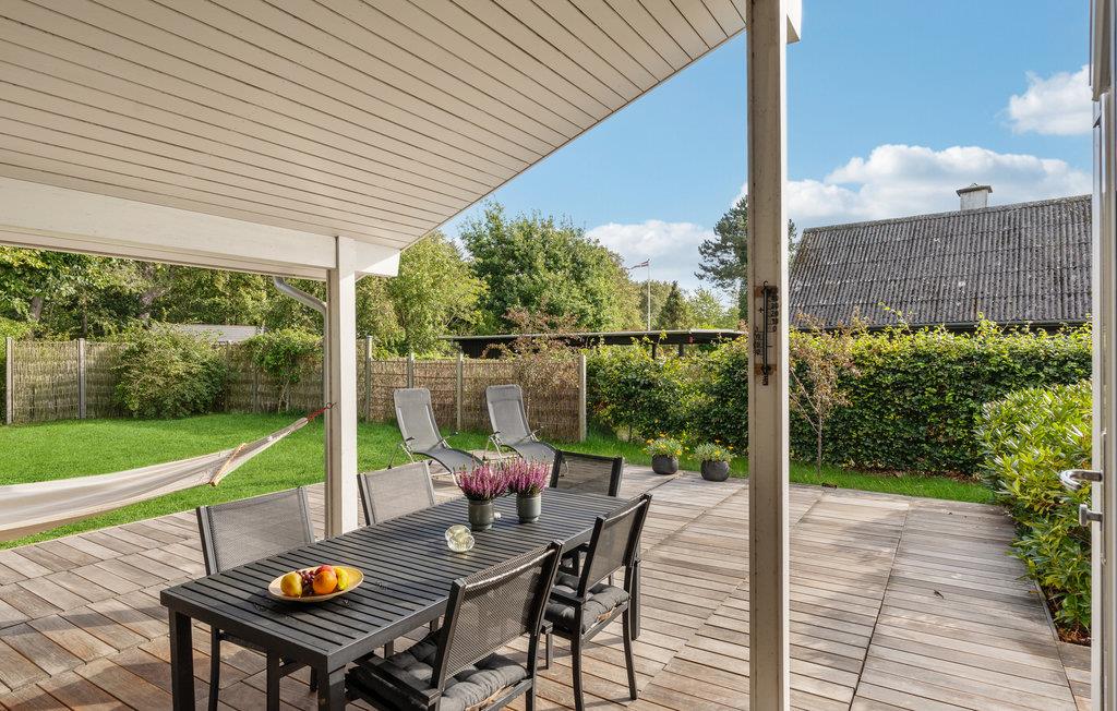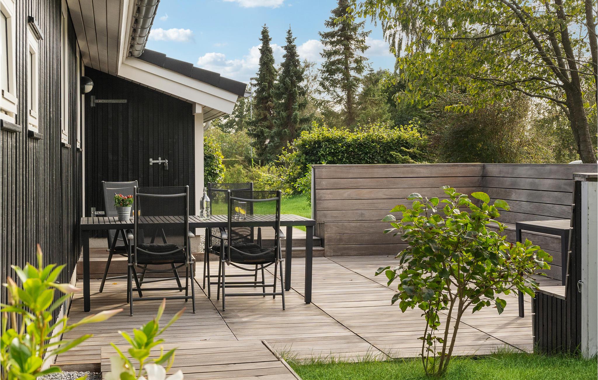 Lyst og venligt sommerhus nær Saksild Strand med stor terrasse og grøn have til rolige feriedage.