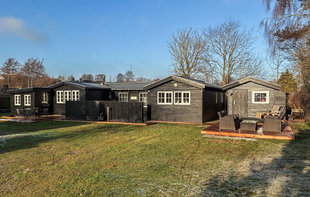 Hyggeligt feriehus nær Saksilds børnevenlige sandstrand med åben terrasse og moderne faciliteter.