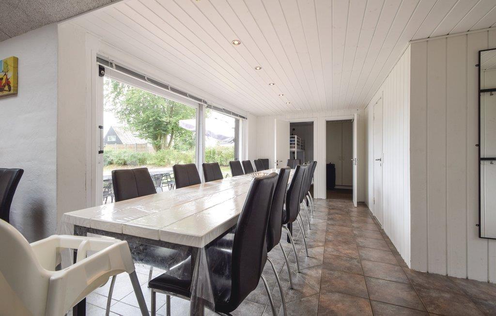 Velkommen i dette moderne og lyst indrettede feriehus. Det centrale opholdsrum kombinerer en spiseafdeling i åben forlængelse med et moderne, veludstyret køkken og en sofaafdeling med brændeovn. Her er masser af plads til at brede sig, spille brætspil, se film eller varme sig på en kold efterårsaften. Hvis vejret er lunt, er der også god plads ude på terrassen til at nyde måltiderne under åben himmel. Her kan I også slappe af eller nyde en kop kaffe, mens børnene leger og boltrer sig på plænen. Der er også en hyggelig sauna til de kolde dage og et vildmarksbad - hvilket bedre sted at afrunde en afslappet feriedag i godt selskab og en drink i hånden?