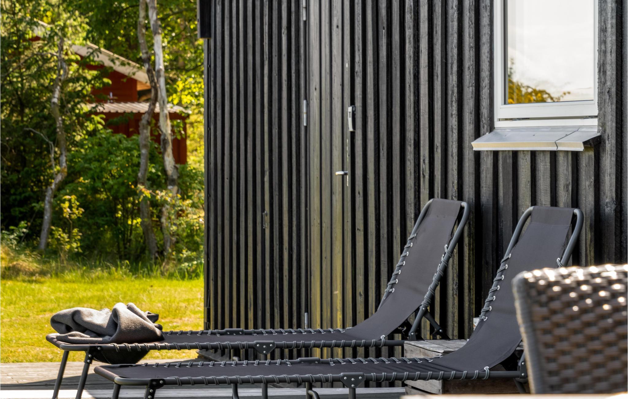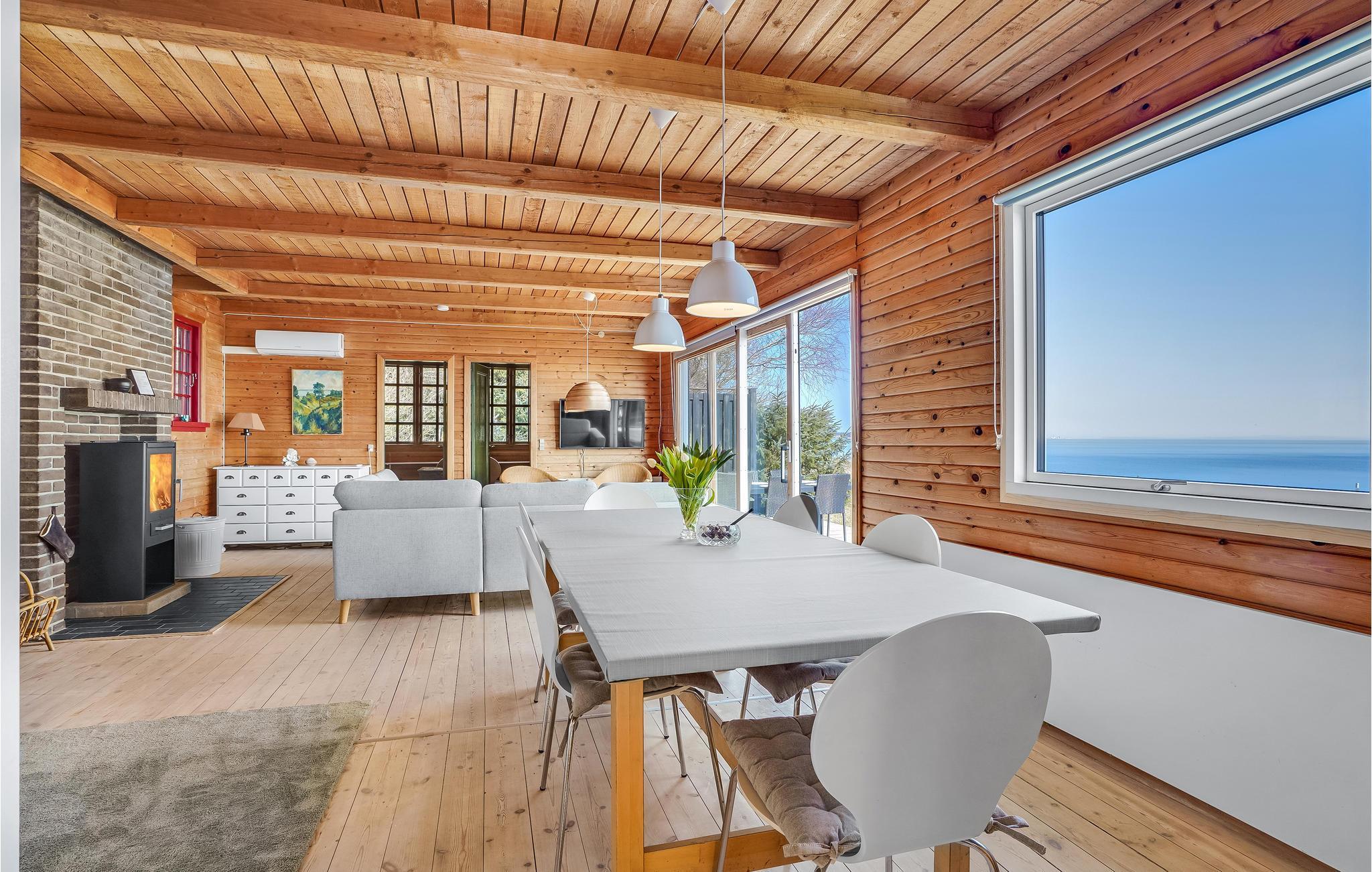 I dette ældre, charmerende feriehus kan I glæde jer til en hyggelig, næsten hytteagtig atmosfære takket være de stemningsfulde trævægge- og lofter med synlige træbjælker. Fra stuen har I en fortryllende udsigt over vandet gennem de store panoramavinduer. Her er også en brændeovn til de køligere årstider. Fra stuen er der direkte udgang til terrassen, hvor I kan sole jer, grille og tage et par skridt for at hoppe i bølgen blå.