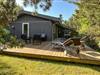 Når solen er fremme, er den åbne træterrasse et skønt sted til morgenmad med udsigt over haven. Læg jer til rette i hængekøjen, mens grillen simrer af lækre retter.